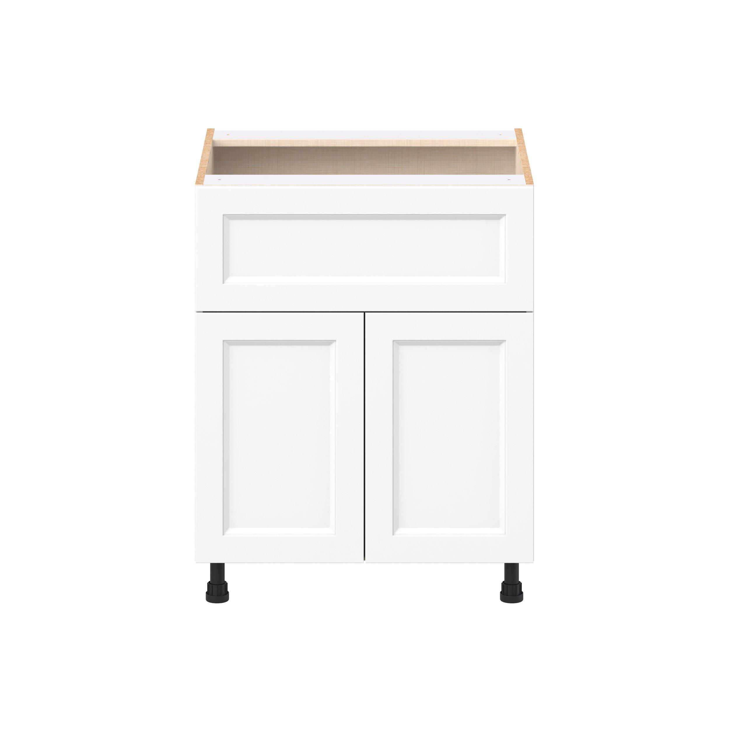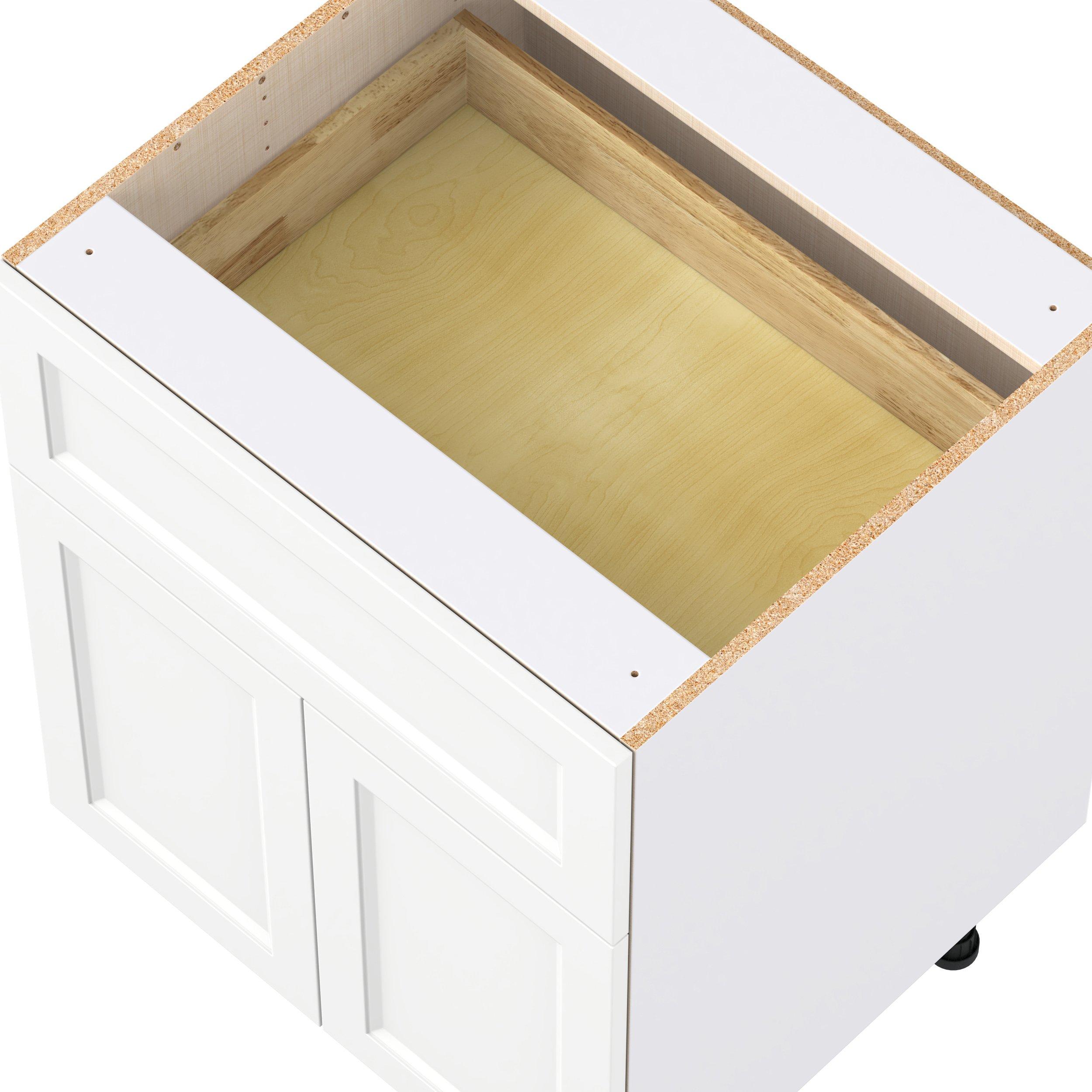 Make a statement with Peachtree premium painted shaker-inspired cabinets, offering both style and durability for years to come. Available in classic bright white and rich midnight blue, this collection is designed to fit seamlessly into both modern and transitional interiors. Crafted from one-piece MDF Studio Design Collection Peachtree 27 in. Painted Bright White Door and Drawer Base Cabinet is designed to resist hairline cracks while the easy-to-clean finish stands up to stains and moisture. Featuring 5-piece doors and dovetail drawer joints, these cabinets offer durability and elegance. This collection combines style with everyday storage solutions.