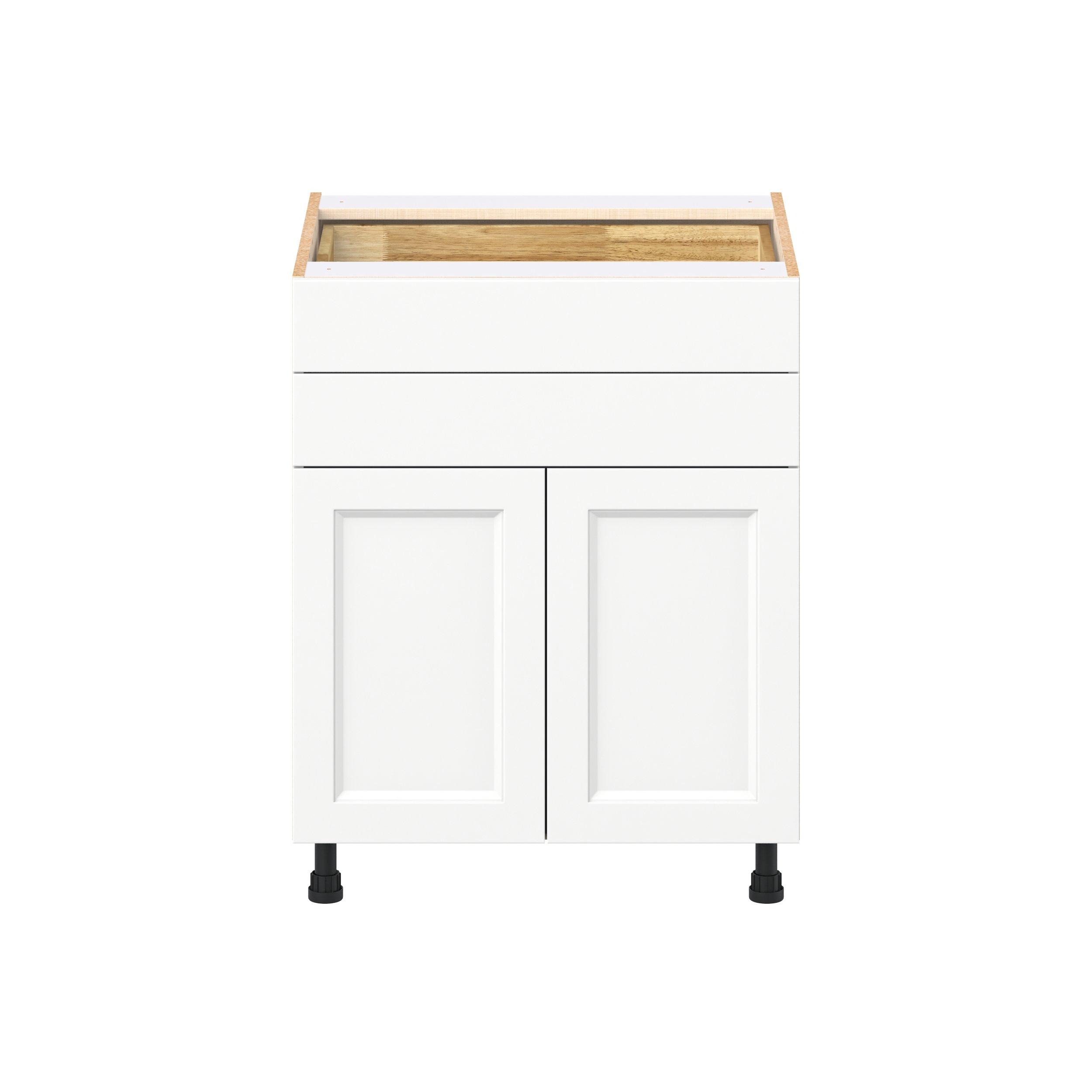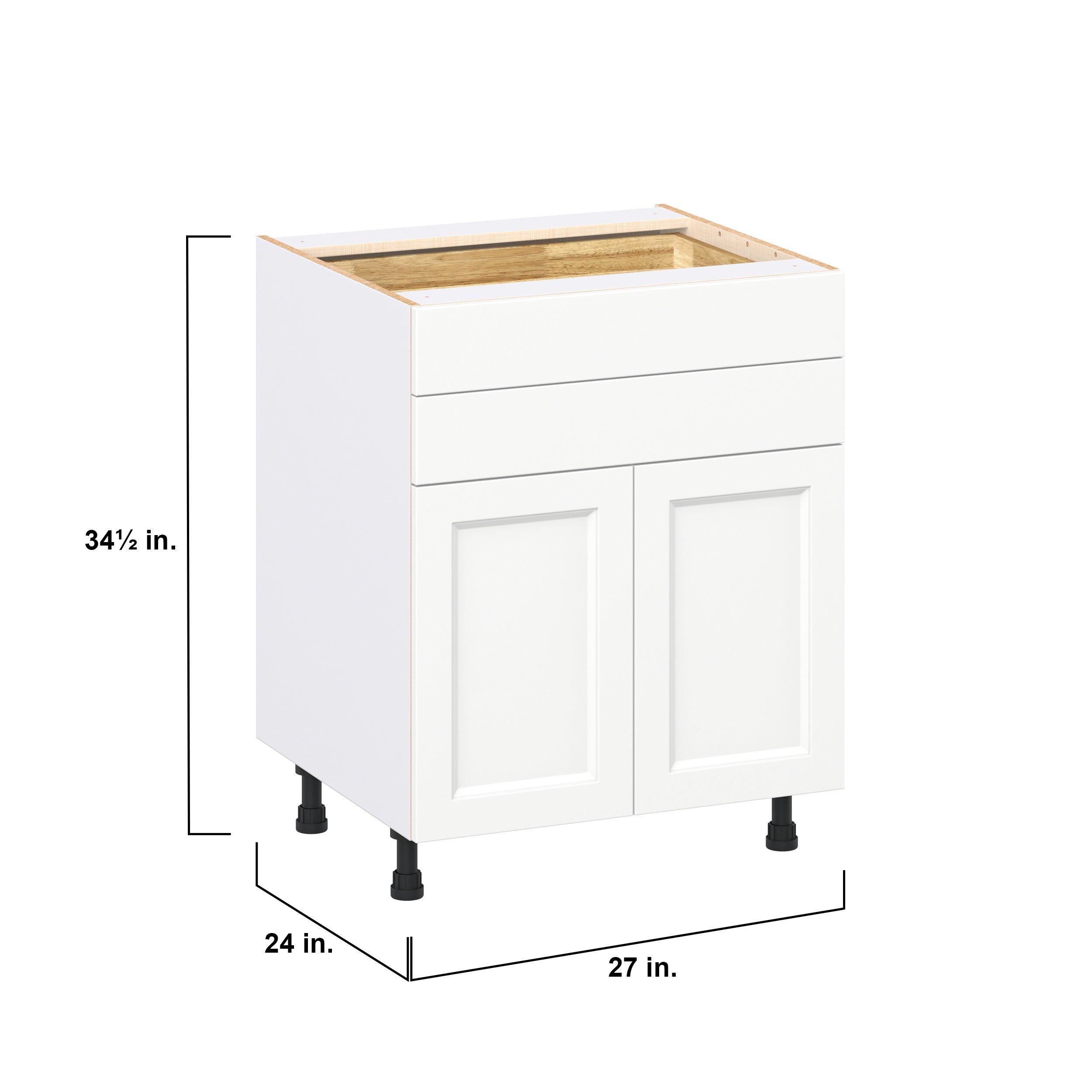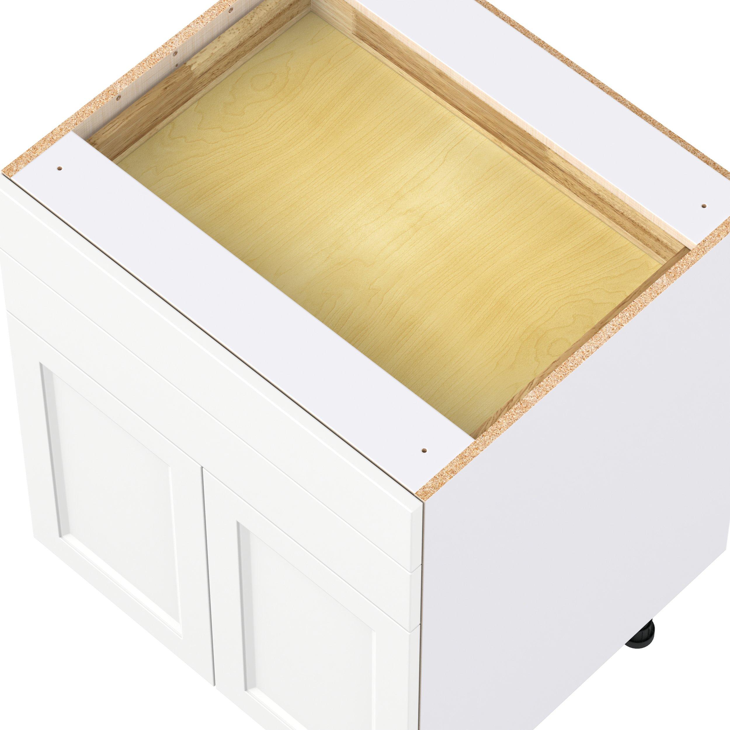 Make a statement with Peachtree premium painted shaker-inspired cabinets, offering both style and durability for years to come. Available in classic bright white and rich midnight blue, this collection is designed to fit seamlessly into both modern and transitional interiors. Crafted from one-piece MDF Studio Design Collection Peachtree 27 in. Painted Bright White Door and Drawer Base Cabinet is designed to resist hairline cracks while the easy-to-clean finish stands up to stains and moisture. Featuring 5-piece doors and dovetail drawer joints, these cabinets offer durability and elegance. This collection combines style with everyday storage solutions.