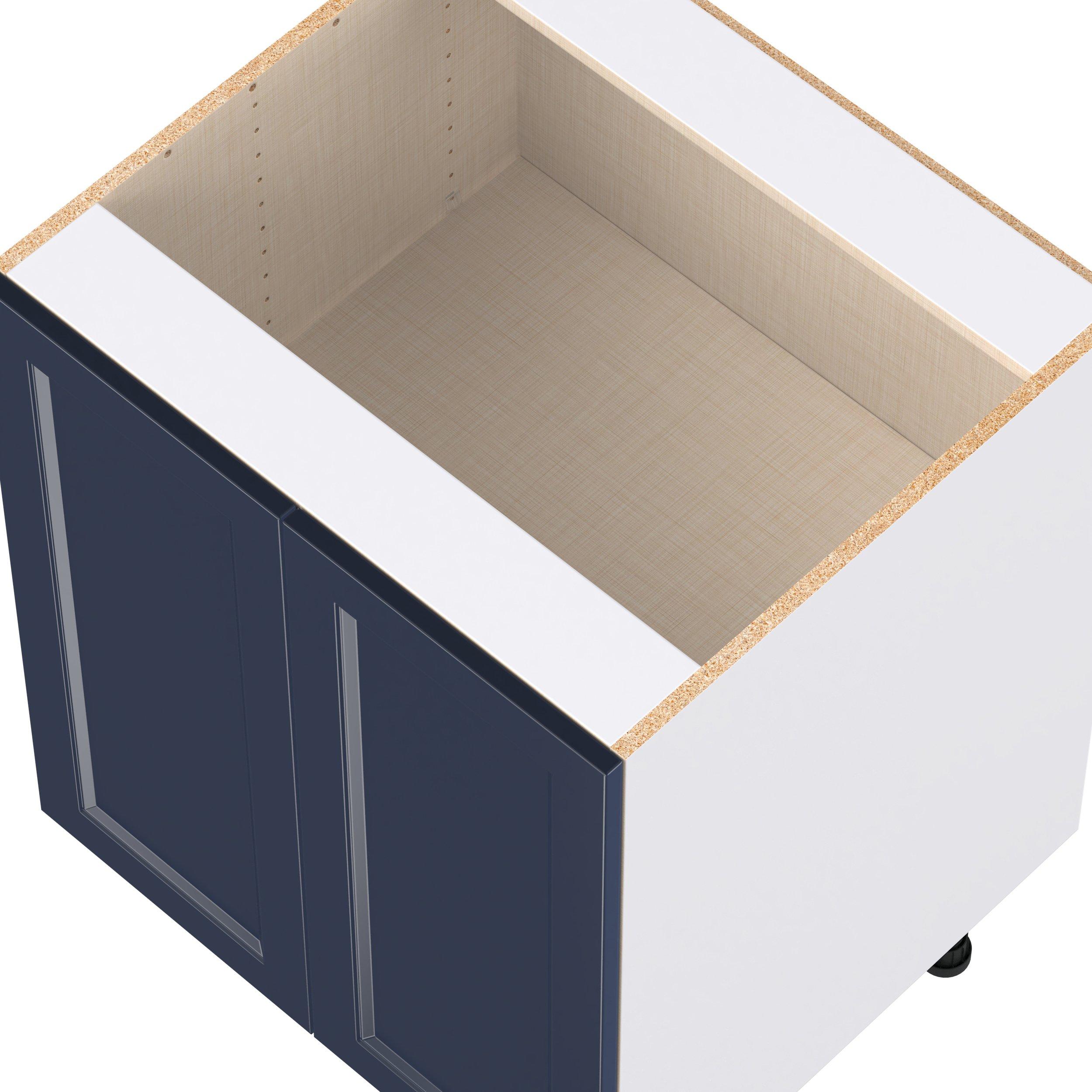 Make a statement with Peachtree premium painted shaker-inspired cabinets, offering both style and durability for years to come. Available in classic bright white and rich midnight blue, this collection is designed to fit seamlessly into both modern and transitional interiors. Crafted from one-piece MDF Studio Design Collection Peachtree 27 in. Painted Midnight Blue Door Base Cabinet is designed to resist hairline cracks while the easy-to-clean finish stands up to stains and moisture. Featuring 5-piece doors and dovetail drawer joints, these cabinets offer durability and elegance. This collection combines style with everyday storage solutions.