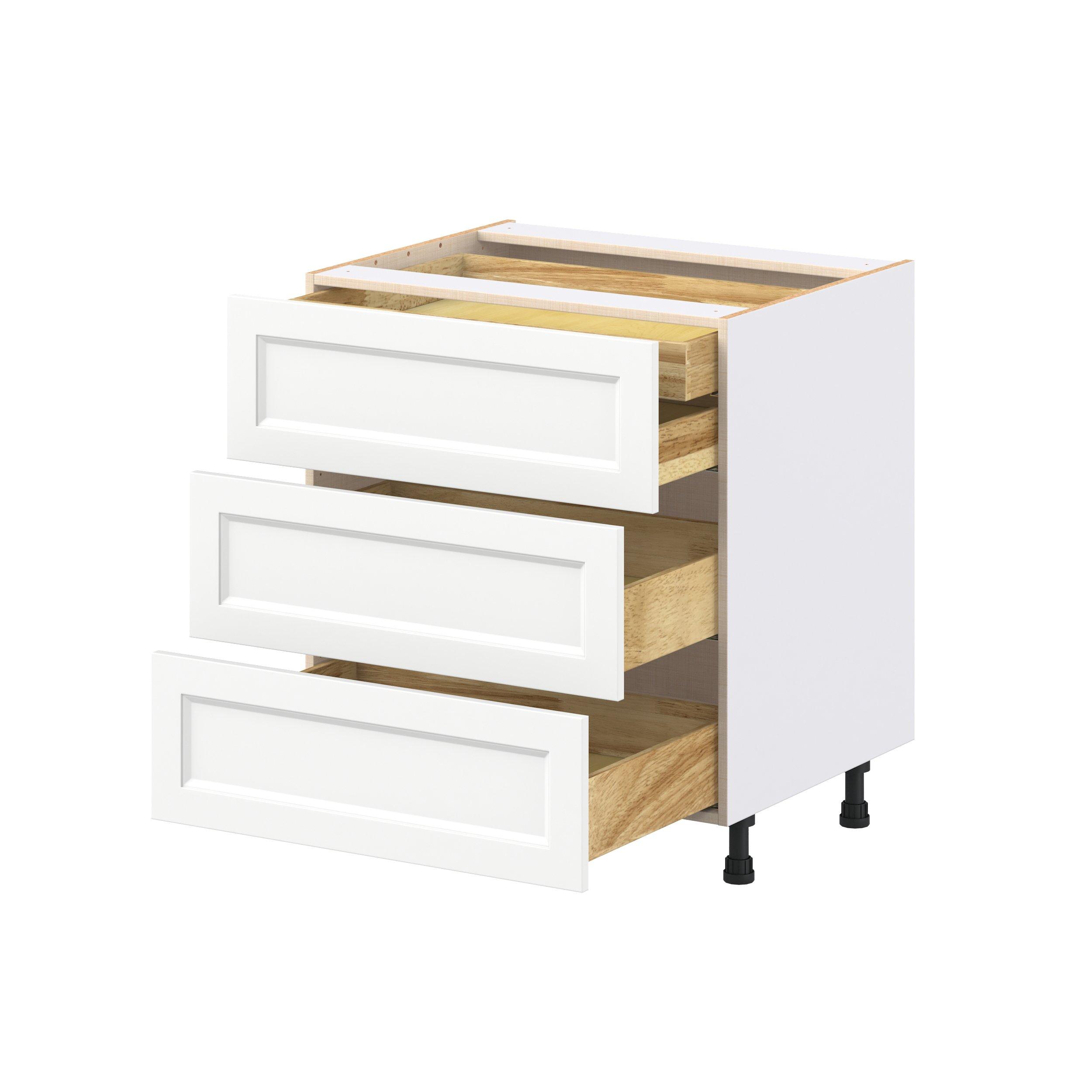 Make a statement with Peachtree premium painted shaker-inspired cabinets, offering both style and durability for years to come. Available in classic bright white and rich midnight blue, this collection is designed to fit seamlessly into both modern and transitional interiors. Crafted from one-piece MDF Studio Design Collection Peachtree 30 in. Painted Bright White Base Cabinet with Inner Pull-Out Drawer is designed to resist hairline cracks while the easy-to-clean finish stands up to stains and moisture. Featuring 5-piece doors and dovetail drawer joints, these cabinets offer durability and elegance. This collection combines style with everyday storage solutions.