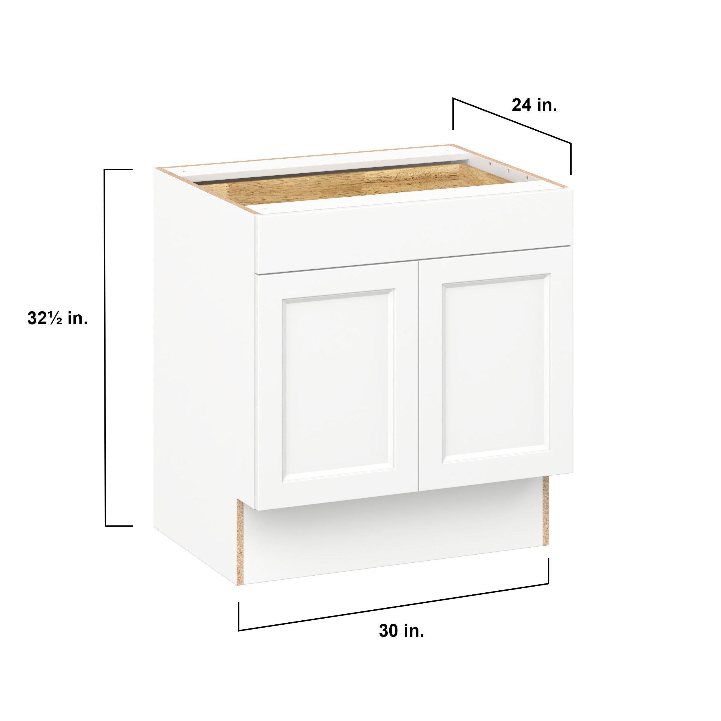 Make a statement with Peachtree premium painted shaker-inspired cabinets, offering both style and durability for years to come. Available in classic bright white and rich midnight blue, this collection is designed to fit seamlessly into both modern and transitional interiors. Crafted from one-piece MDF Studio Design Collection Peachtree 30 in. Painted Bright White Door and Drawer Base Cabinet is designed to resist hairline cracks while the easy-to-clean finish stands up to stains and moisture. Featuring 5-piece doors and dovetail drawer joints, these cabinets offer durability and elegance. This collection combines style with everyday storage solutions.