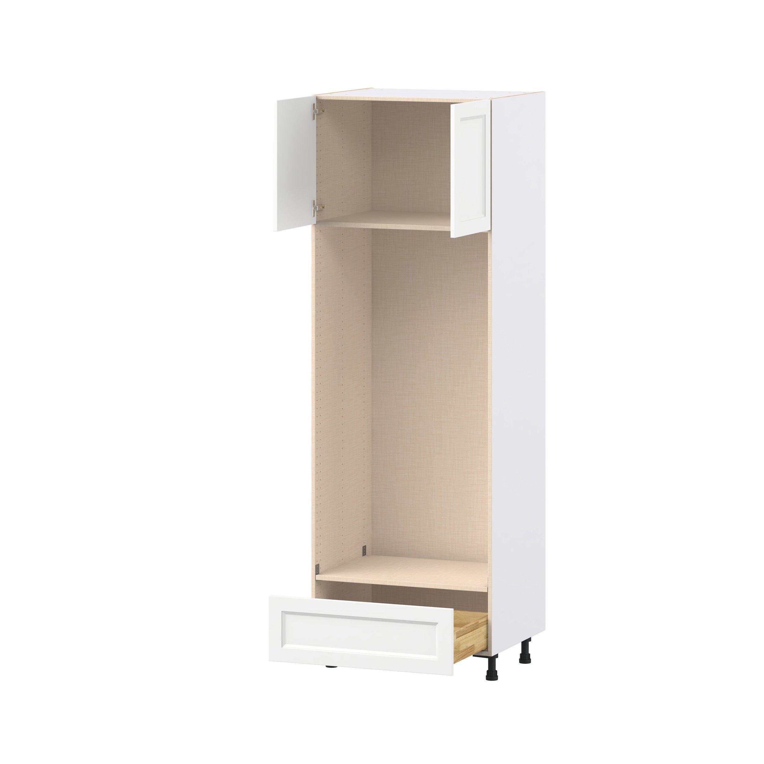 Make a statement with Peachtree premium painted shaker-inspired cabinets, offering both style and durability for years to come. Available in classic bright white and rich midnight blue, this collection is designed to fit seamlessly into both modern and transitional interiors. Crafted from one-piece MDF Studio Design Collection Peachtree 30 in. Painted Bright White Door and Drawer Double Oven Pantry Cabinet is designed to resist hairline cracks while the easy-to-clean finish stands up to stains and moisture. Featuring 5-piece doors and dovetail drawer joints, these cabinets offer durability and elegance. This collection combines style with everyday storage solutions.