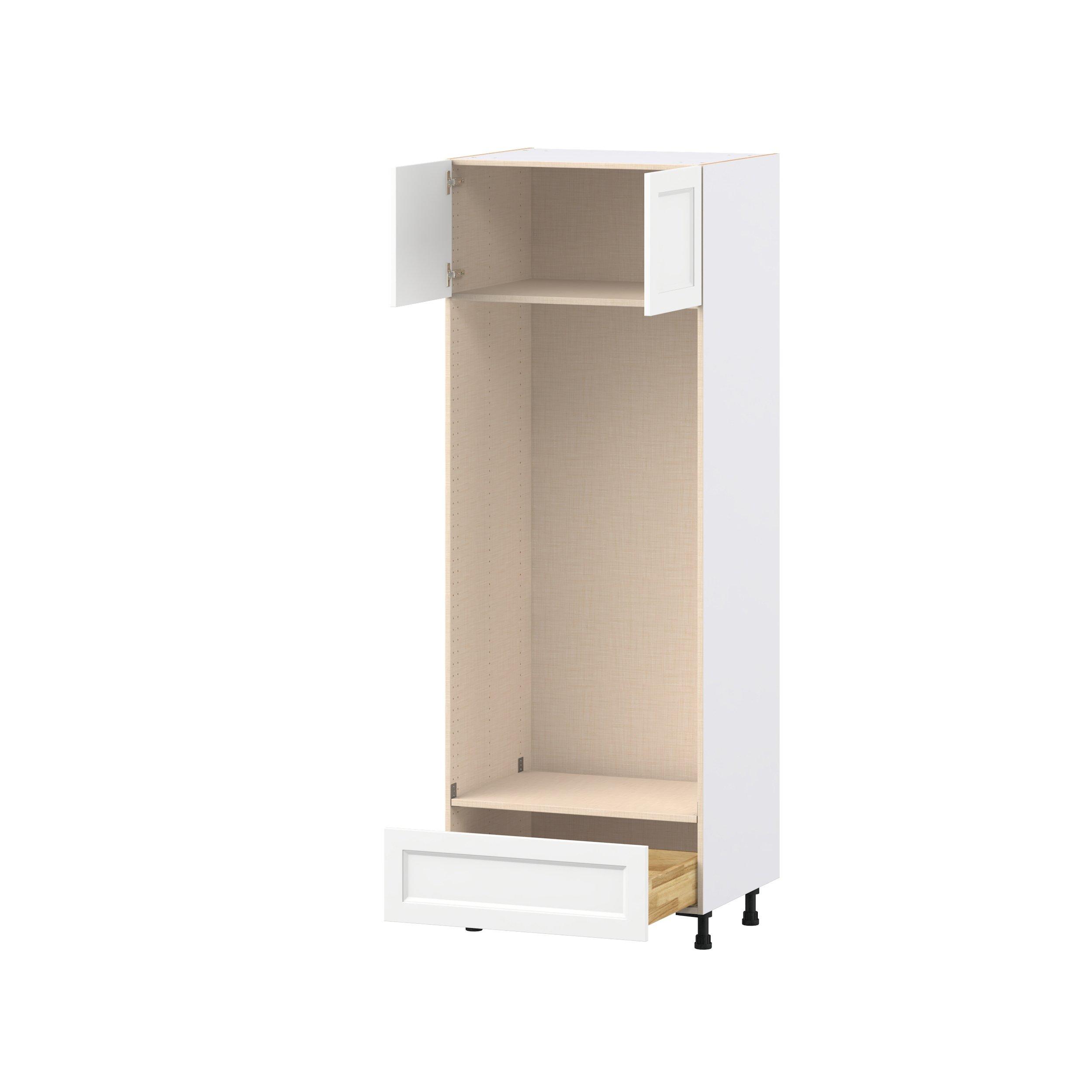 Make a statement with Peachtree premium painted shaker-inspired cabinets, offering both style and durability for years to come. Available in classic bright white and rich midnight blue, this collection is designed to fit seamlessly into both modern and transitional interiors. Crafted from one-piece MDF Studio Design Collection Peachtree 30 in. Painted Bright White Door and Drawer Double Oven Pantry Cabinet is designed to resist hairline cracks while the easy-to-clean finish stands up to stains and moisture. Featuring 5-piece doors and dovetail drawer joints, these cabinets offer durability and elegance. This collection combines style with everyday storage solutions.
