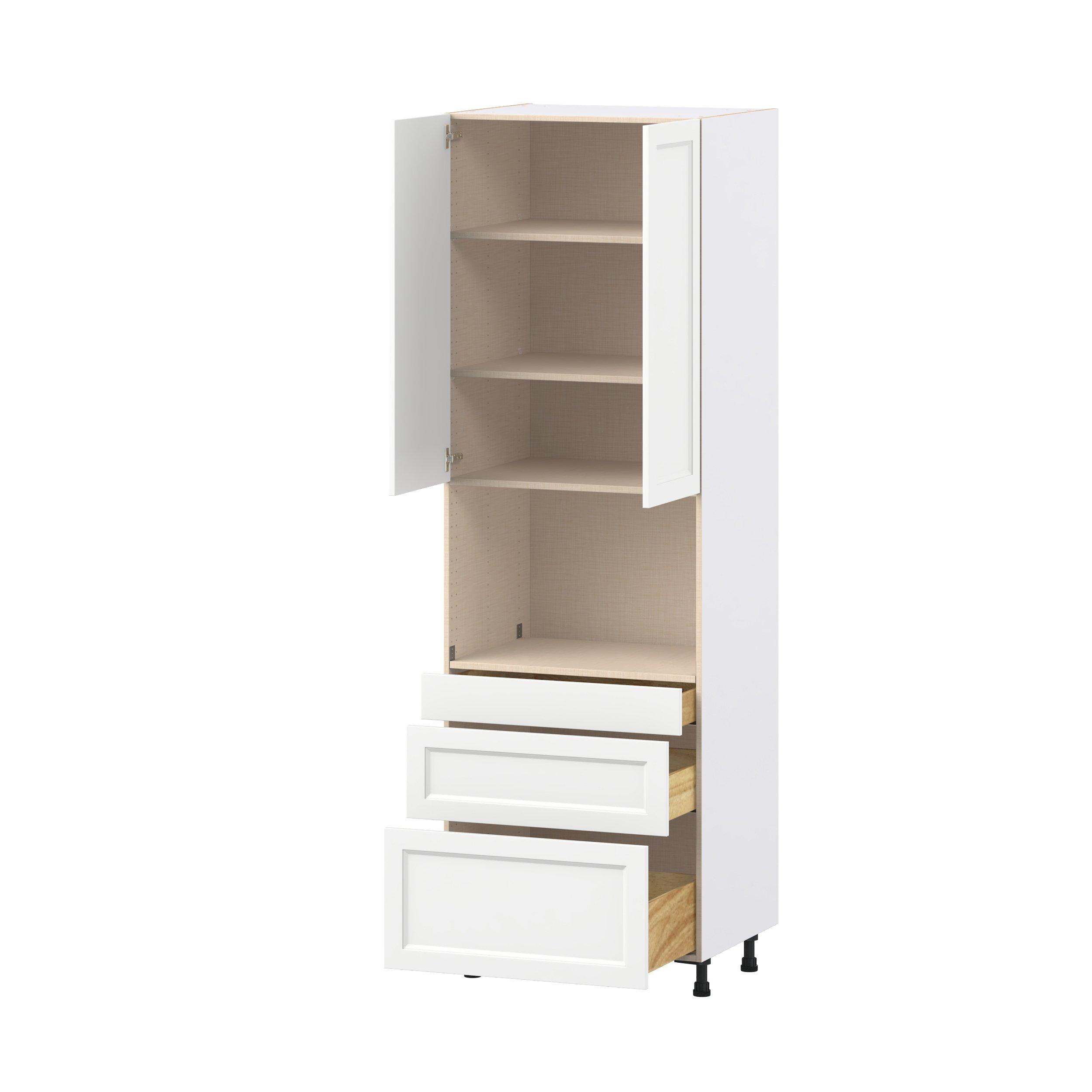 Make a statement with Peachtree premium painted shaker-inspired cabinets, offering both style and durability for years to come. Available in classic bright white and rich midnight blue, this collection is designed to fit seamlessly into both modern and transitional interiors. Crafted from one-piece MDF Studio Design Collection Peachtree 30 in. Painted Bright White Door and Drawer Microwave Pantry Cabinet is designed to resist hairline cracks while the easy-to-clean finish stands up to stains and moisture. Featuring 5-piece doors and dovetail drawer joints, these cabinets offer durability and elegance. This collection combines style with everyday storage solutions.