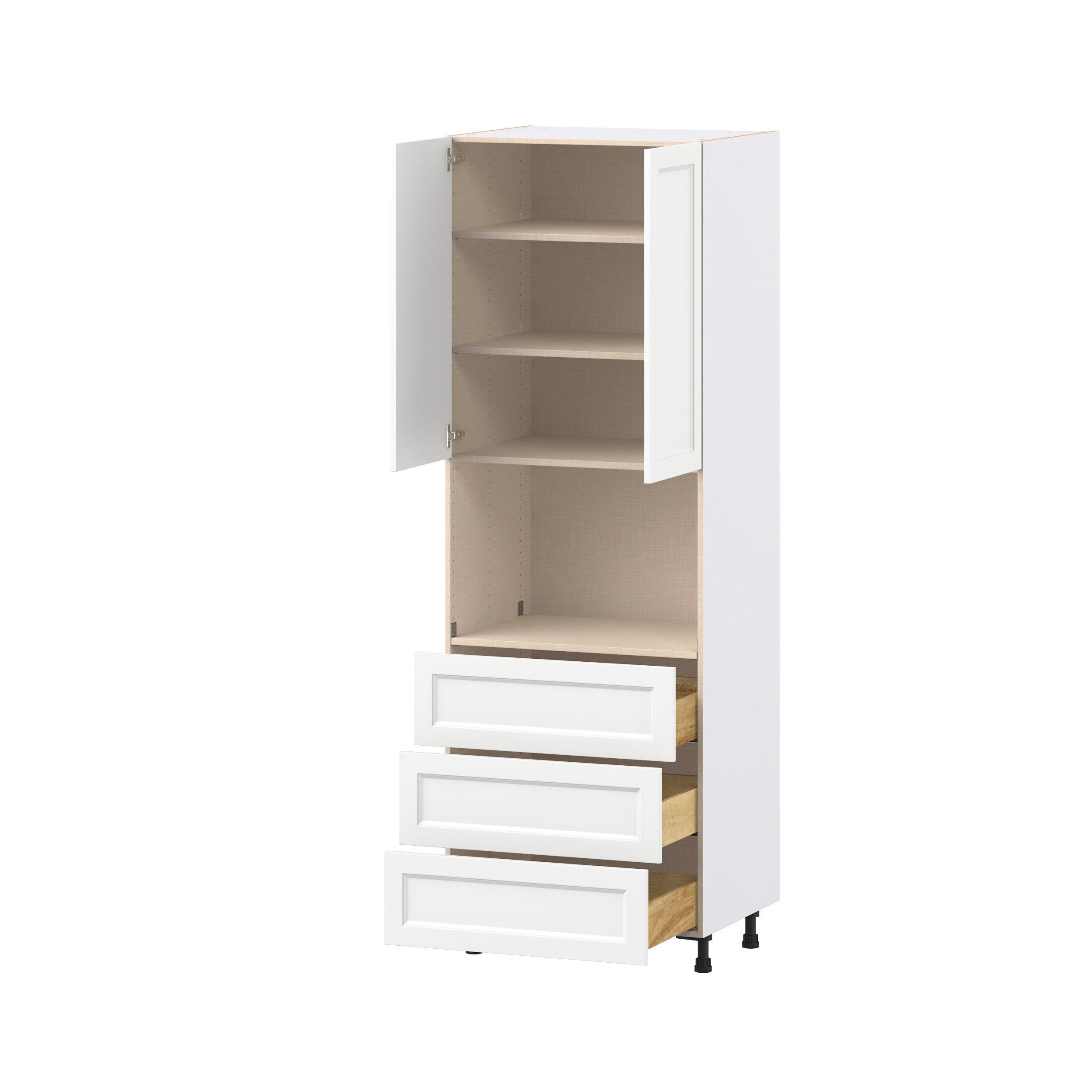 Make a statement with Peachtree premium painted shaker-inspired cabinets, offering both style and durability for years to come. Available in classic bright white and rich midnight blue, this collection is designed to fit seamlessly into both modern and transitional interiors. Crafted from one-piece MDF Studio Design Collection Peachtree 30 in. Painted Bright White Door and Drawer Microwave Pantry Cabinet is designed to resist hairline cracks while the easy-to-clean finish stands up to stains and moisture. Featuring 5-piece doors and dovetail drawer joints, these cabinets offer durability and elegance. This collection combines style with everyday storage solutions.