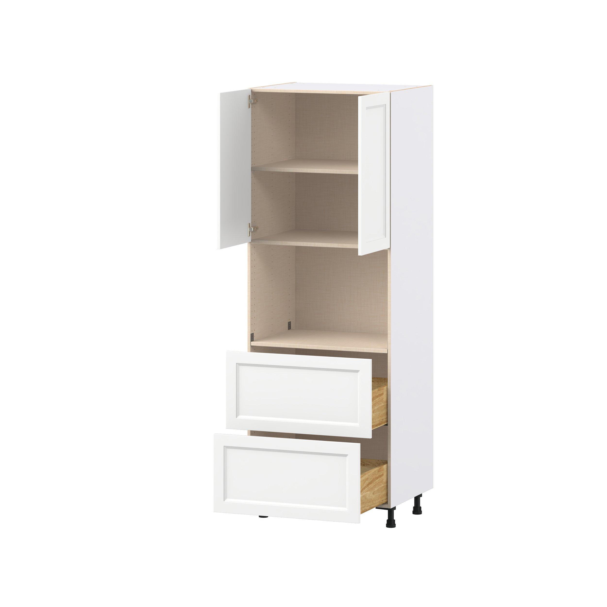 Make a statement with Peachtree premium painted shaker-inspired cabinets, offering both style and durability for years to come. Available in classic bright white and rich midnight blue, this collection is designed to fit seamlessly into both modern and transitional interiors. Crafted from one-piece MDF Studio Design Collection Peachtree 30 in. Painted Bright White Door and Drawer Microwave Pantry Cabinet is designed to resist hairline cracks while the easy-to-clean finish stands up to stains and moisture. Featuring 5-piece doors and dovetail drawer joints, these cabinets offer durability and elegance. This collection combines style with everyday storage solutions.