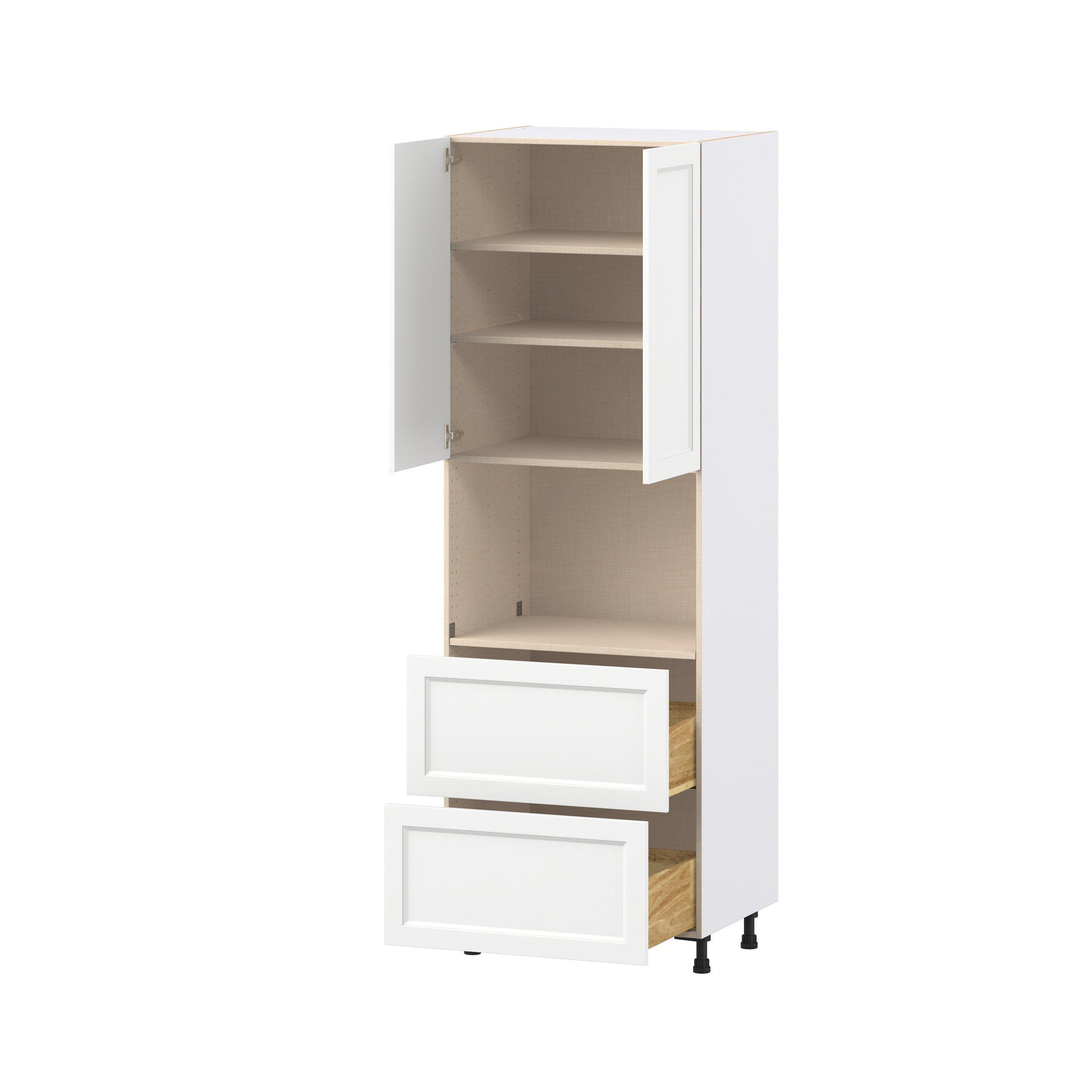 Make a statement with Peachtree premium painted shaker-inspired cabinets, offering both style and durability for years to come. Available in classic bright white and rich midnight blue, this collection is designed to fit seamlessly into both modern and transitional interiors. Crafted from one-piece MDF Studio Design Collection Peachtree 30 in. Painted Bright White Door and Drawer Microwave Pantry Cabinet is designed to resist hairline cracks while the easy-to-clean finish stands up to stains and moisture. Featuring 5-piece doors and dovetail drawer joints, these cabinets offer durability and elegance. This collection combines style with everyday storage solutions.