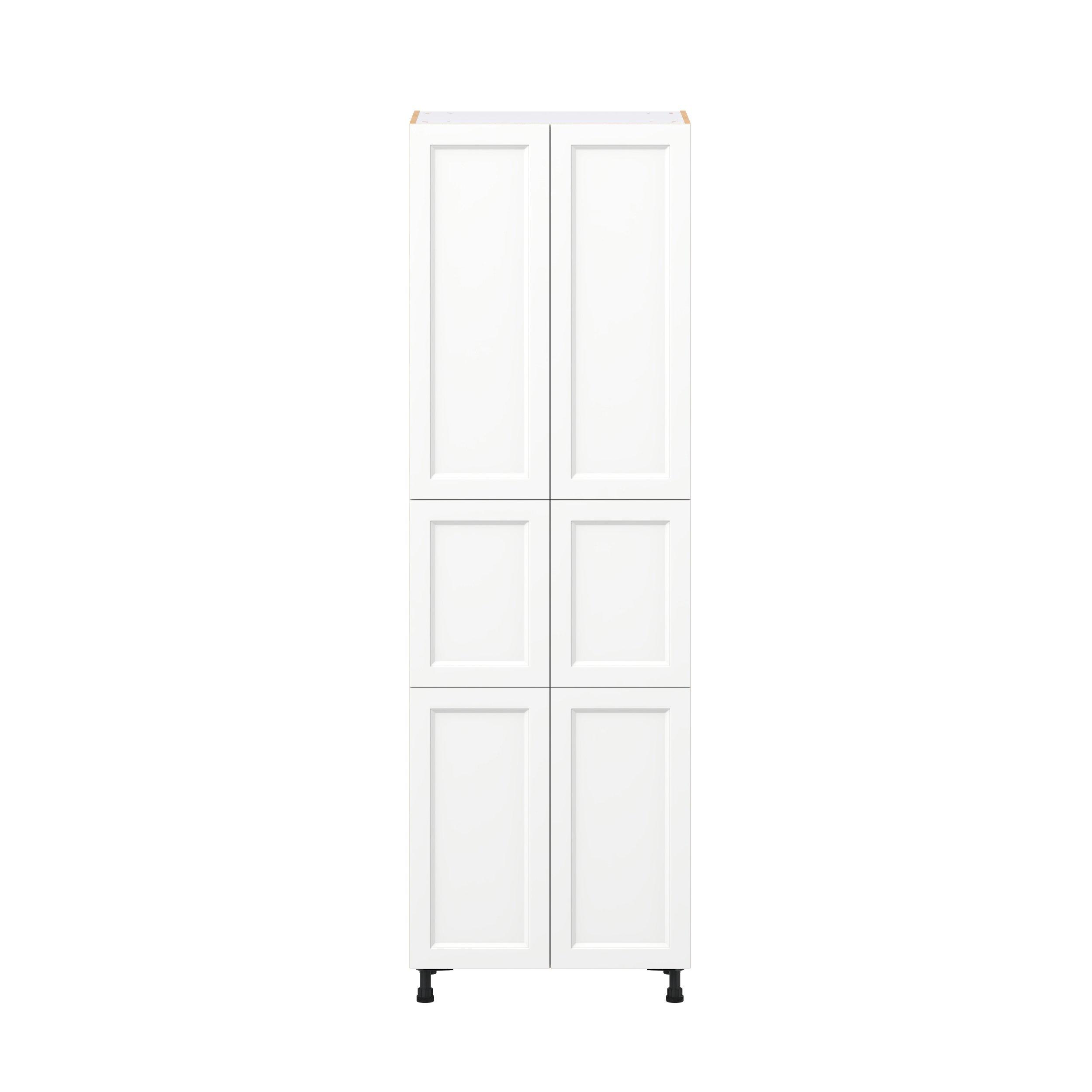 Make a statement with Peachtree premium painted shaker-inspired cabinets, offering both style and durability for years to come. Available in classic bright white and rich midnight blue, this collection is designed to fit seamlessly into both modern and transitional interiors. Crafted from one-piece MDF Studio Design Collection Peachtree 30 in. Painted Bright White Door Pantry Cabinet is designed to resist hairline cracks while the easy-to-clean finish stands up to stains and moisture. Featuring 5-piece doors and dovetail drawer joints, these cabinets offer durability and elegance. This collection combines style with everyday storage solutions.