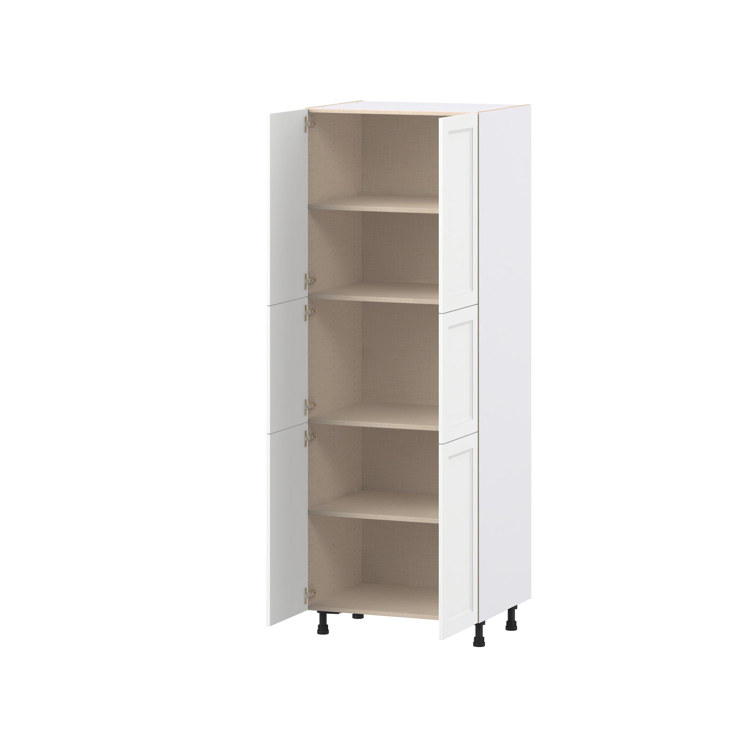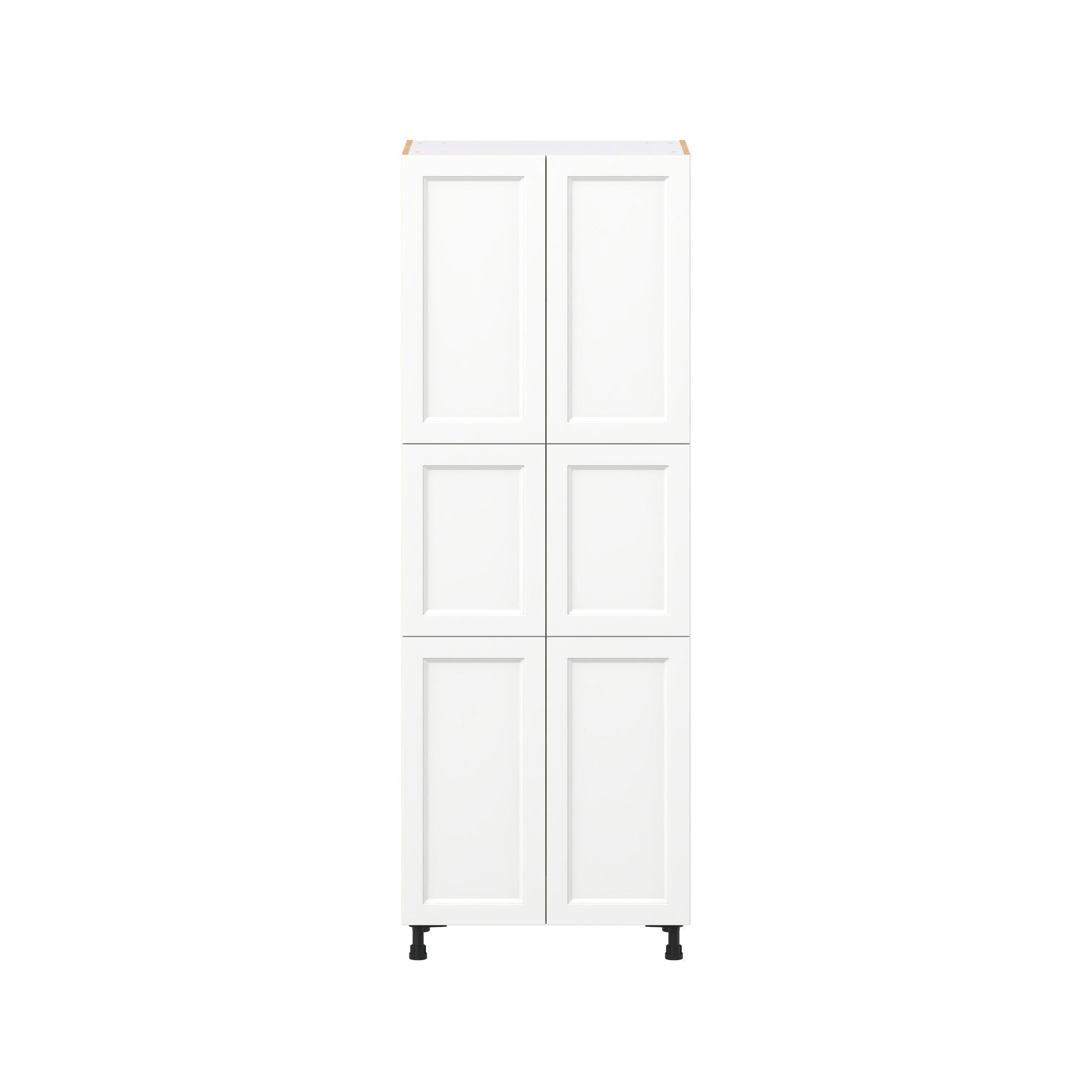 Make a statement with Peachtree premium painted shaker-inspired cabinets, offering both style and durability for years to come. Available in classic bright white and rich midnight blue, this collection is designed to fit seamlessly into both modern and transitional interiors. Crafted from one-piece MDF Studio Design Collection Peachtree 30 in. Painted Bright White Door Pantry Cabinet is designed to resist hairline cracks while the easy-to-clean finish stands up to stains and moisture. Featuring 5-piece doors and dovetail drawer joints, these cabinets offer durability and elegance. This collection combines style with everyday storage solutions.
