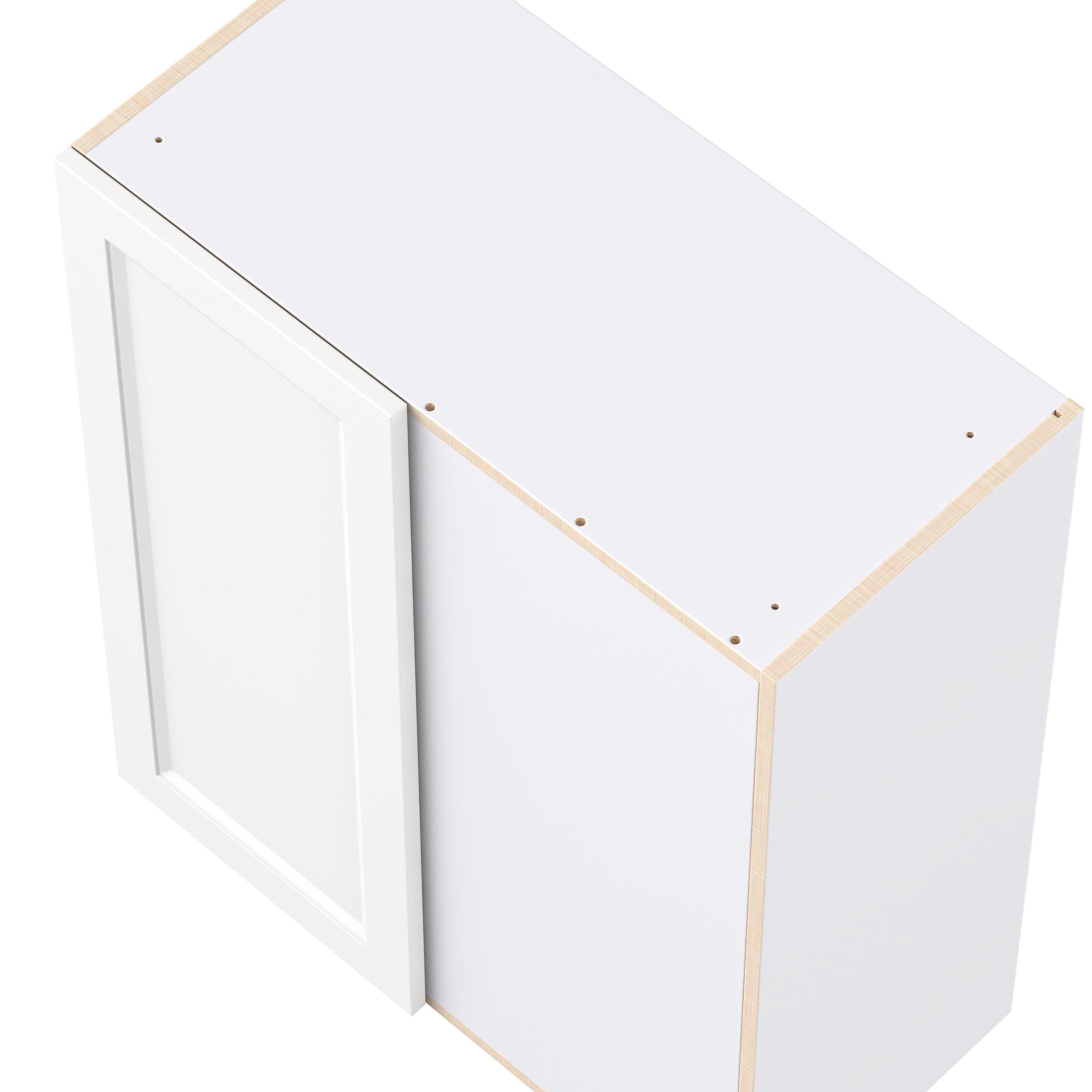 Make a statement with Peachtree premium painted shaker-inspired cabinets, offering both style and durability for years to come. Available in classic bright white and rich midnight blue, this collection is designed to fit seamlessly into both modern and transitional interiors. Crafted from one-piece MDF Studio Design Collection Peachtree 30 in. Painted Bright White Right Blind Corner Wall Cabinet is designed to resist hairline cracks while the easy-to-clean finish stands up to stains and moisture. Featuring 5-piece doors and dovetail drawer joints, these cabinets offer durability and elegance. This collection combines style with everyday storage solutions.