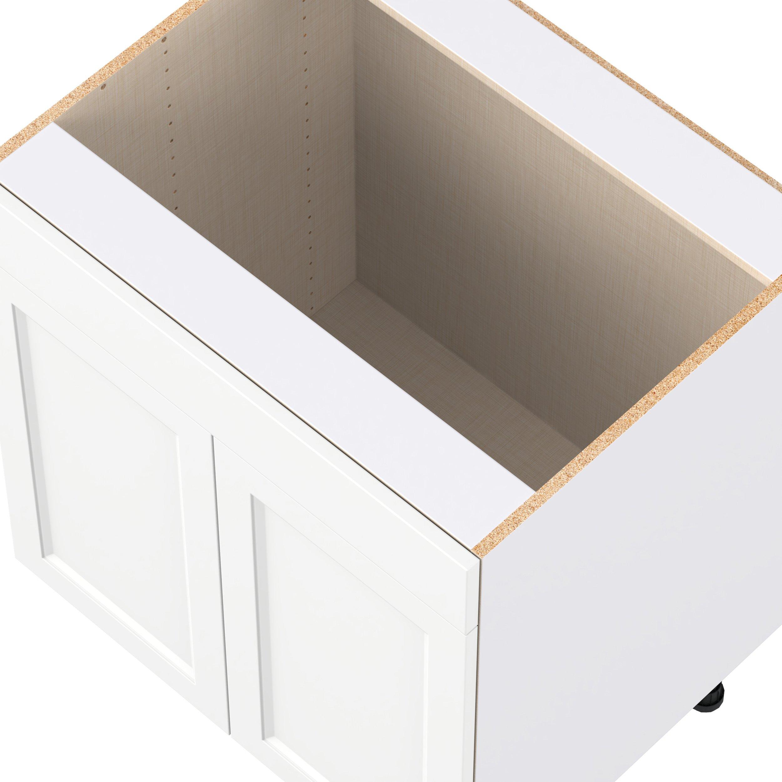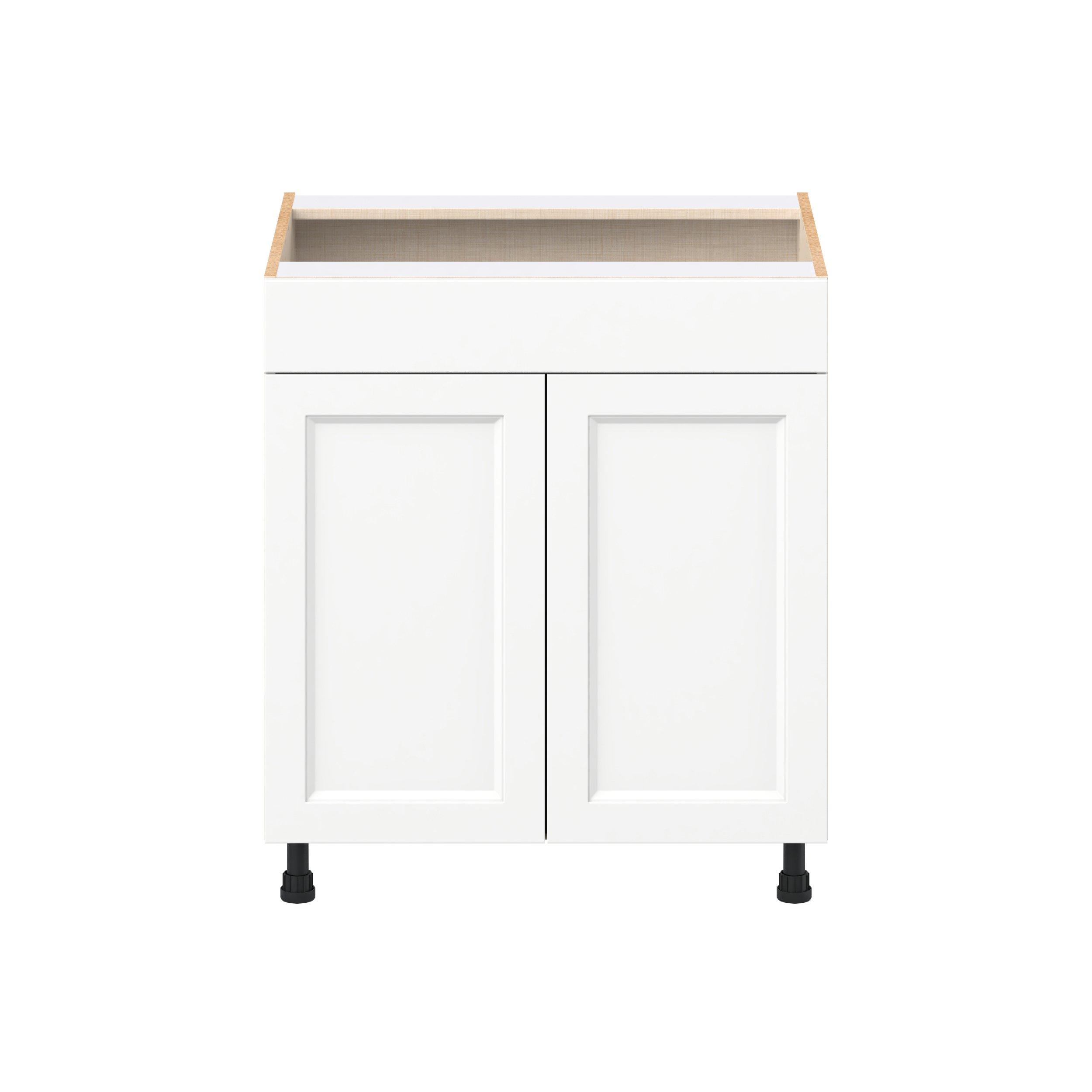 Make a statement with Peachtree premium painted shaker-inspired cabinets, offering both style and durability for years to come. Available in classic bright white and rich midnight blue, this collection is designed to fit seamlessly into both modern and transitional interiors. Crafted from one-piece MDF Studio Design Collection Peachtree 30 in. Painted Bright White Sink Base Cabinet with False Front is designed to resist hairline cracks while the easy-to-clean finish stands up to stains and moisture. Featuring 5-piece doors and dovetail drawer joints, these cabinets offer durability and elegance. This collection combines style with everyday storage solutions.