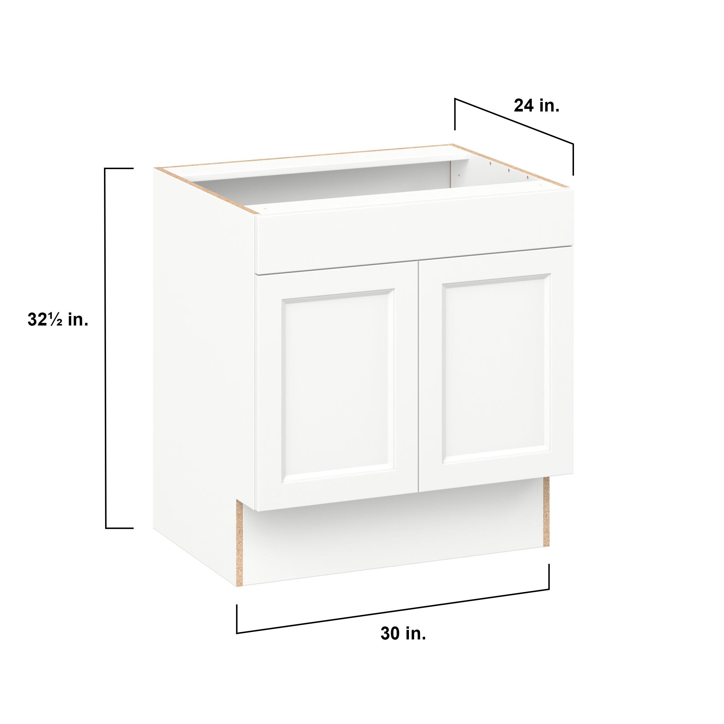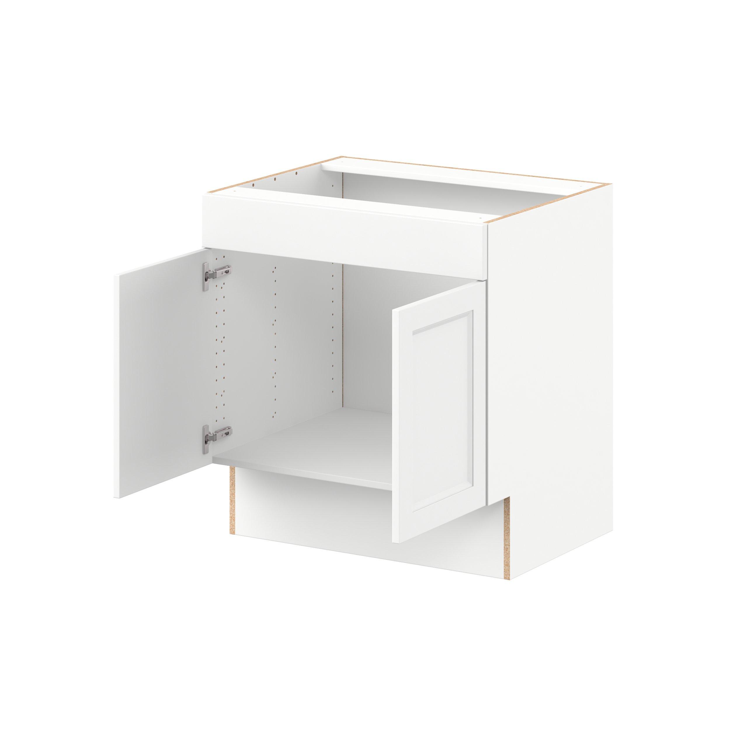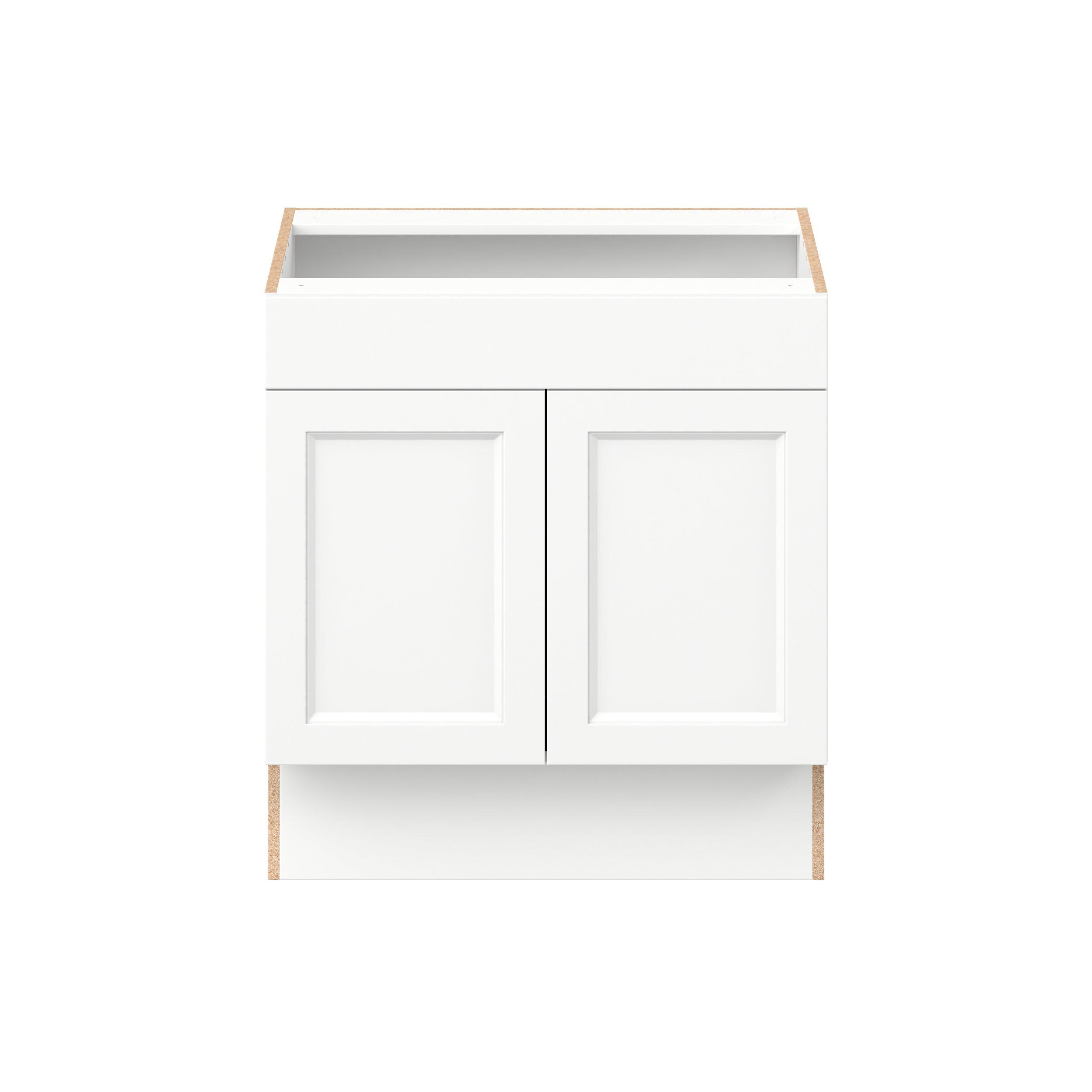 Make a statement with Peachtree premium painted shaker-inspired cabinets, offering both style and durability for years to come. Available in classic bright white and rich midnight blue, this collection is designed to fit seamlessly into both modern and transitional interiors. Crafted from one-piece MDF Studio Design Collection Peachtree 30 in. Painted Bright White Sink Base Cabinet with False Front is designed to resist hairline cracks while the easy-to-clean finish stands up to stains and moisture. Featuring 5-piece doors and dovetail drawer joints, these cabinets offer durability and elegance. This collection combines style with everyday storage solutions.