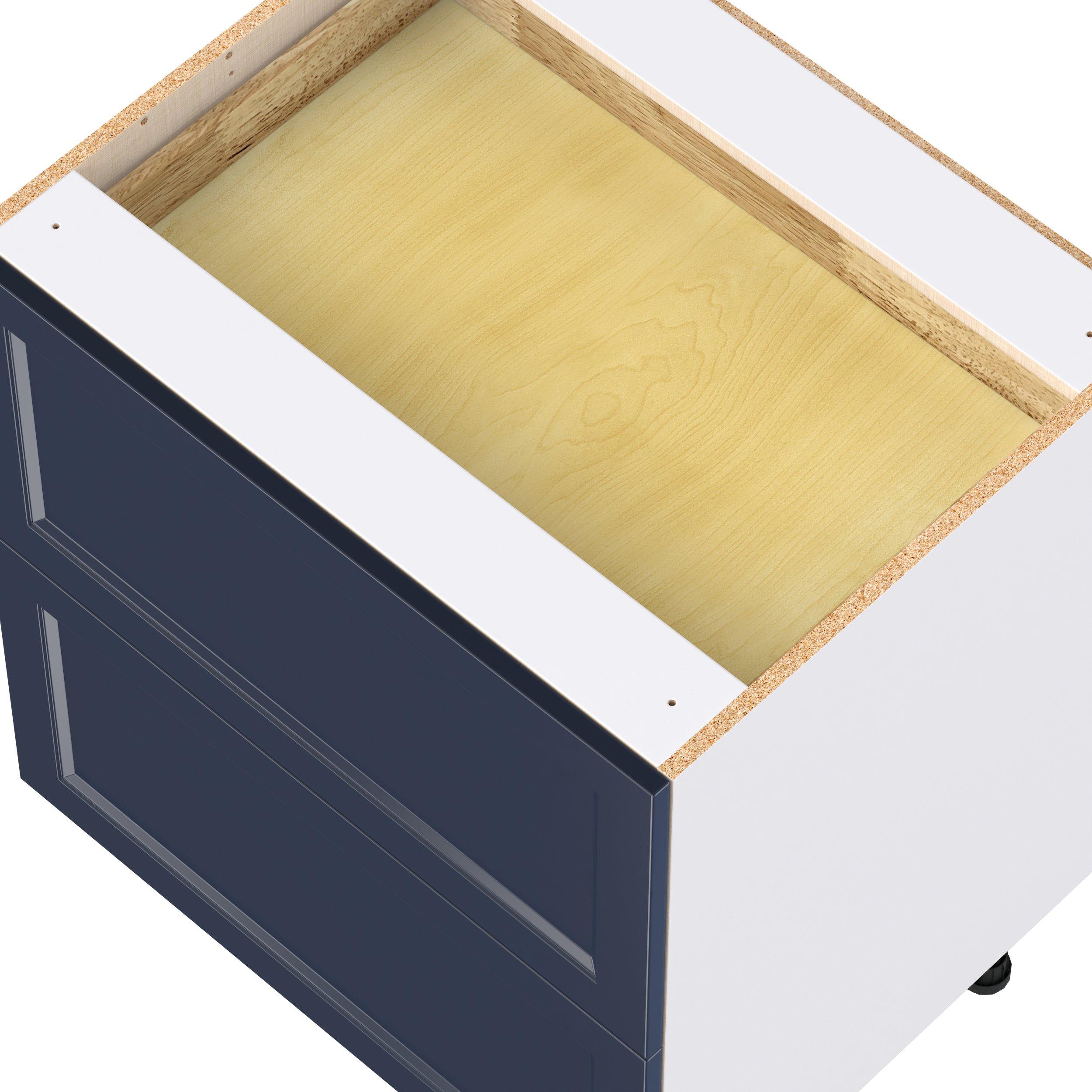 Make a statement with Peachtree premium painted shaker-inspired cabinets, offering both style and durability for years to come. Available in classic bright white and rich midnight blue, this collection is designed to fit seamlessly into both modern and transitional interiors. Crafted from one-piece MDF Studio Design Collection Peachtree 30 in. Painted Midnight Blue Base Cabinet with Inner Pull-Out Drawer is designed to resist hairline cracks while the easy-to-clean finish stands up to stains and moisture. Featuring 5-piece doors and dovetail drawer joints, these cabinets offer durability and elegance. This collection combines style with everyday storage solutions.