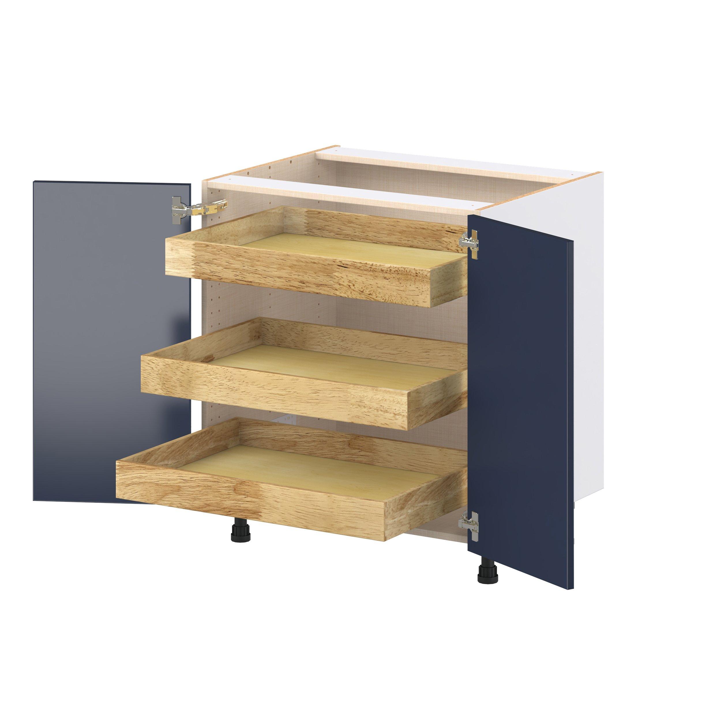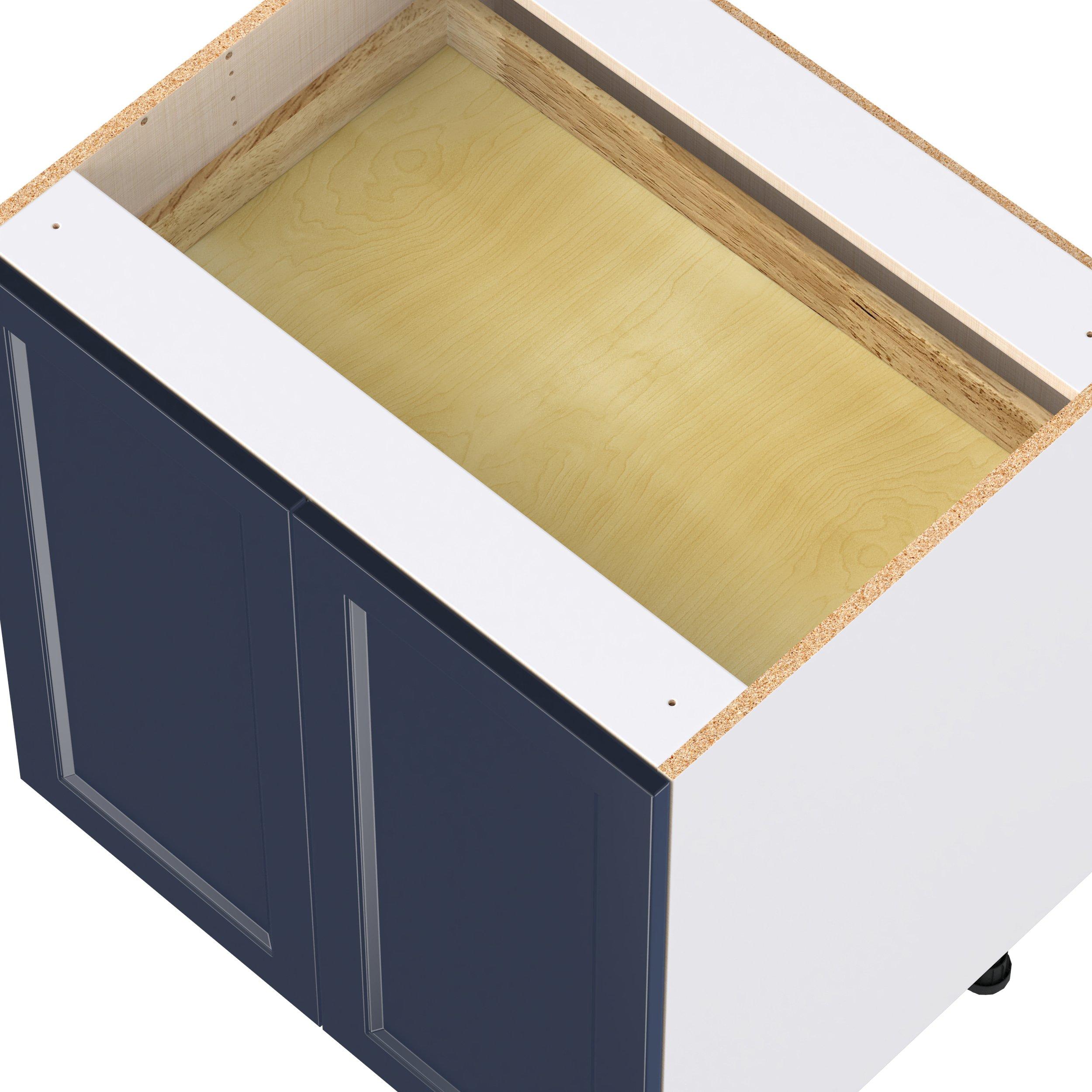 Make a statement with Peachtree premium painted shaker-inspired cabinets, offering both style and durability for years to come. Available in classic bright white and rich midnight blue, this collection is designed to fit seamlessly into both modern and transitional interiors. Crafted from one-piece MDF Studio Design Collection Peachtree 30 in. Painted Midnight Blue Base Cabinet with Inner Pull-Out Drawer is designed to resist hairline cracks while the easy-to-clean finish stands up to stains and moisture. Featuring 5-piece doors and dovetail drawer joints, these cabinets offer durability and elegance. This collection combines style with everyday storage solutions.