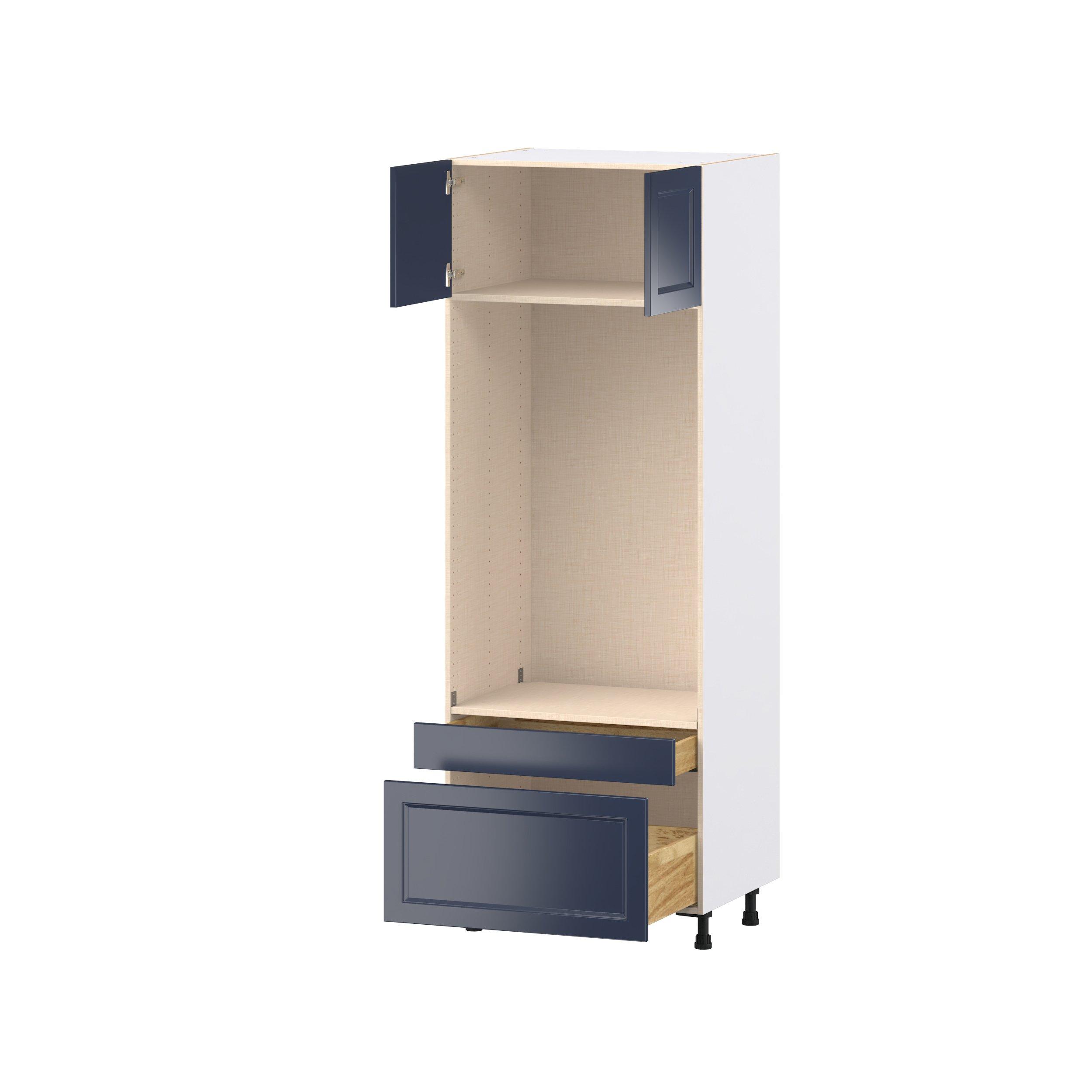 Make a statement with Peachtree premium painted shaker-inspired cabinets, offering both style and durability for years to come. Available in classic bright white and rich midnight blue, this collection is designed to fit seamlessly into both modern and transitional interiors. Crafted from one-piece MDF Studio Design Collection Peachtree 30 in. Painted Midnight Blue Door and Drawer Microwave/Oven Pantry Cabinet is designed to resist hairline cracks while the easy-to-clean finish stands up to stains and moisture. Featuring 5-piece doors and dovetail drawer joints, these cabinets offer durability and elegance. This collection combines style with everyday storage solutions.