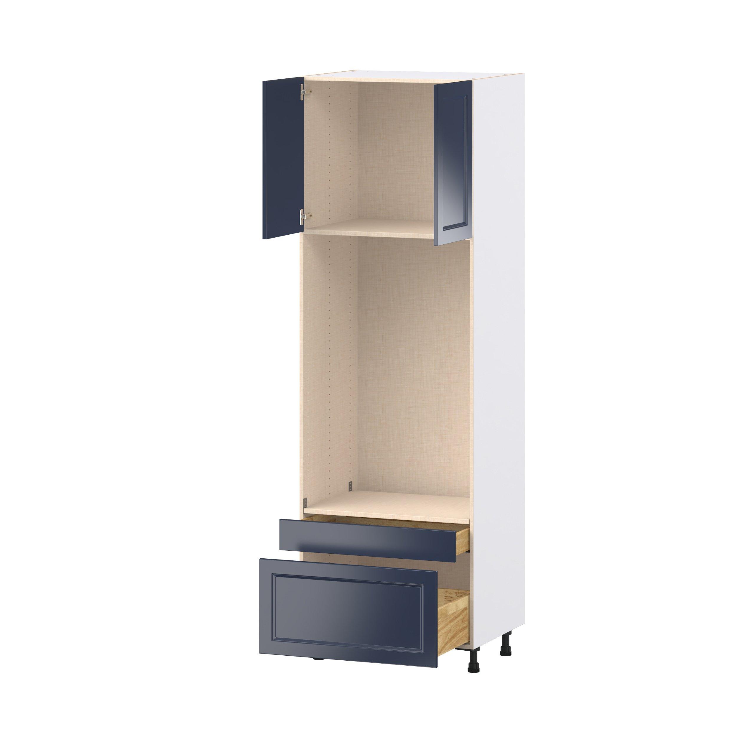 Make a statement with Peachtree premium painted shaker-inspired cabinets, offering both style and durability for years to come. Available in classic bright white and rich midnight blue, this collection is designed to fit seamlessly into both modern and transitional interiors. Crafted from one-piece MDF Studio Design Collection Peachtree 30 in. Painted Midnight Blue Door and Drawer Microwave/Oven Pantry Cabinet is designed to resist hairline cracks while the easy-to-clean finish stands up to stains and moisture. Featuring 5-piece doors and dovetail drawer joints, these cabinets offer durability and elegance. This collection combines style with everyday storage solutions.