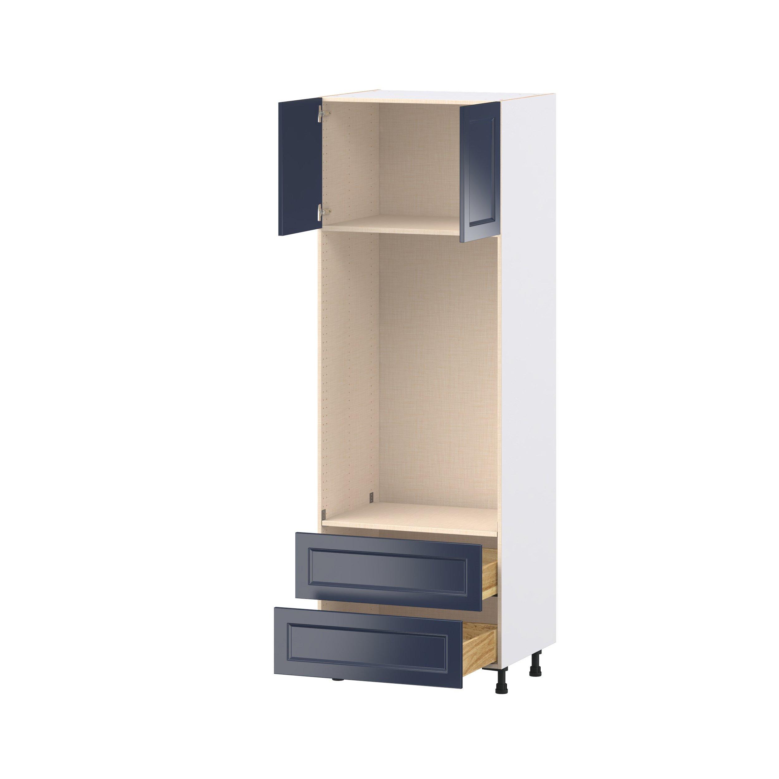 Make a statement with Peachtree premium painted shaker-inspired cabinets, offering both style and durability for years to come. Available in classic bright white and rich midnight blue, this collection is designed to fit seamlessly into both modern and transitional interiors. Crafted from one-piece MDF Studio Design Collection Peachtree 30 in. Painted Midnight Blue Door and Drawer Microwave/Oven Pantry Cabinet is designed to resist hairline cracks while the easy-to-clean finish stands up to stains and moisture. Featuring 5-piece doors and dovetail drawer joints, these cabinets offer durability and elegance. This collection combines style with everyday storage solutions.