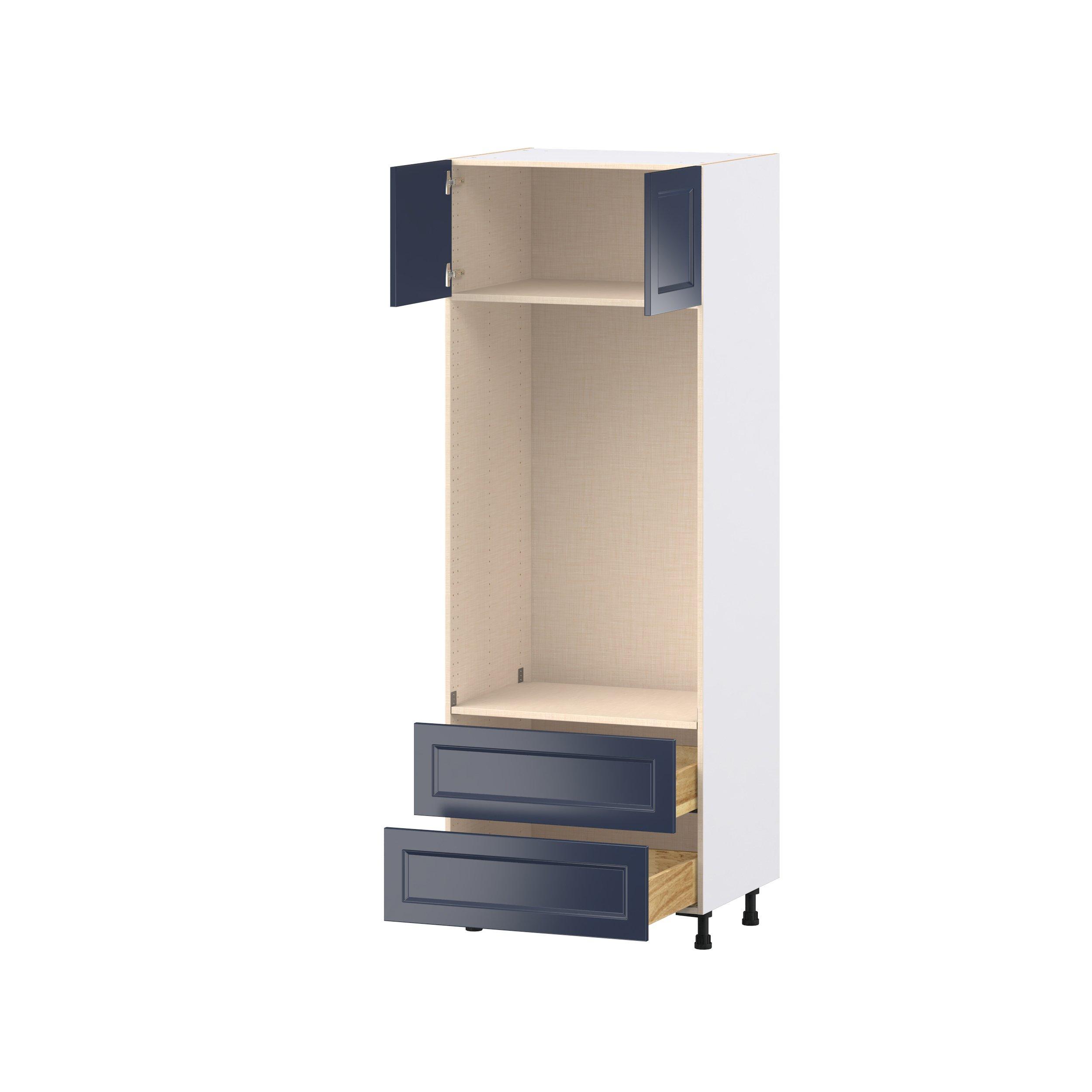 Make a statement with Peachtree premium painted shaker-inspired cabinets, offering both style and durability for years to come. Available in classic bright white and rich midnight blue, this collection is designed to fit seamlessly into both modern and transitional interiors. Crafted from one-piece MDF Studio Design Collection Peachtree 30 in. Painted Midnight Blue Door and Drawer Microwave/Oven Pantry Cabinet is designed to resist hairline cracks while the easy-to-clean finish stands up to stains and moisture. Featuring 5-piece doors and dovetail drawer joints, these cabinets offer durability and elegance. This collection combines style with everyday storage solutions.