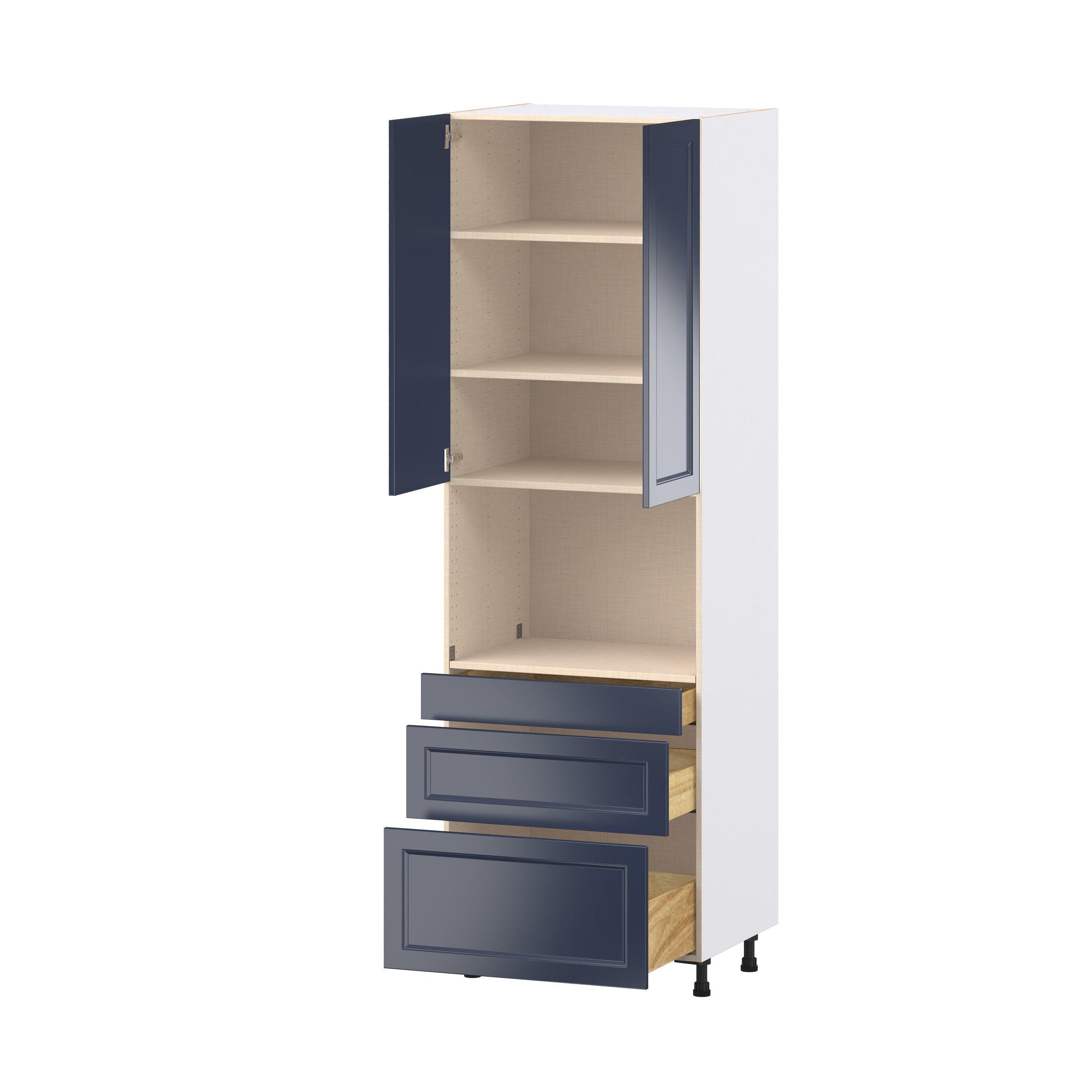 Make a statement with Peachtree premium painted shaker-inspired cabinets, offering both style and durability for years to come. Available in classic bright white and rich midnight blue, this collection is designed to fit seamlessly into both modern and transitional interiors. Crafted from one-piece MDF Studio Design Collection Peachtree 30 in. Painted Midnight Blue Door and Drawer Microwave Pantry Cabinet is designed to resist hairline cracks while the easy-to-clean finish stands up to stains and moisture. Featuring 5-piece doors and dovetail drawer joints, these cabinets offer durability and elegance. This collection combines style with everyday storage solutions.
