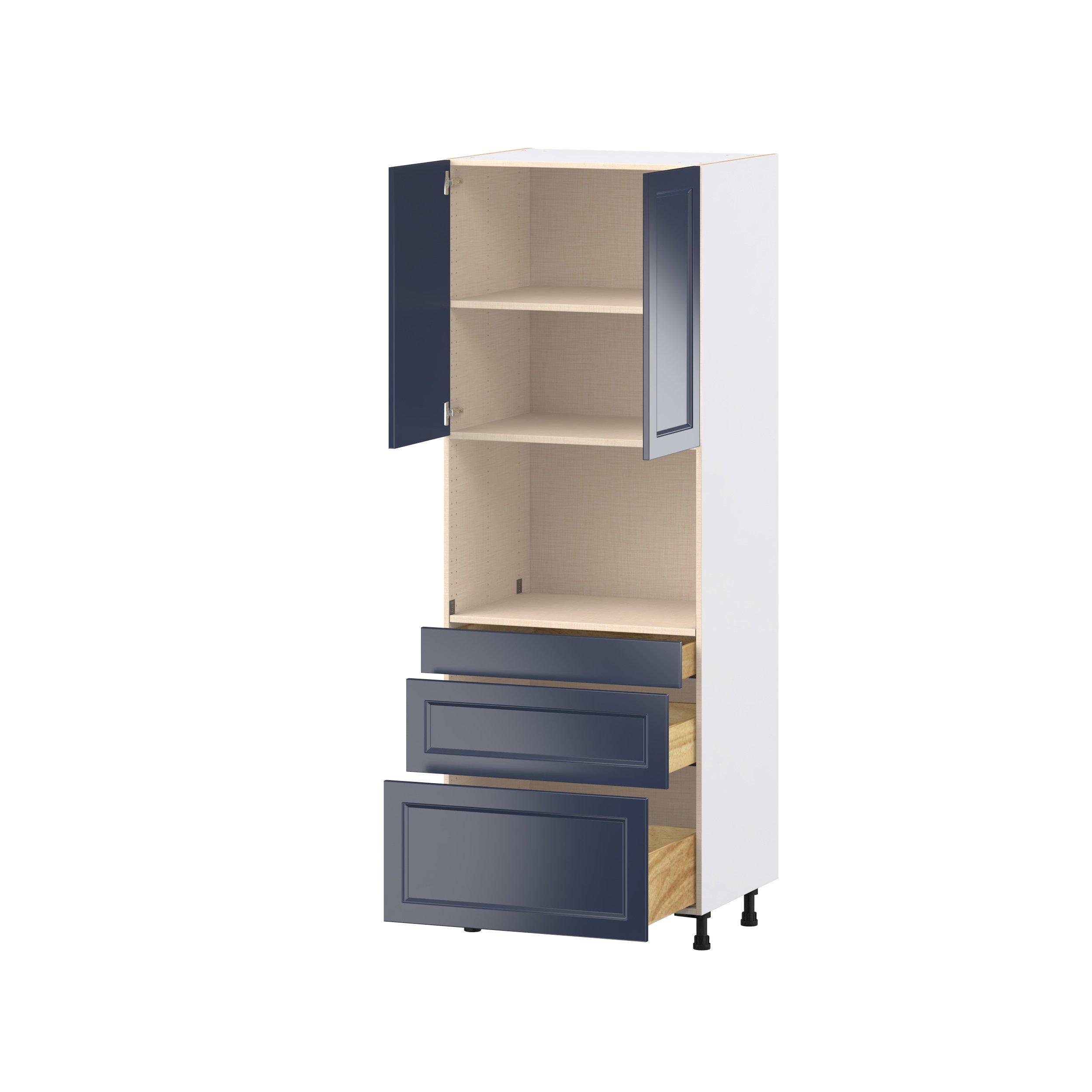 Make a statement with Peachtree premium painted shaker-inspired cabinets, offering both style and durability for years to come. Available in classic bright white and rich midnight blue, this collection is designed to fit seamlessly into both modern and transitional interiors. Crafted from one-piece MDF Studio Design Collection Peachtree 30 in. Painted Midnight Blue Door and Drawer Microwave Pantry Cabinet is designed to resist hairline cracks while the easy-to-clean finish stands up to stains and moisture. Featuring 5-piece doors and dovetail drawer joints, these cabinets offer durability and elegance. This collection combines style with everyday storage solutions.