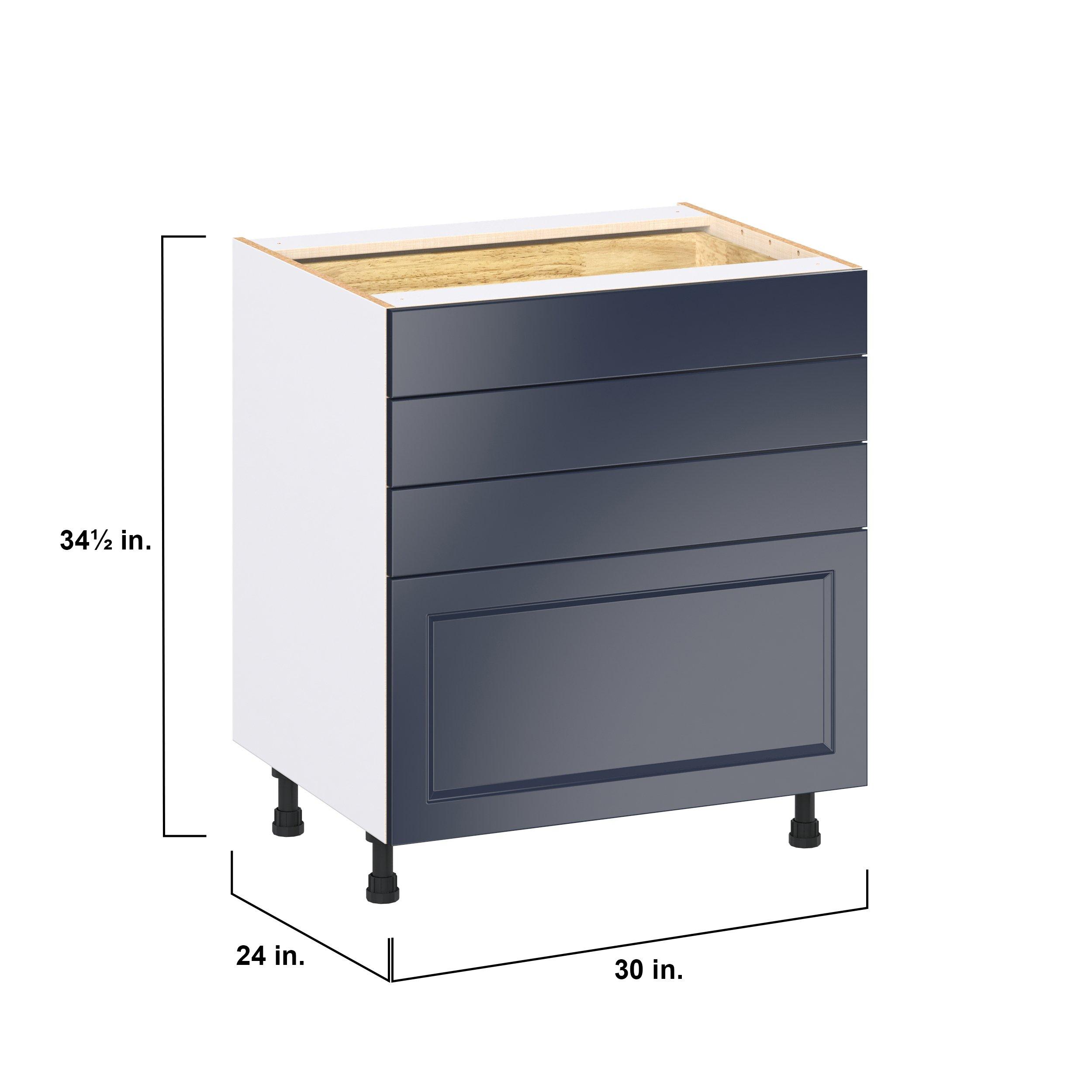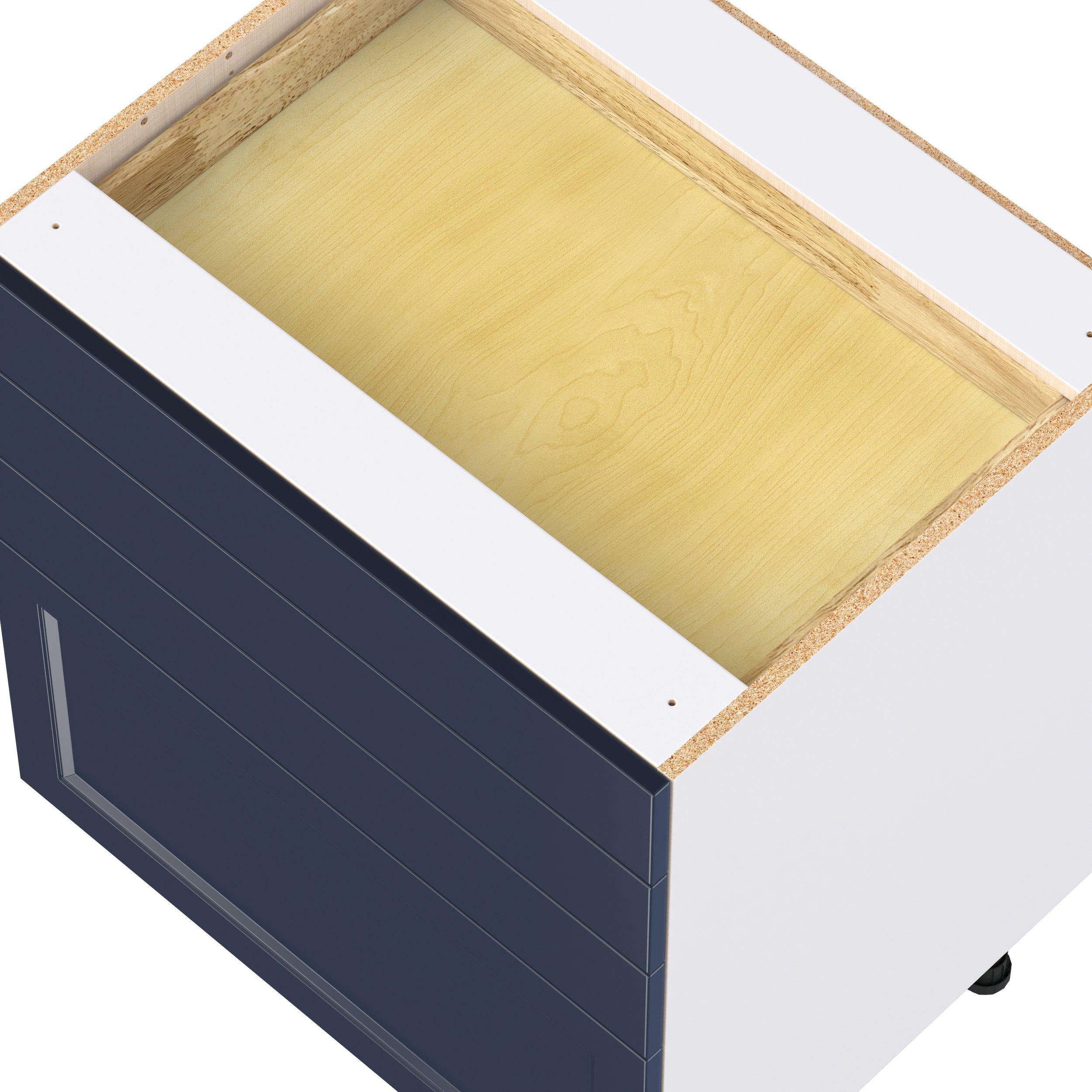Make a statement with Peachtree premium painted shaker-inspired cabinets, offering both style and durability for years to come. Available in classic bright white and rich midnight blue, this collection is designed to fit seamlessly into both modern and transitional interiors. Crafted from one-piece MDF Studio Design Collection Peachtree 30 in. Painted Midnight Blue Drawer Base Cabinet is designed to resist hairline cracks while the easy-to-clean finish stands up to stains and moisture. Featuring 5-piece doors and dovetail drawer joints, these cabinets offer durability and elegance. This collection combines style with everyday storage solutions.