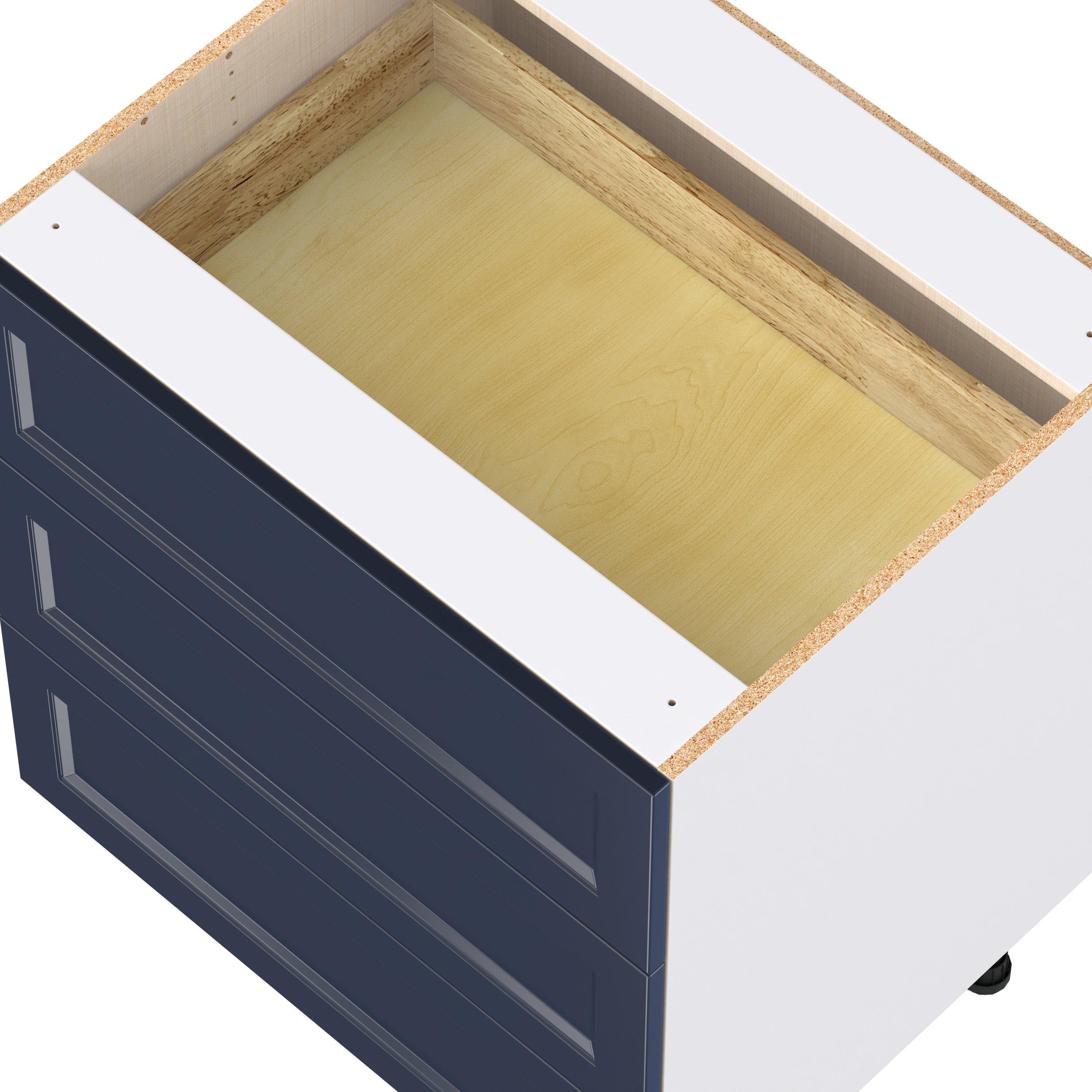 Make a statement with Peachtree premium painted shaker-inspired cabinets, offering both style and durability for years to come. Available in classic bright white and rich midnight blue, this collection is designed to fit seamlessly into both modern and transitional interiors. Crafted from one-piece MDF Studio Design Collection Peachtree 30 in. Painted Midnight Blue Drawer Base Cabinet is designed to resist hairline cracks while the easy-to-clean finish stands up to stains and moisture. Featuring 5-piece doors and dovetail drawer joints, these cabinets offer durability and elegance. This collection combines style with everyday storage solutions.