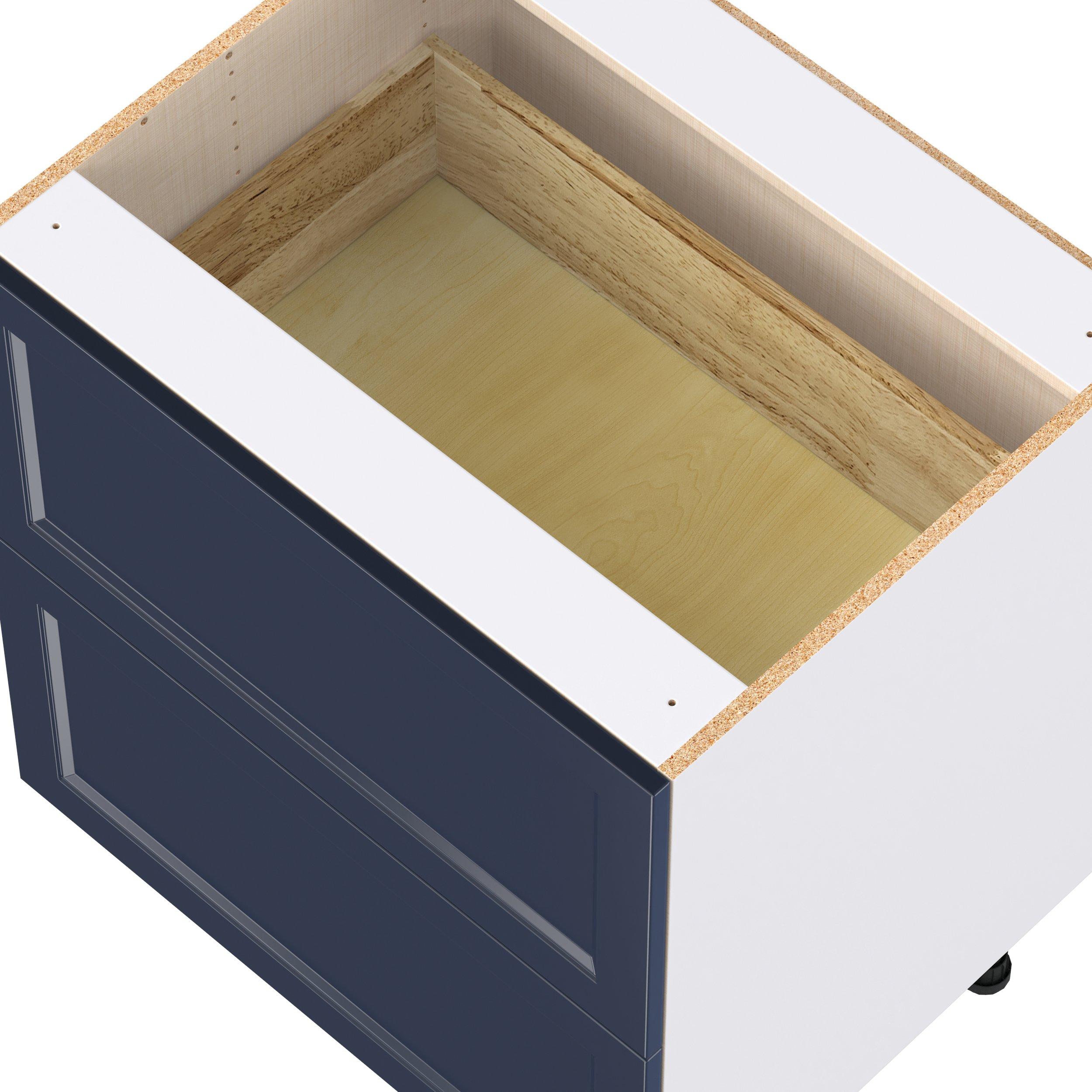 Make a statement with Peachtree premium painted shaker-inspired cabinets, offering both style and durability for years to come. Available in classic bright white and rich midnight blue, this collection is designed to fit seamlessly into both modern and transitional interiors. Crafted from one-piece MDF Studio Design Collection Peachtree 30 in. Painted Midnight Blue Drawer Base Cabinet is designed to resist hairline cracks while the easy-to-clean finish stands up to stains and moisture. Featuring 5-piece doors and dovetail drawer joints, these cabinets offer durability and elegance. This collection combines style with everyday storage solutions.