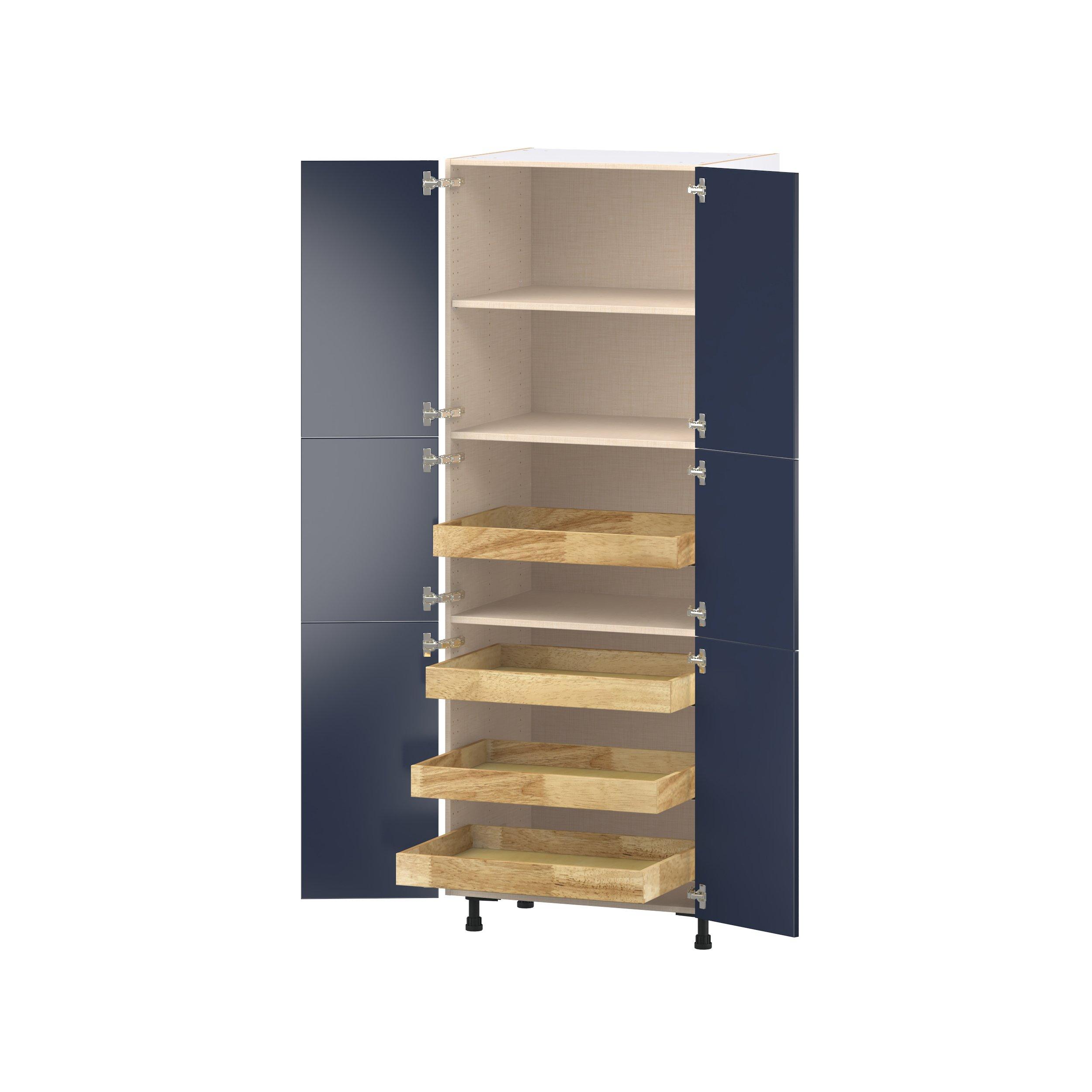 Make a statement with Peachtree premium painted shaker-inspired cabinets, offering both style and durability for years to come. Available in classic bright white and rich midnight blue, this collection is designed to fit seamlessly into both modern and transitional interiors. Crafted from one-piece MDF Studio Design Collection Peachtree 30 in. Painted Midnight Blue Pantry Cabinet with Inner Pull-Out Drawer is designed to resist hairline cracks while the easy-to-clean finish stands up to stains and moisture. Featuring 5-piece doors and dovetail drawer joints, these cabinets offer durability and elegance. This collection combines style with everyday storage solutions.