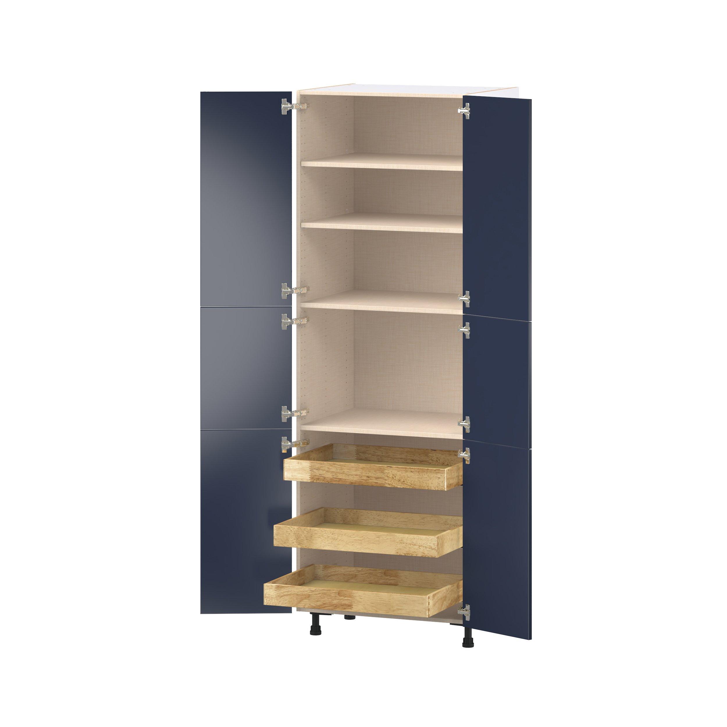 Make a statement with Peachtree premium painted shaker-inspired cabinets, offering both style and durability for years to come. Available in classic bright white and rich midnight blue, this collection is designed to fit seamlessly into both modern and transitional interiors. Crafted from one-piece MDF Studio Design Collection Peachtree 30 in. Painted Midnight Blue Pantry Cabinet with Inner Pull-Out Drawer is designed to resist hairline cracks while the easy-to-clean finish stands up to stains and moisture. Featuring 5-piece doors and dovetail drawer joints, these cabinets offer durability and elegance. This collection combines style with everyday storage solutions.