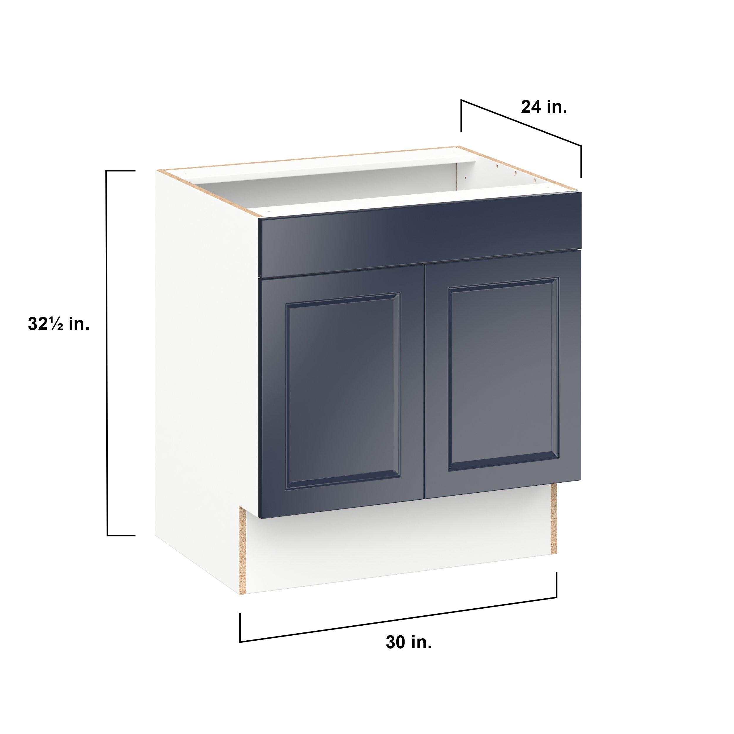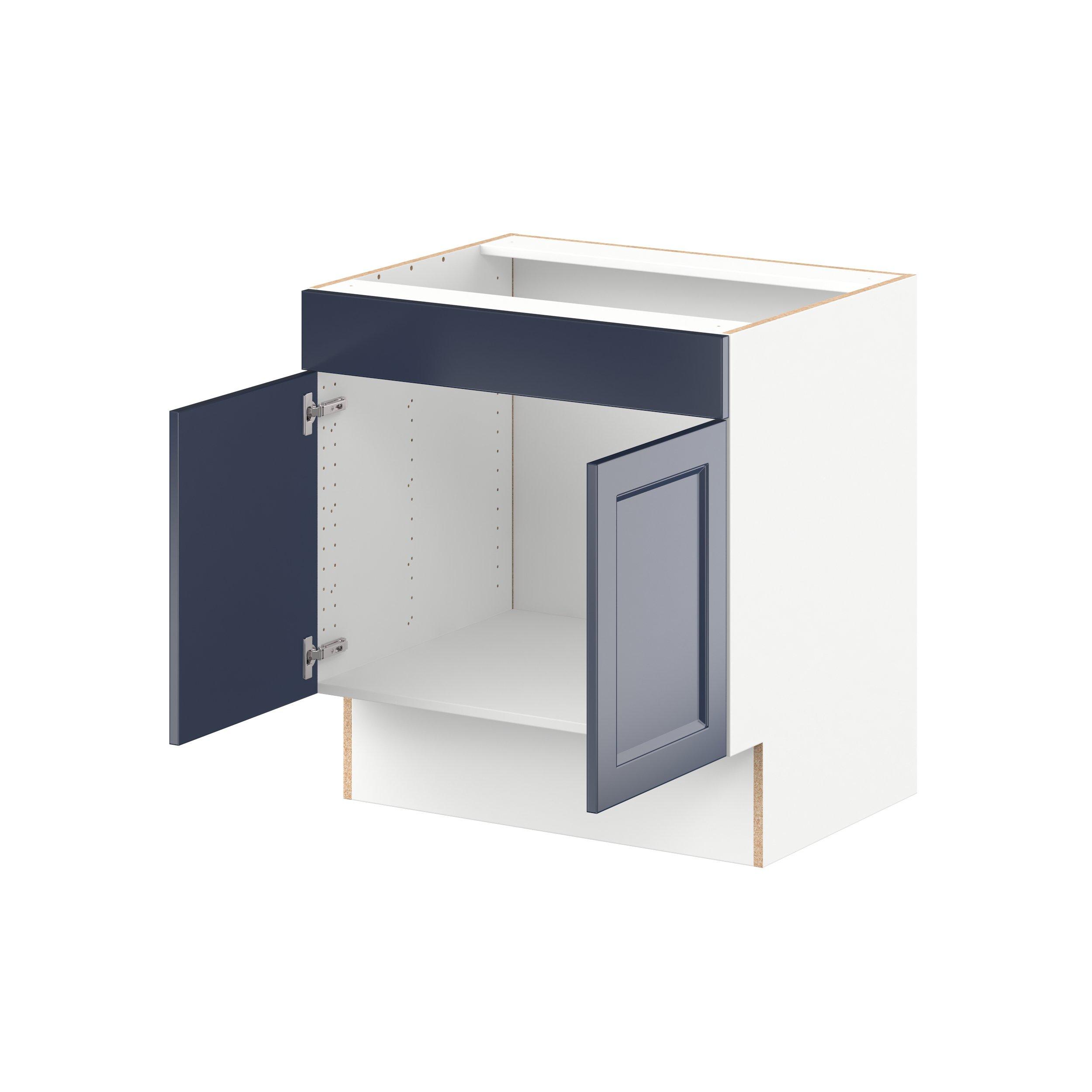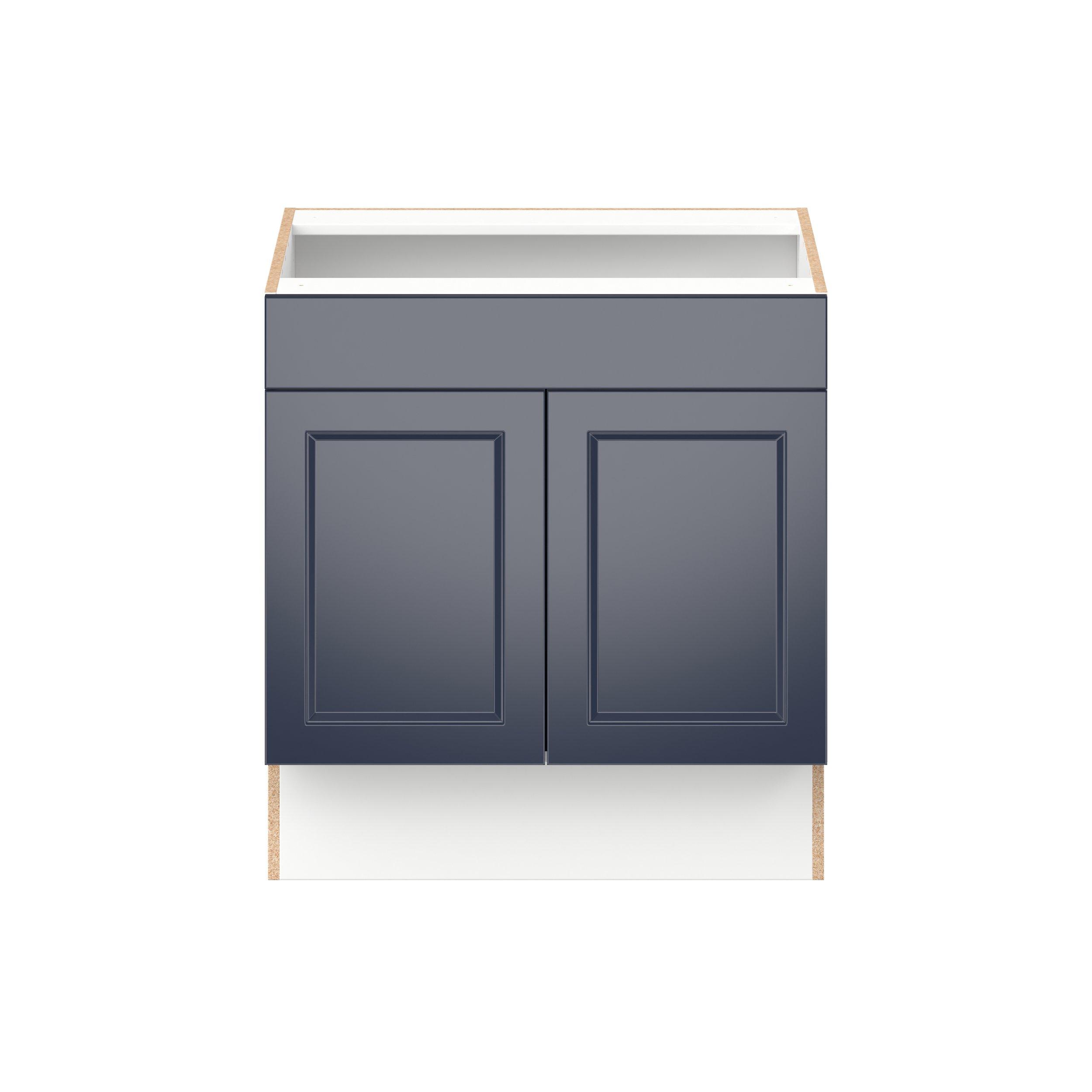 Make a statement with Peachtree premium painted shaker-inspired cabinets, offering both style and durability for years to come. Available in classic bright white and rich midnight blue, this collection is designed to fit seamlessly into both modern and transitional interiors. Crafted from one-piece MDF Studio Design Collection Peachtree 30 in. Painted Midnight Blue Sink Base Cabinet with False Front is designed to resist hairline cracks while the easy-to-clean finish stands up to stains and moisture. Featuring 5-piece doors and dovetail drawer joints, these cabinets offer durability and elegance. This collection combines style with everyday storage solutions.