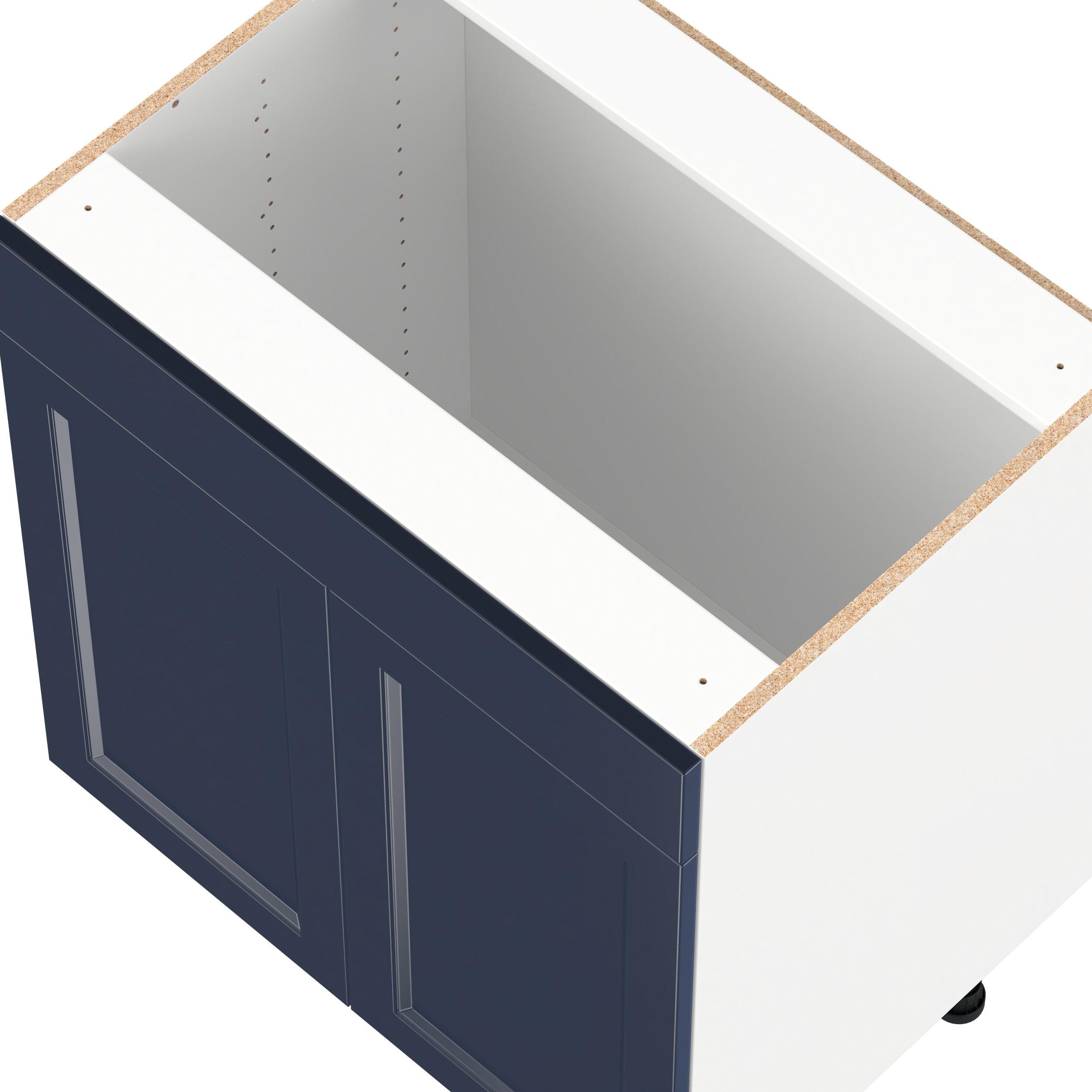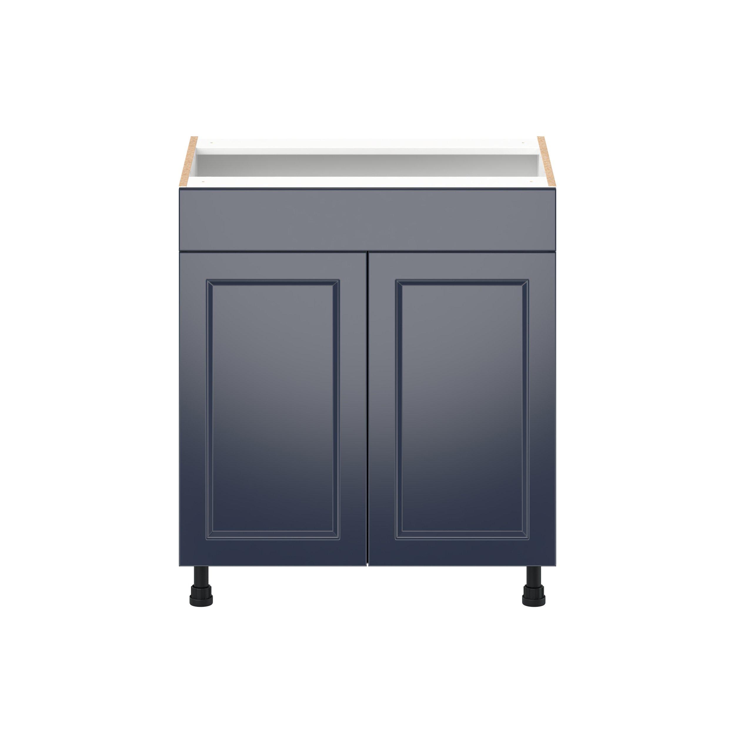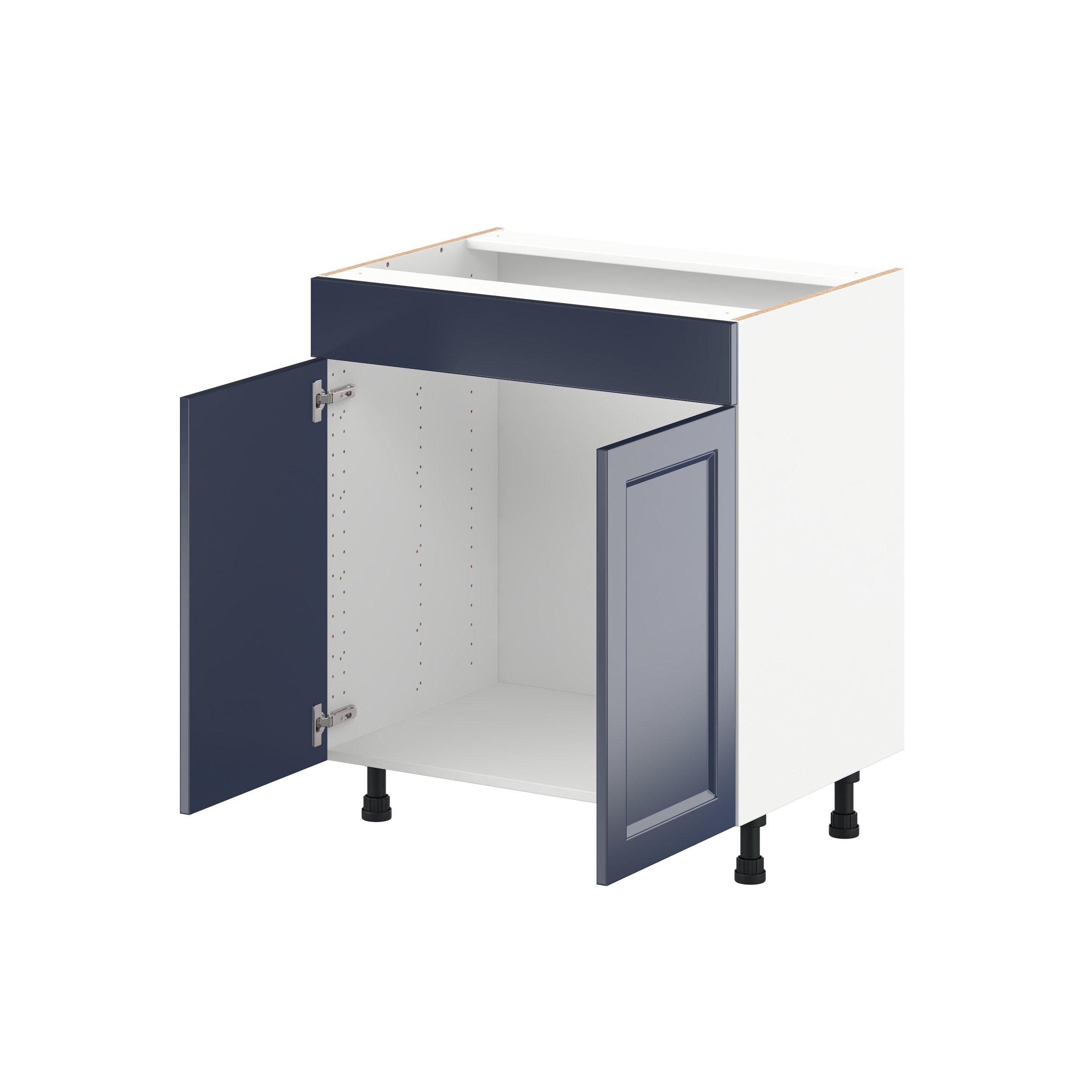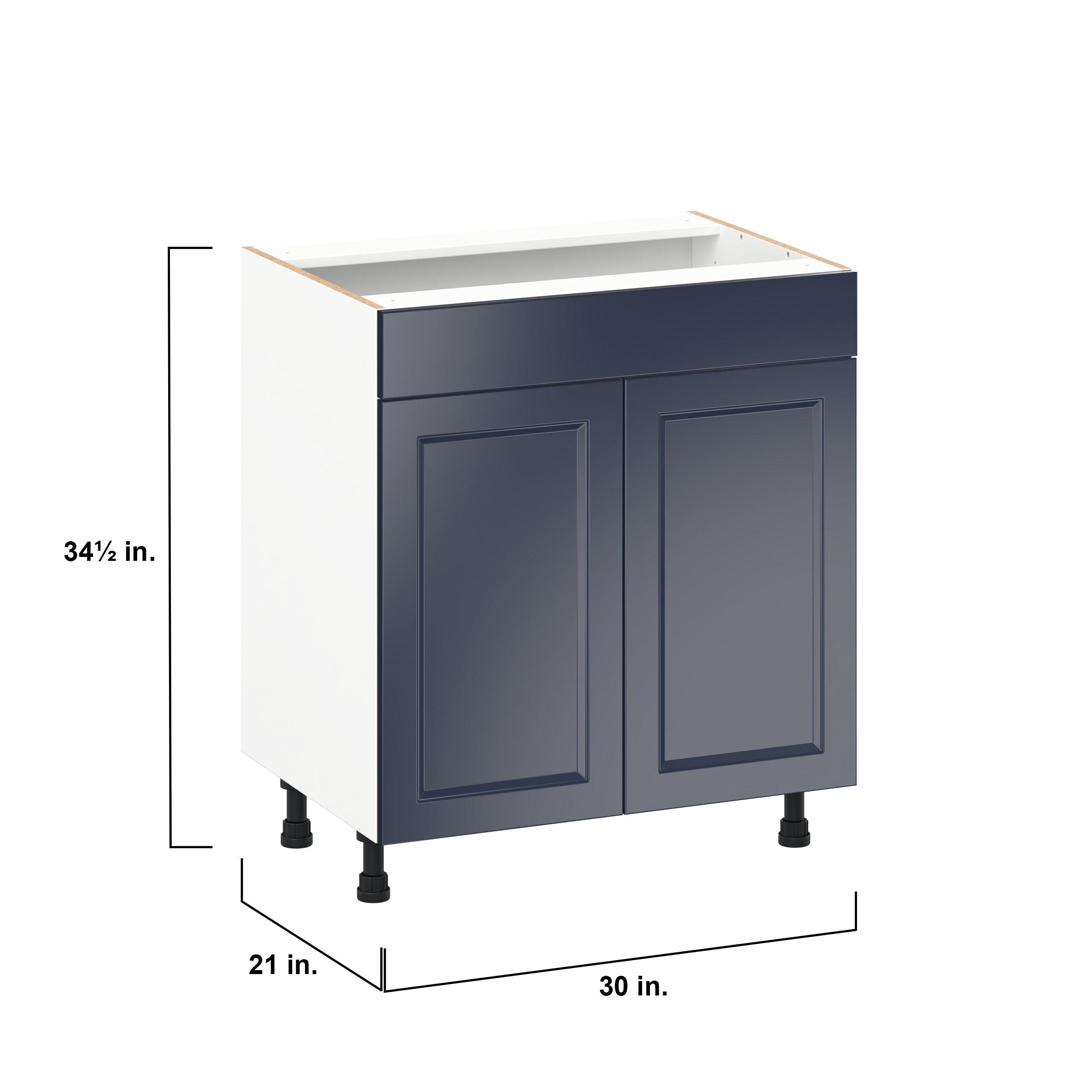Make a statement with Peachtree premium painted shaker-inspired cabinets, offering both style and durability for years to come. Available in classic bright white and rich midnight blue, this collection is designed to fit seamlessly into both modern and transitional interiors. Crafted from one-piece MDF Studio Design Collection Peachtree 30 in. Painted Midnight Blue Vanity Sink Base Cabinet with False Front is designed to resist hairline cracks while the easy-to-clean finish stands up to stains and moisture. Featuring 5-piece doors and dovetail drawer joints, these cabinets offer durability and elegance. This collection combines style with everyday storage solutions.