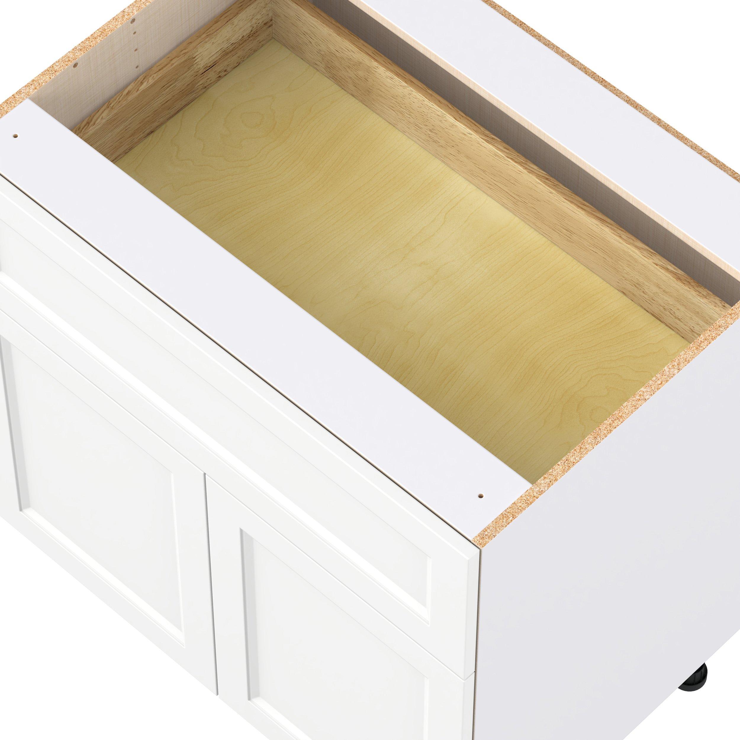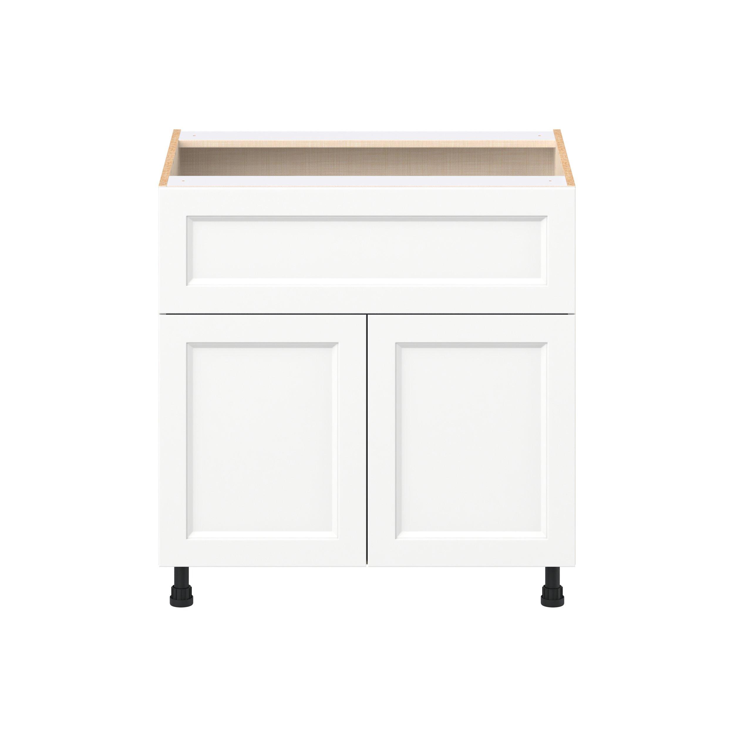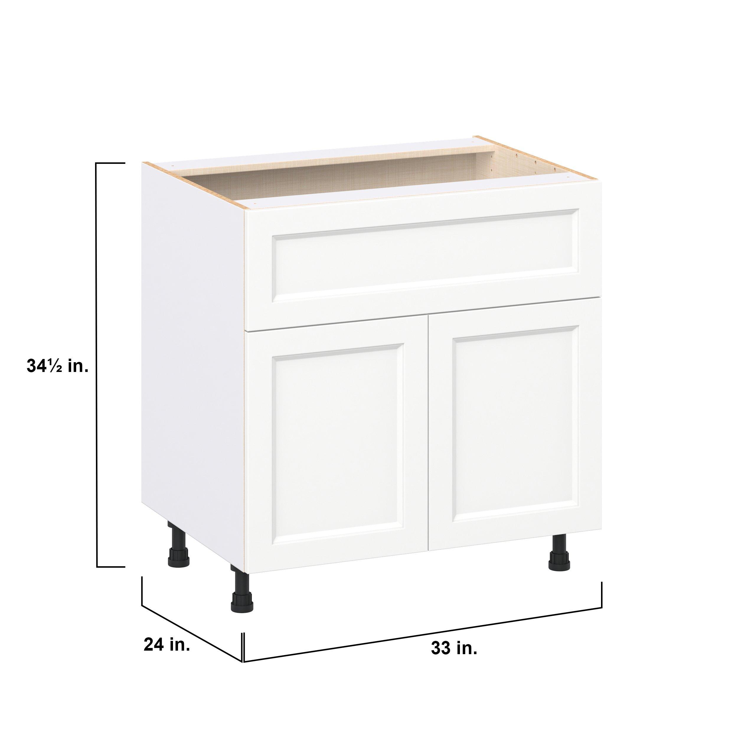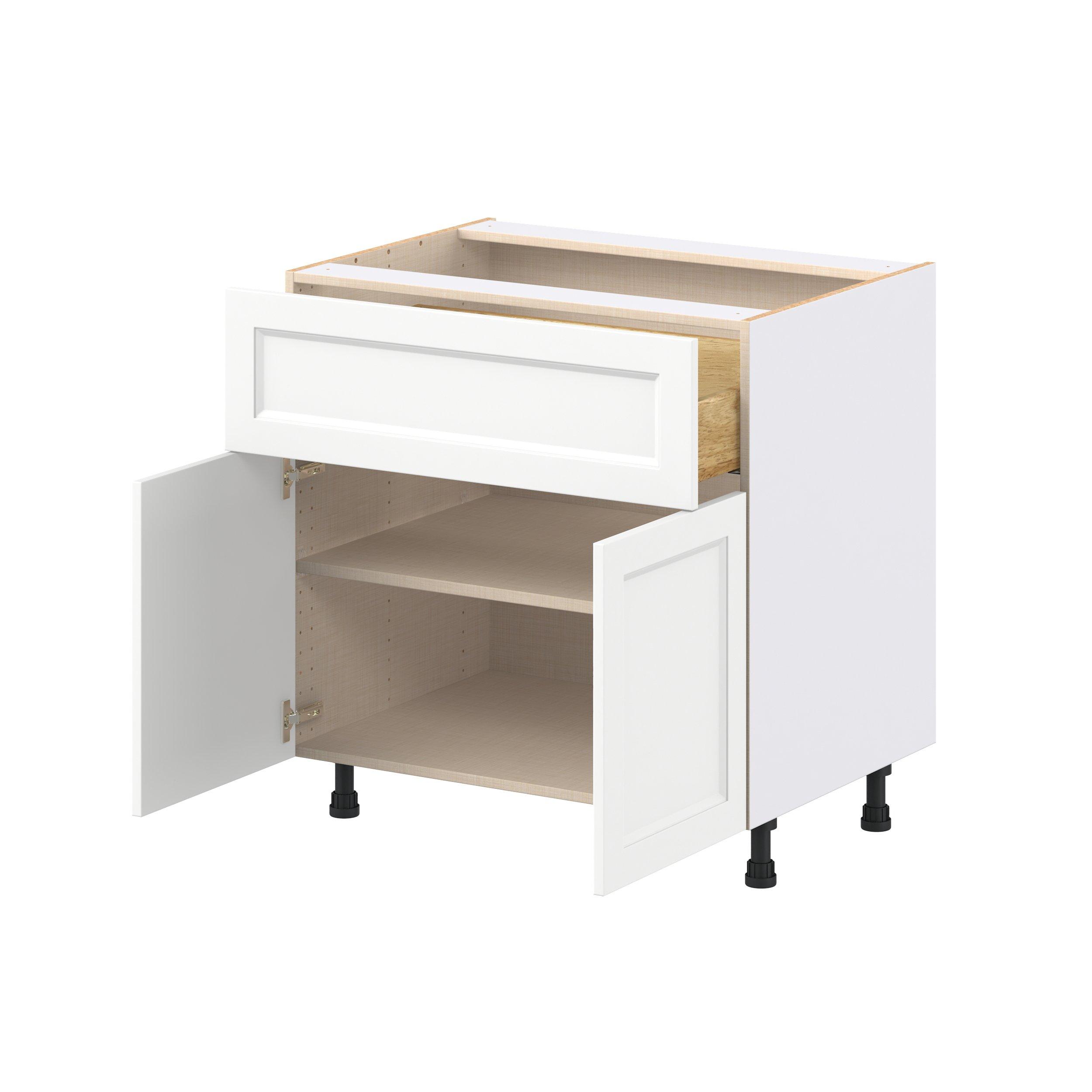 Make a statement with Peachtree premium painted shaker-inspired cabinets, offering both style and durability for years to come. Available in classic bright white and rich midnight blue, this collection is designed to fit seamlessly into both modern and transitional interiors. Crafted from one-piece MDF Studio Design Collection Peachtree 33 in. Painted Bright White Door and Drawer Base Cabinet is designed to resist hairline cracks while the easy-to-clean finish stands up to stains and moisture. Featuring 5-piece doors and dovetail drawer joints, these cabinets offer durability and elegance. This collection combines style with everyday storage solutions.