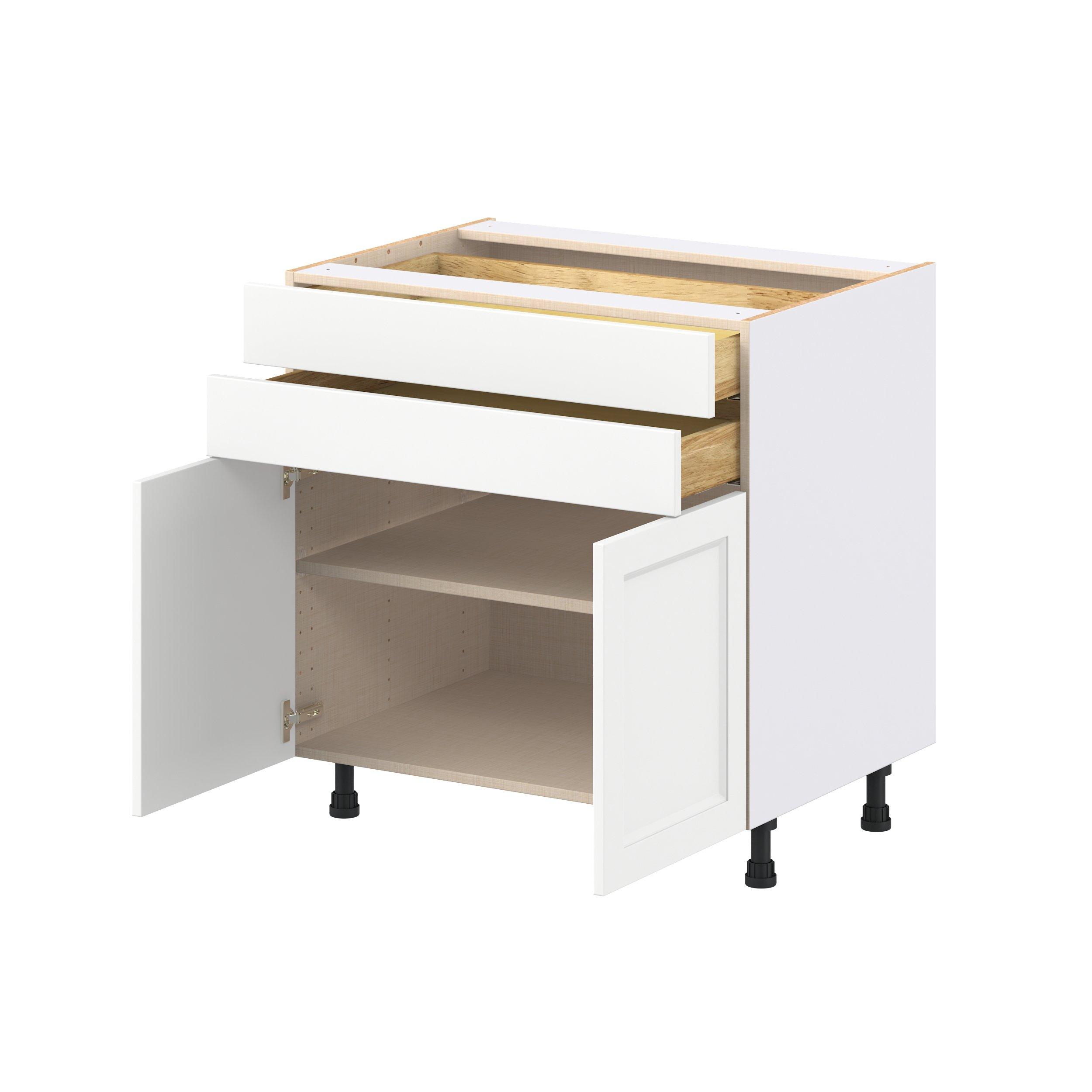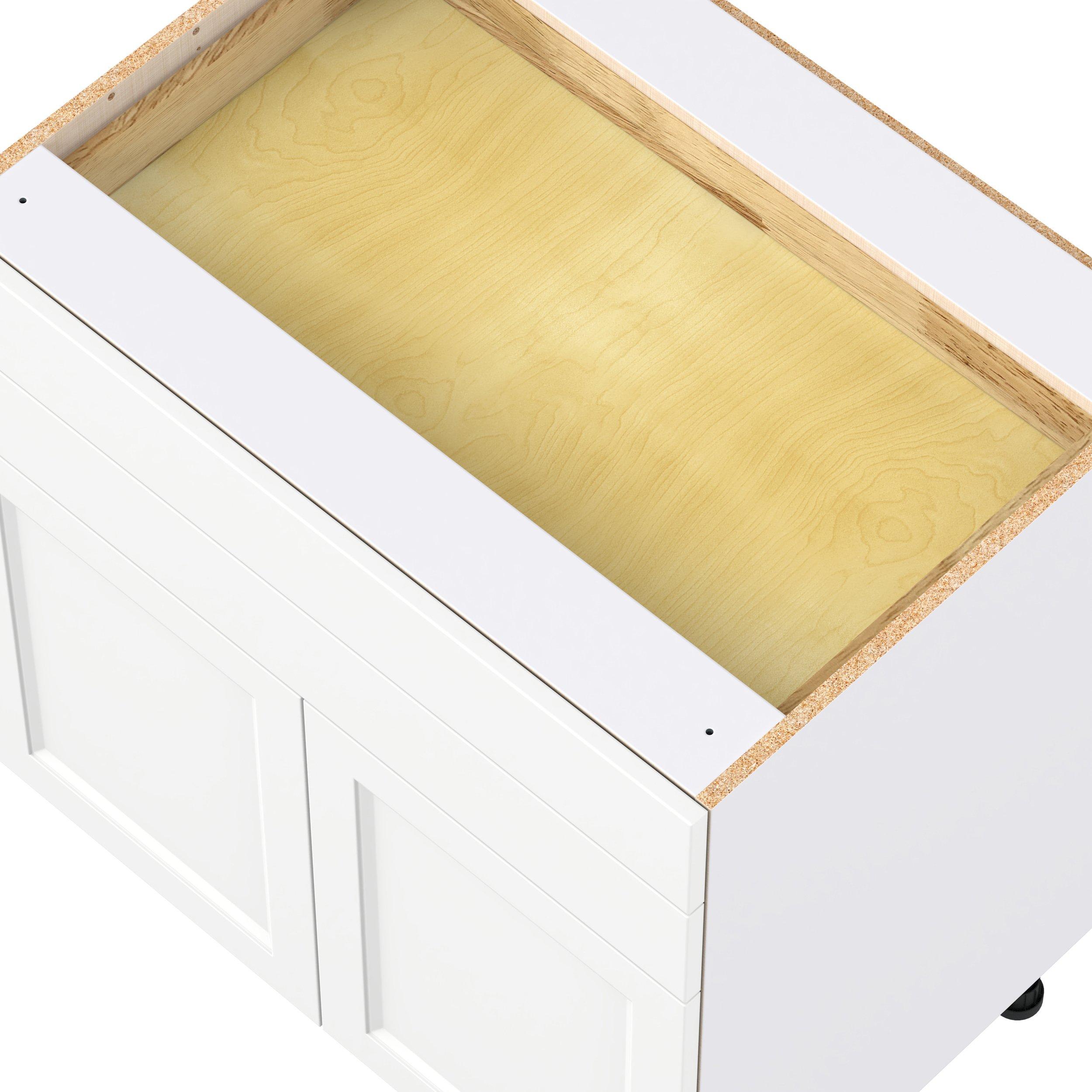 Make a statement with Peachtree premium painted shaker-inspired cabinets, offering both style and durability for years to come. Available in classic bright white and rich midnight blue, this collection is designed to fit seamlessly into both modern and transitional interiors. Crafted from one-piece MDF Studio Design Collection Peachtree 33 in. Painted Bright White Door and Drawer Base Cabinet is designed to resist hairline cracks while the easy-to-clean finish stands up to stains and moisture. Featuring 5-piece doors and dovetail drawer joints, these cabinets offer durability and elegance. This collection combines style with everyday storage solutions.