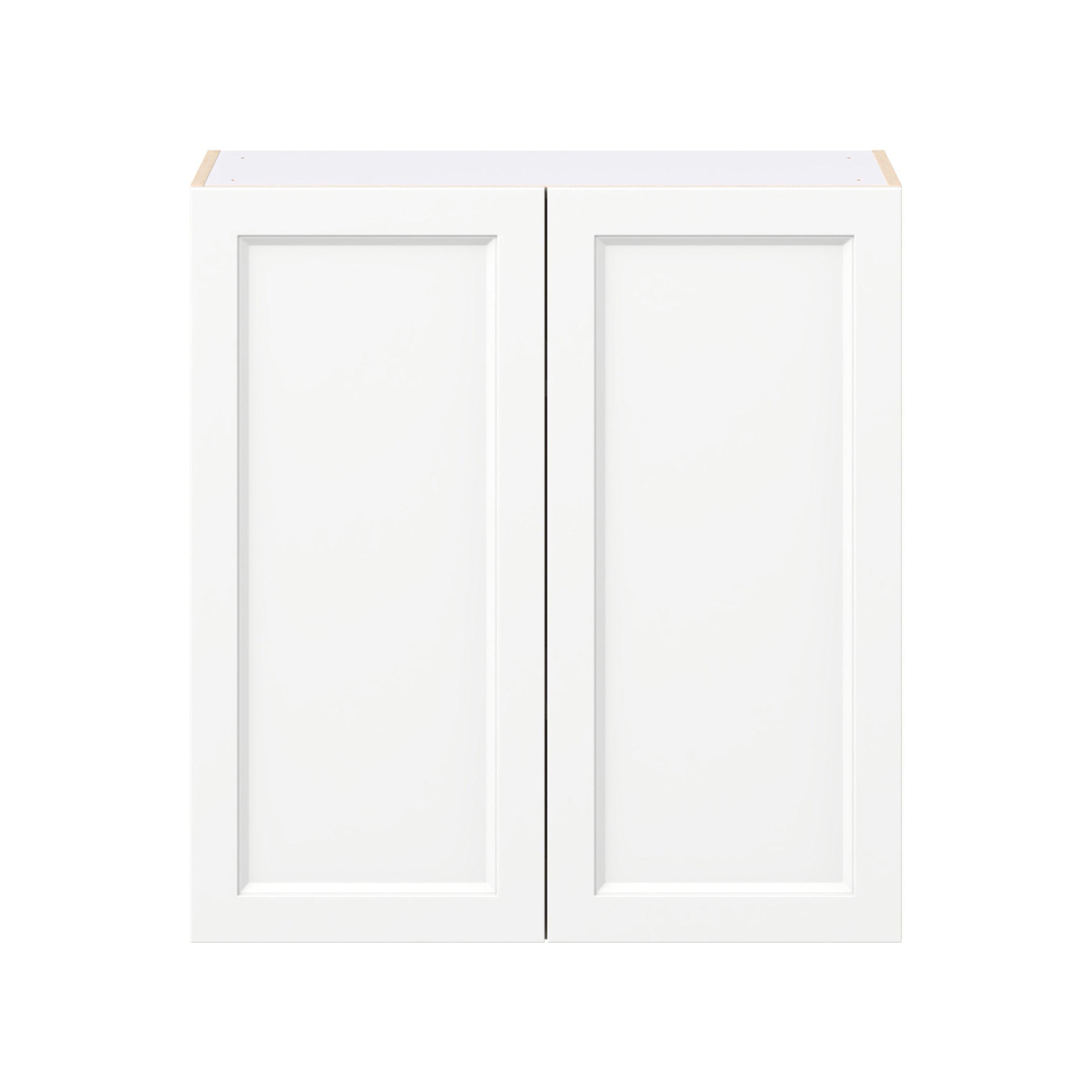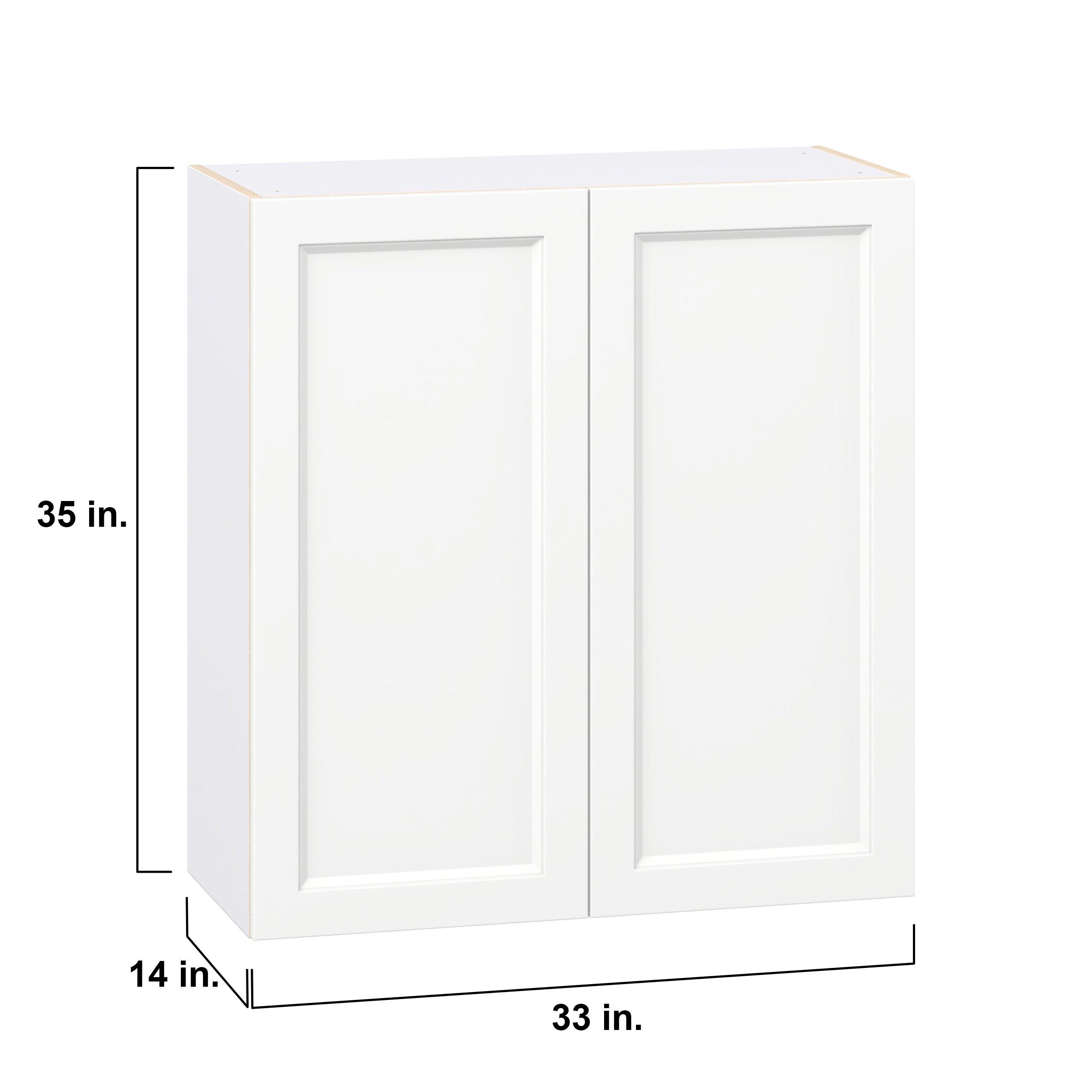 Make a statement with Peachtree premium painted shaker-inspired cabinets, offering both style and durability for years to come. Available in classic bright white and rich midnight blue, this collection is designed to fit seamlessly into both modern and transitional interiors. Crafted from one-piece MDF Studio Design Collection Peachtree 33 in. Painted Bright White Door Wall Cabinet is designed to resist hairline cracks while the easy-to-clean finish stands up to stains and moisture. Featuring 5-piece doors and dovetail drawer joints, these cabinets offer durability and elegance. This collection combines style with everyday storage solutions.
