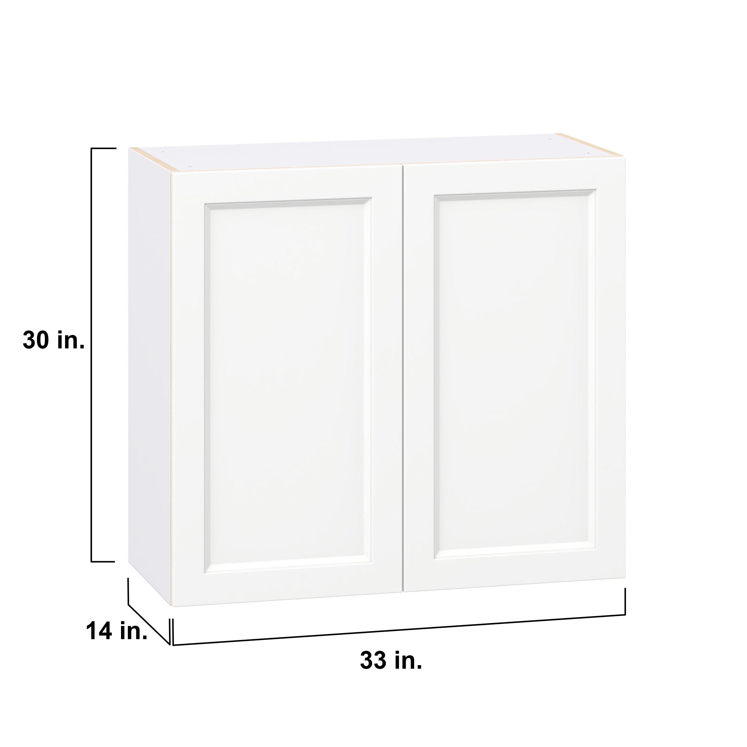 Make a statement with Peachtree premium painted shaker-inspired cabinets, offering both style and durability for years to come. Available in classic bright white and rich midnight blue, this collection is designed to fit seamlessly into both modern and transitional interiors. Crafted from one-piece MDF Studio Design Collection Peachtree 33 in. Painted Bright White Door Wall Cabinet is designed to resist hairline cracks while the easy-to-clean finish stands up to stains and moisture. Featuring 5-piece doors and dovetail drawer joints, these cabinets offer durability and elegance. This collection combines style with everyday storage solutions.