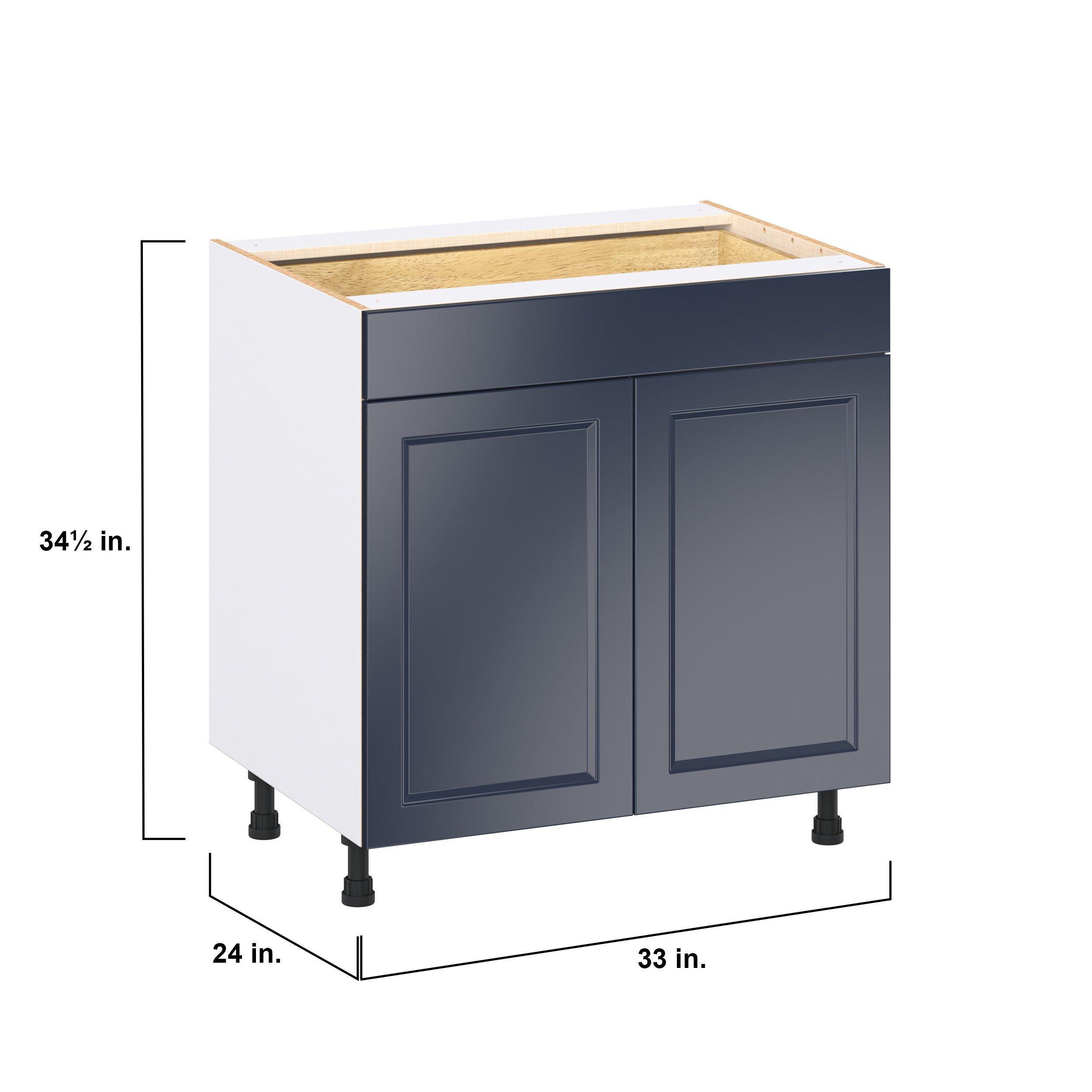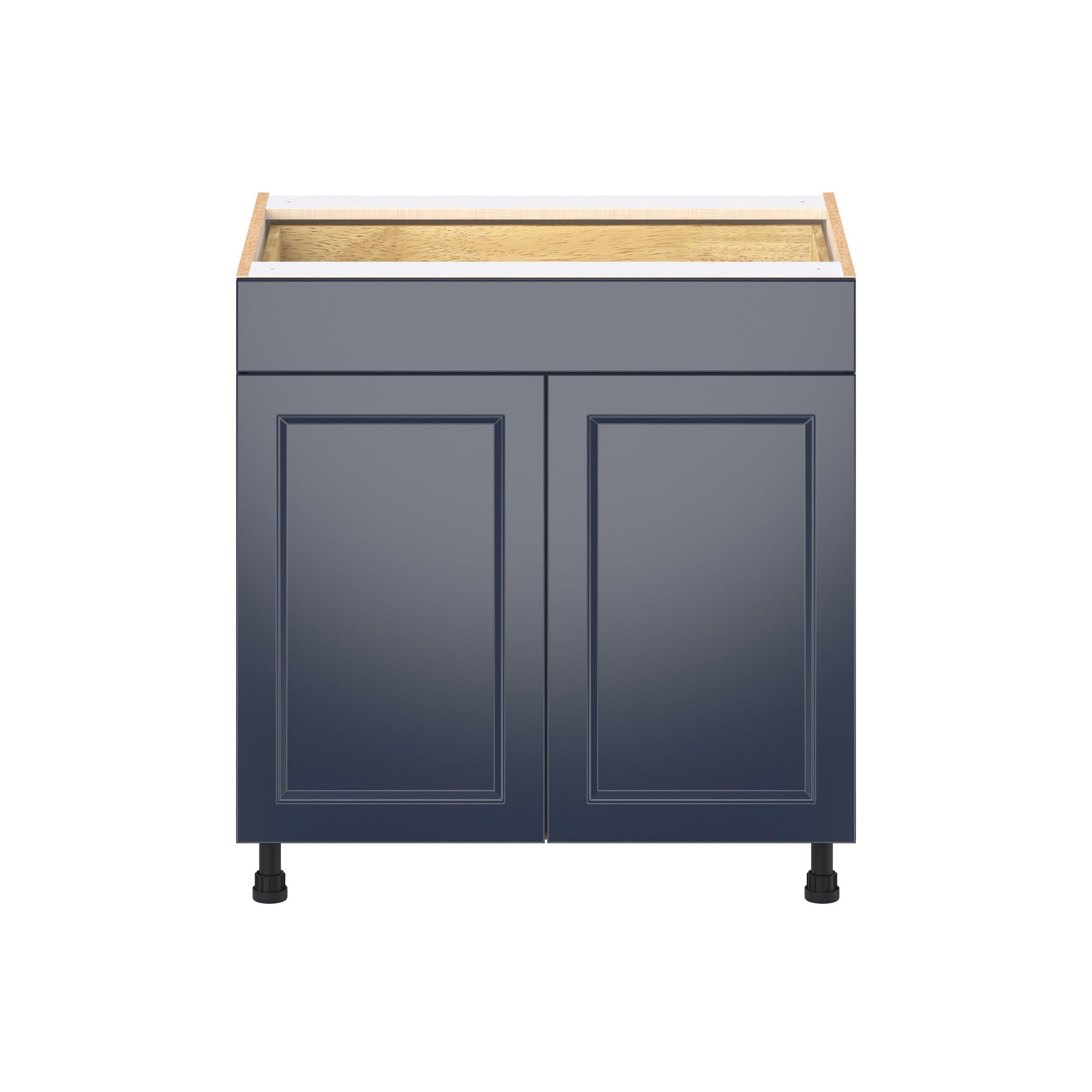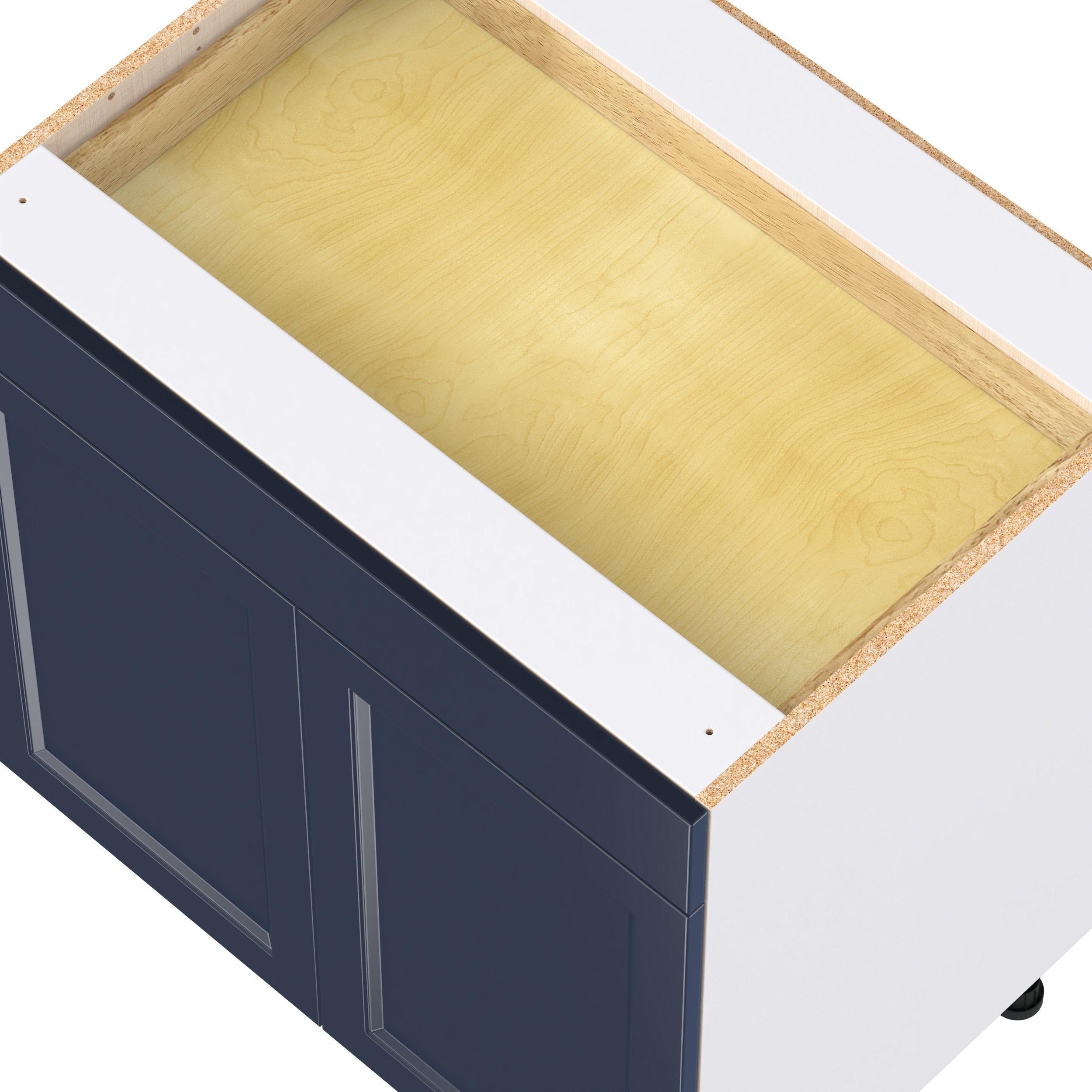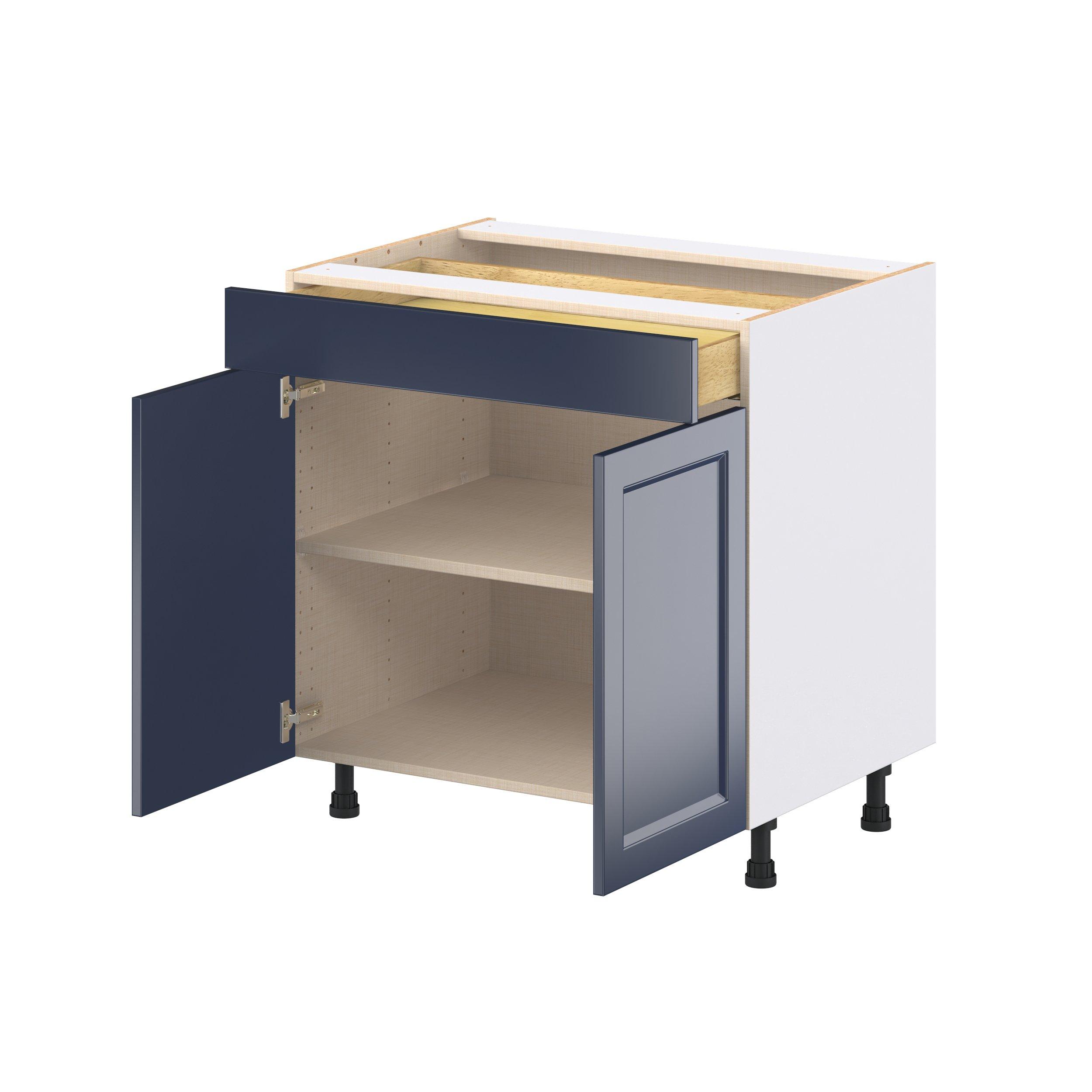 Make a statement with Peachtree premium painted shaker-inspired cabinets, offering both style and durability for years to come. Available in classic bright white and rich midnight blue, this collection is designed to fit seamlessly into both modern and transitional interiors. Crafted from one-piece MDF Studio Design Collection Peachtree 33 in. Painted Midnight Blue Door and Drawer Base Cabinet is designed to resist hairline cracks while the easy-to-clean finish stands up to stains and moisture. Featuring 5-piece doors and dovetail drawer joints, these cabinets offer durability and elegance. This collection combines style with everyday storage solutions.