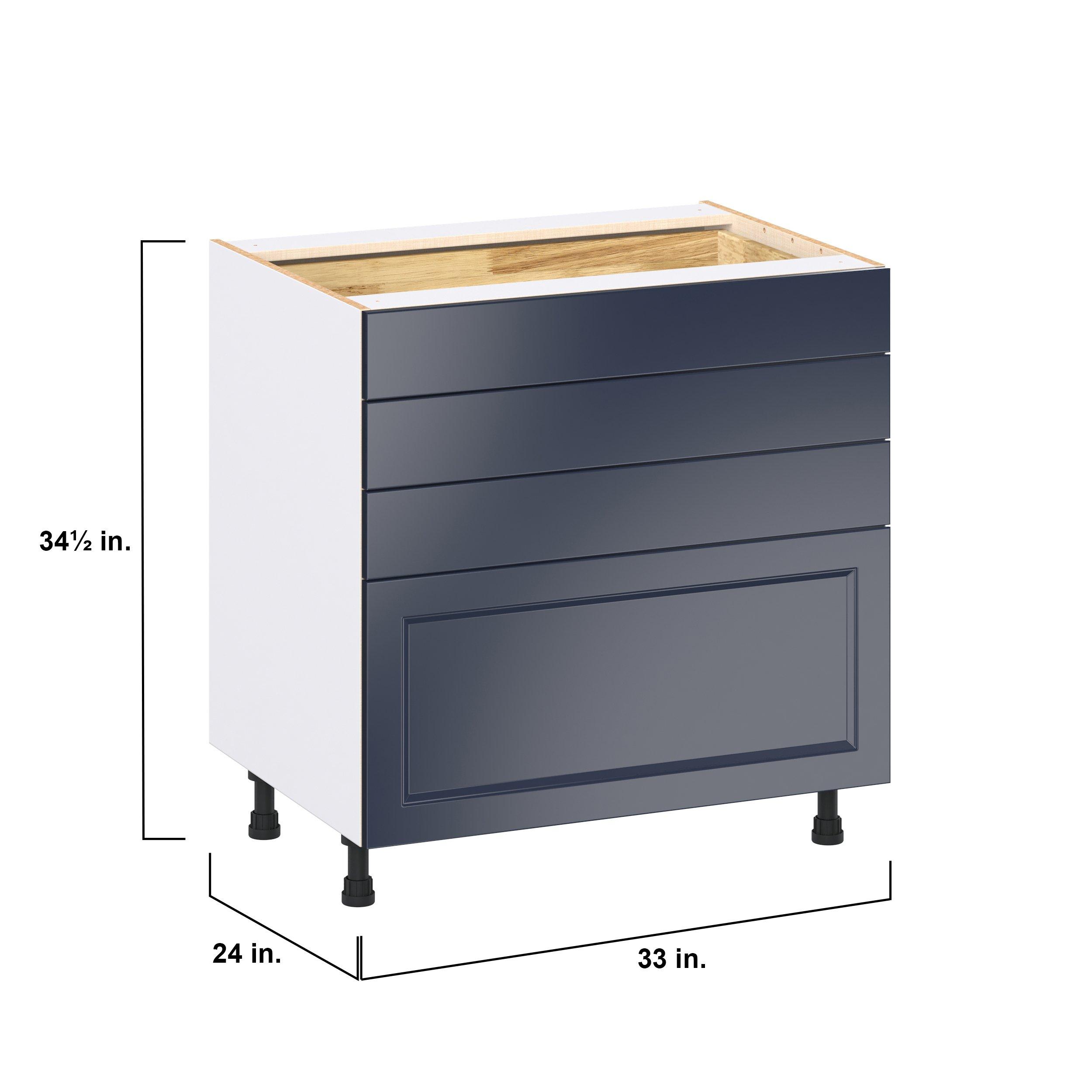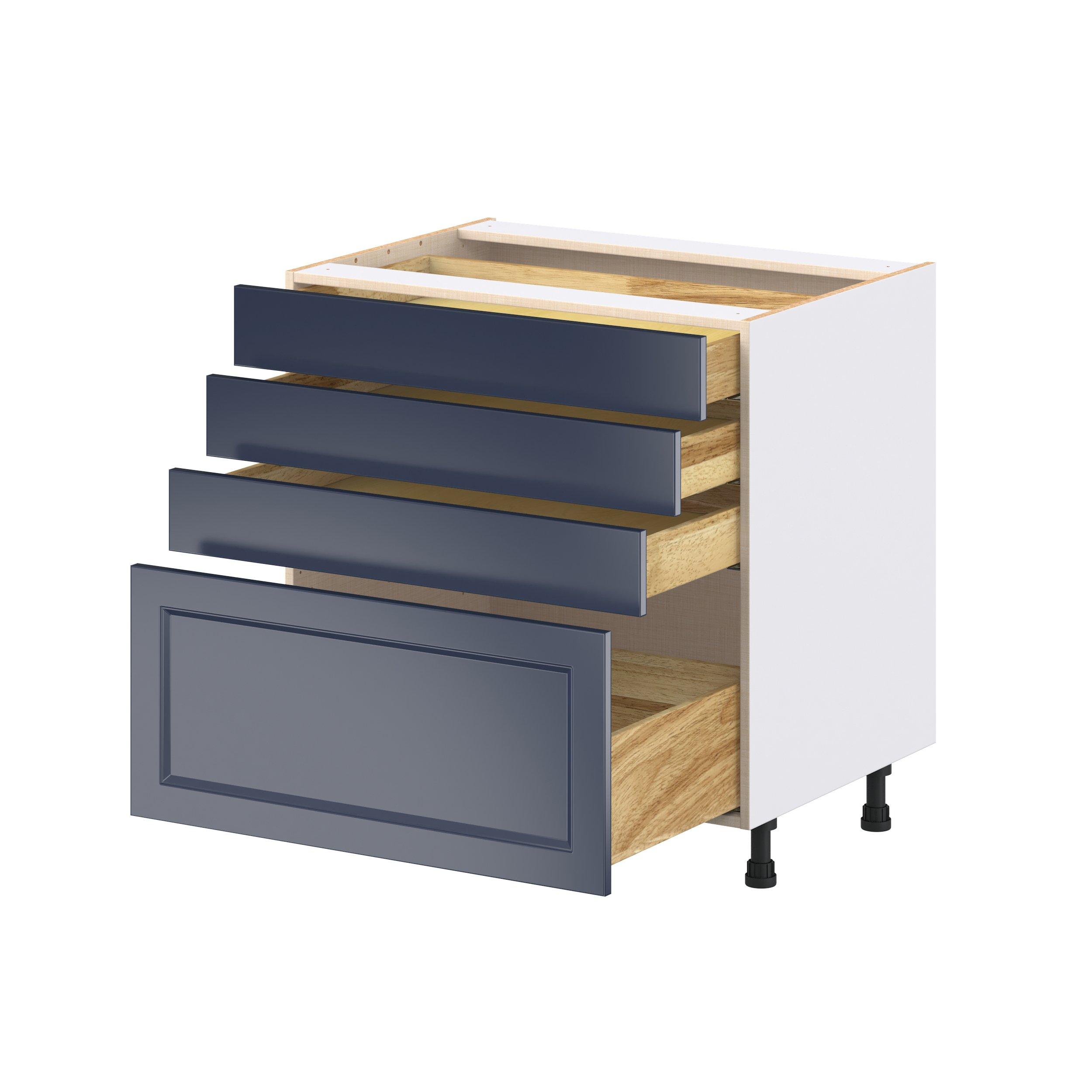 Make a statement with Peachtree premium painted shaker-inspired cabinets, offering both style and durability for years to come. Available in classic bright white and rich midnight blue, this collection is designed to fit seamlessly into both modern and transitional interiors. Crafted from one-piece MDF Studio Design Collection Peachtree 33 in. Painted Midnight Blue Drawer Base Cabinet is designed to resist hairline cracks while the easy-to-clean finish stands up to stains and moisture. Featuring 5-piece doors and dovetail drawer joints, these cabinets offer durability and elegance. This collection combines style with everyday storage solutions.