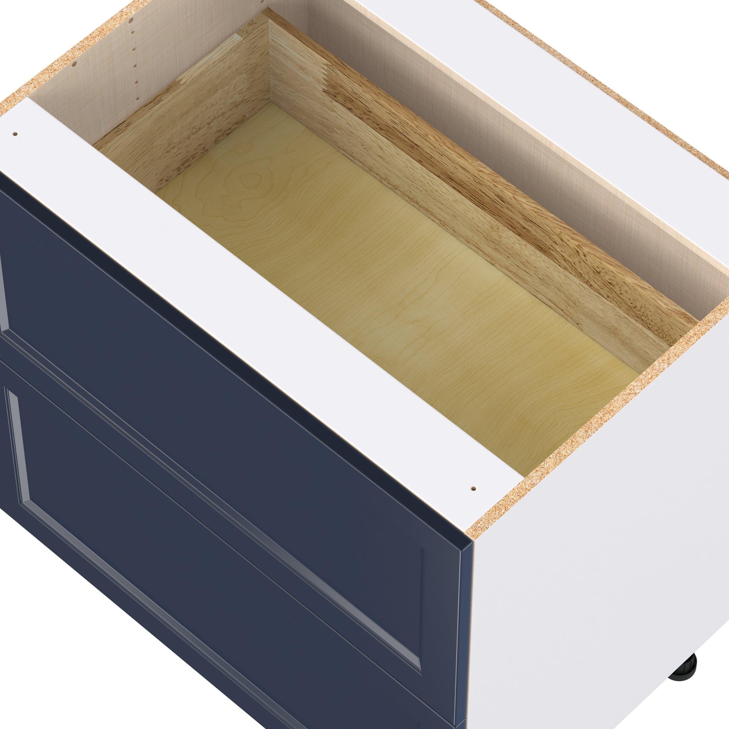 Make a statement with Peachtree premium painted shaker-inspired cabinets, offering both style and durability for years to come. Available in classic bright white and rich midnight blue, this collection is designed to fit seamlessly into both modern and transitional interiors. Crafted from one-piece MDF Studio Design Collection Peachtree 33 in. Painted Midnight Blue Drawer Base Cabinet is designed to resist hairline cracks while the easy-to-clean finish stands up to stains and moisture. Featuring 5-piece doors and dovetail drawer joints, these cabinets offer durability and elegance. This collection combines style with everyday storage solutions.