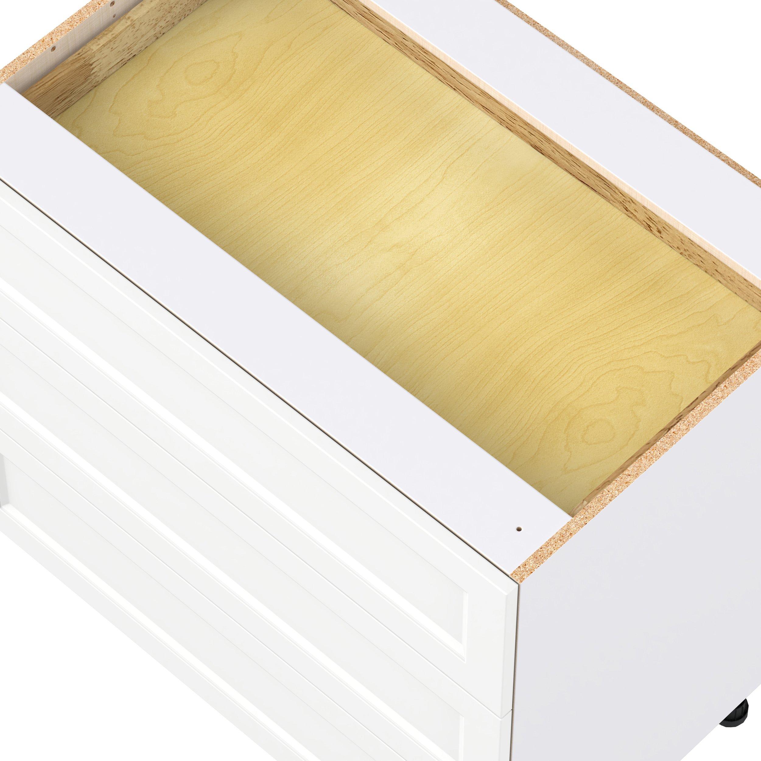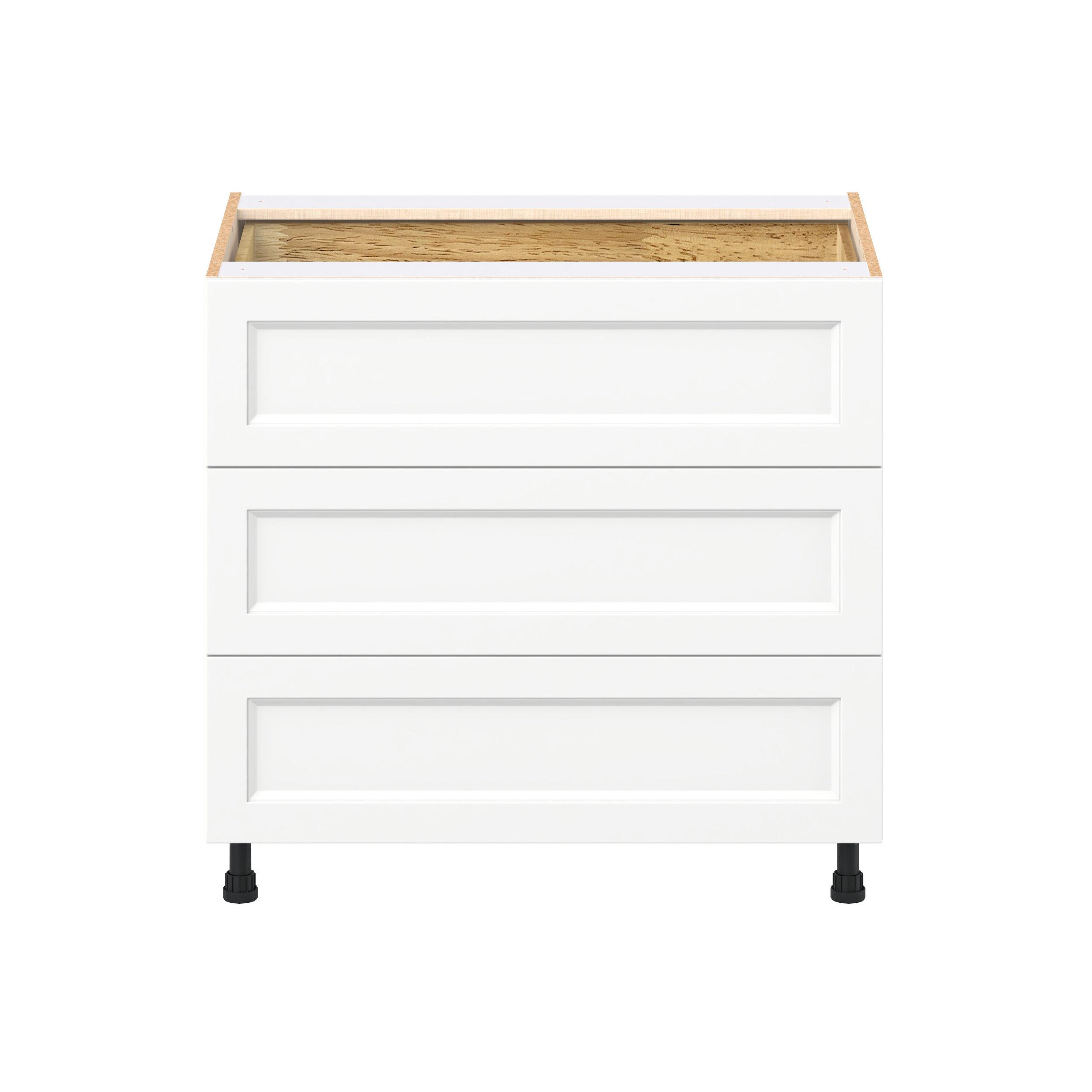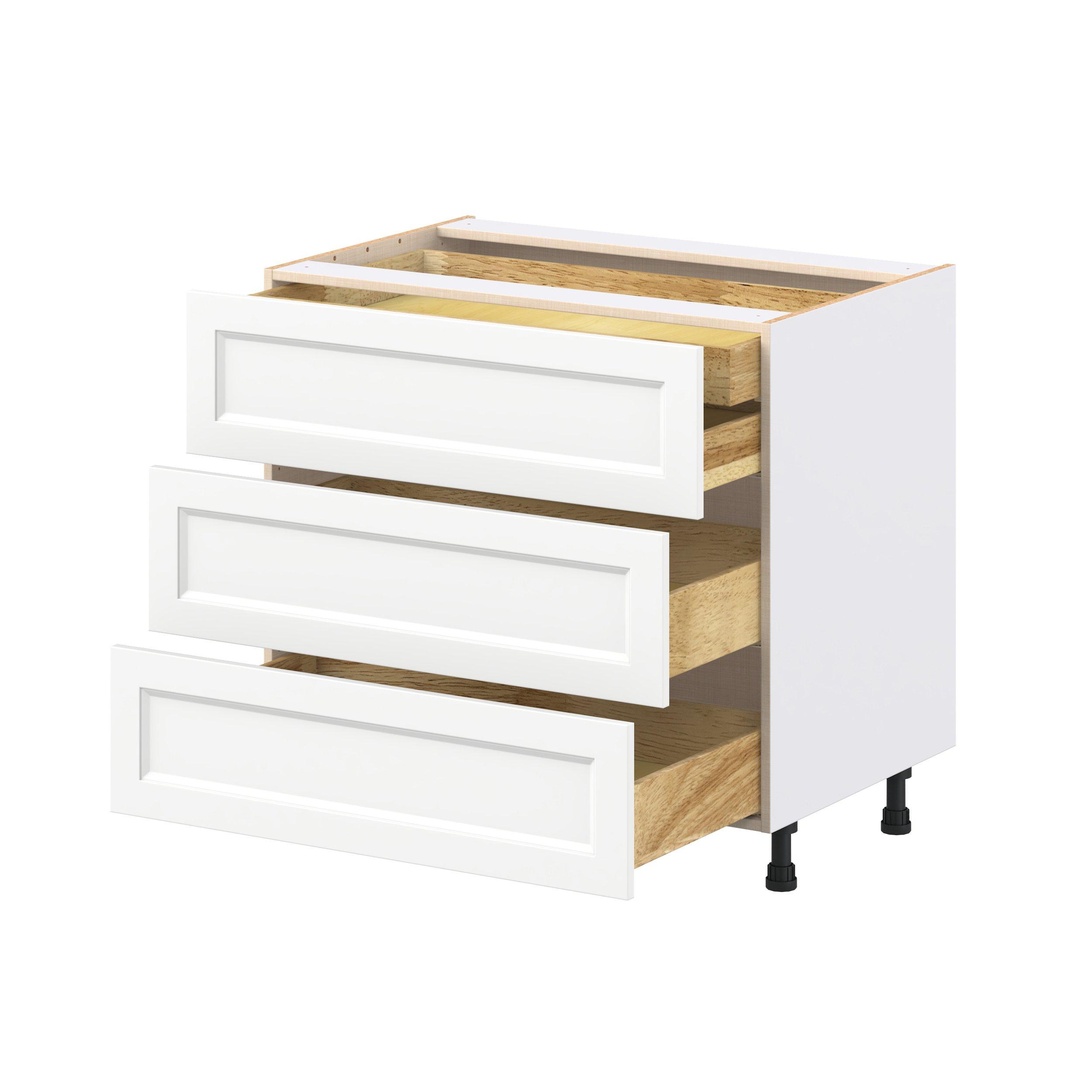 Make a statement with Peachtree premium painted shaker-inspired cabinets, offering both style and durability for years to come. Available in classic bright white and rich midnight blue, this collection is designed to fit seamlessly into both modern and transitional interiors. Crafted from one-piece MDF Studio Design Collection Peachtree 36 in. Painted Bright White Base Cabinet with Inner Pull-Out Drawer is designed to resist hairline cracks while the easy-to-clean finish stands up to stains and moisture. Featuring 5-piece doors and dovetail drawer joints, these cabinets offer durability and elegance. This collection combines style with everyday storage solutions.