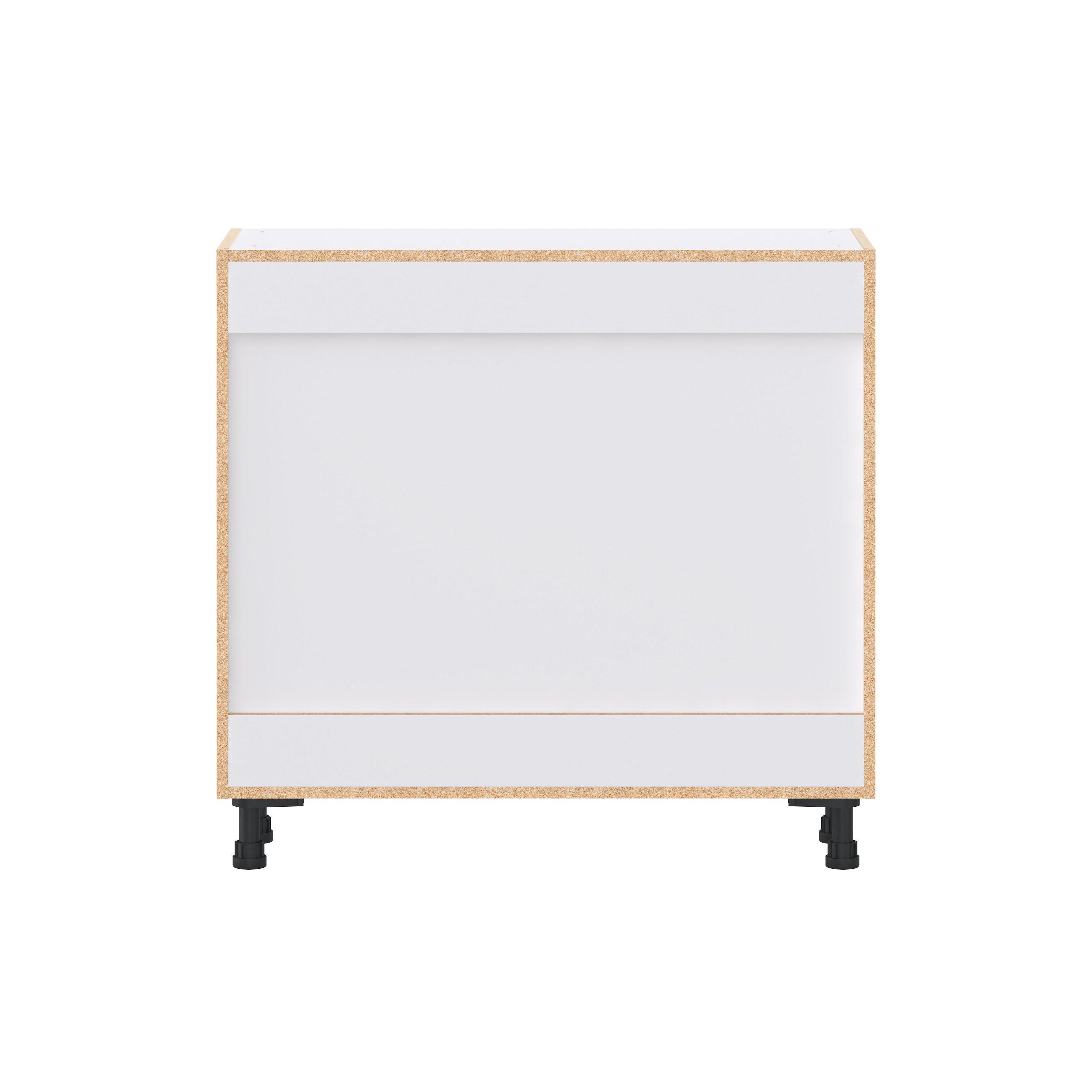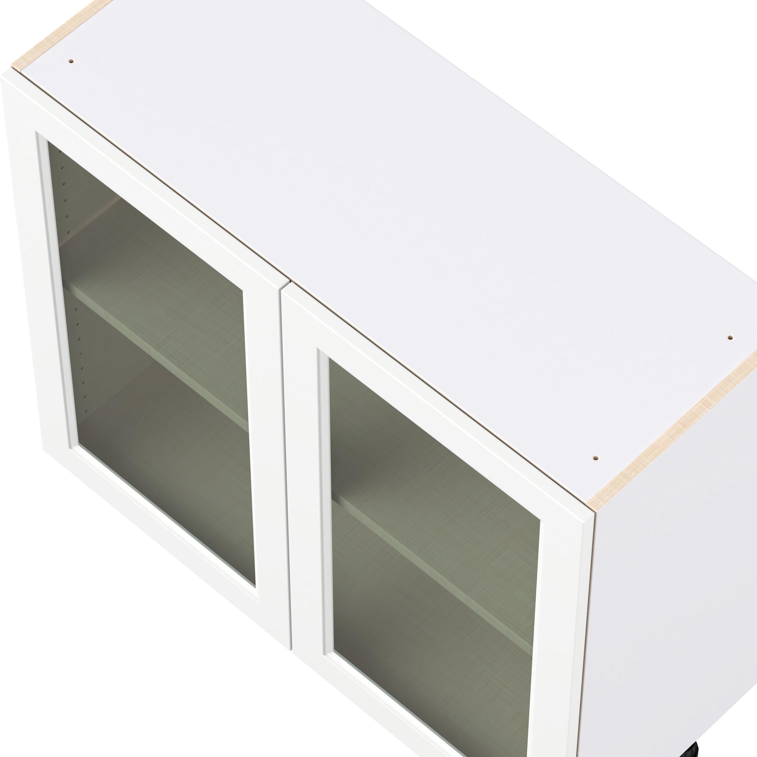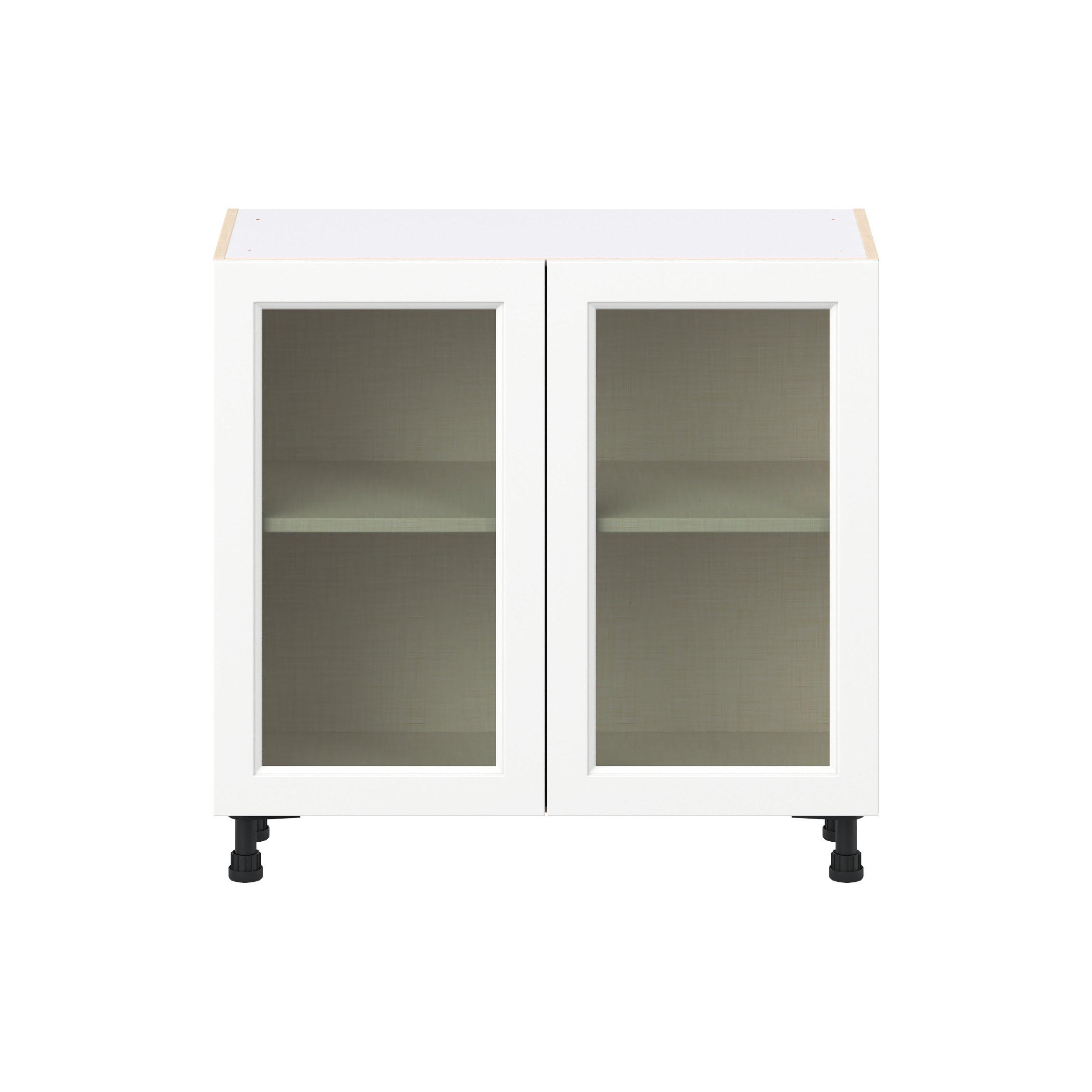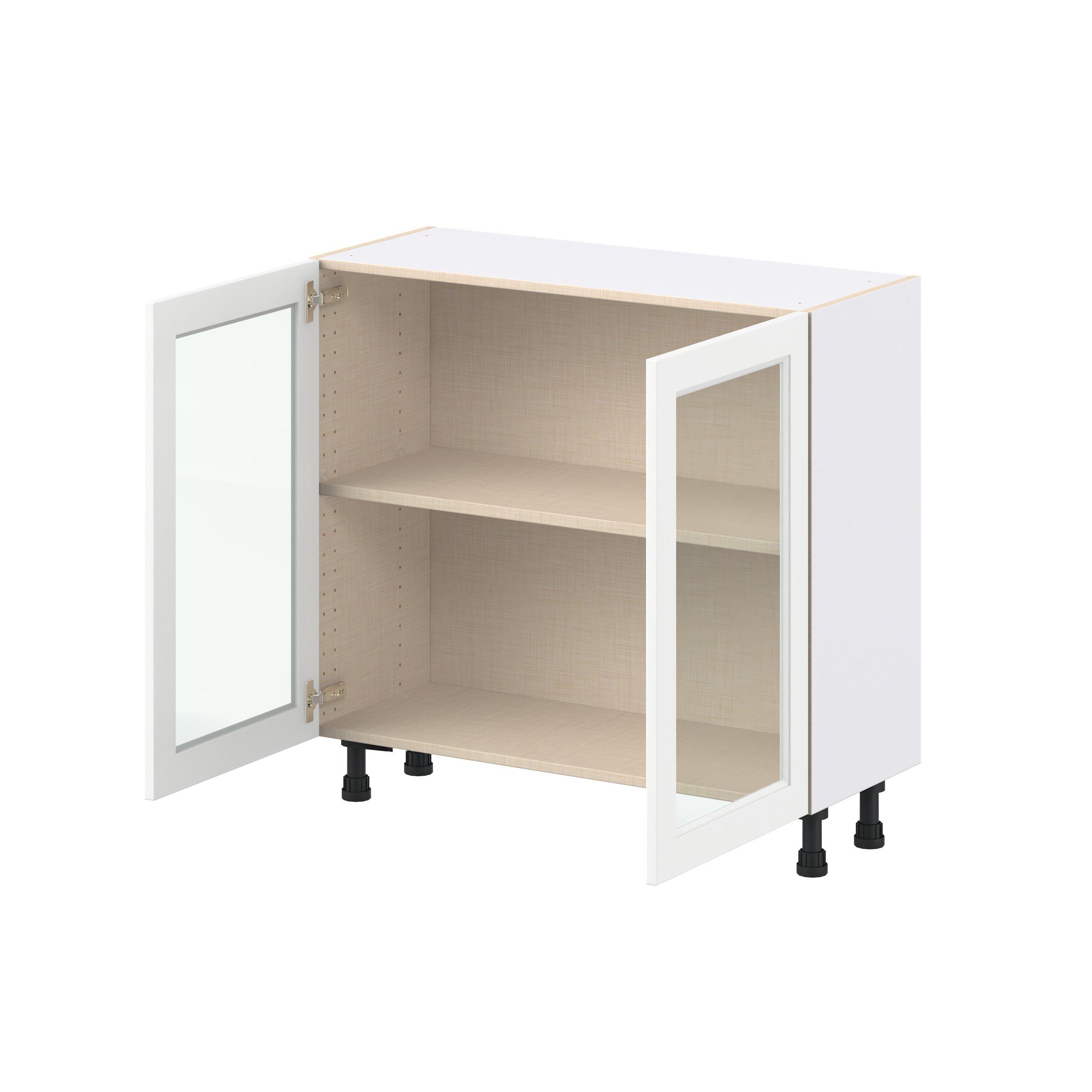 Make a statement with Peachtree premium painted shaker-inspired cabinets, offering both style and durability for years to come. Available in classic bright white and rich midnight blue, this collection is designed to fit seamlessly into both modern and transitional interiors. Crafted from one-piece MDF Studio Design Collection Peachtree 36 in. Painted Bright White Shallow Base Cabinet with Glass Door is designed to resist hairline cracks while the easy-to-clean finish stands up to stains and moisture. Featuring 5-piece doors and dovetail drawer joints, these cabinets offer durability and elegance. This collection combines style with everyday storage solutions.