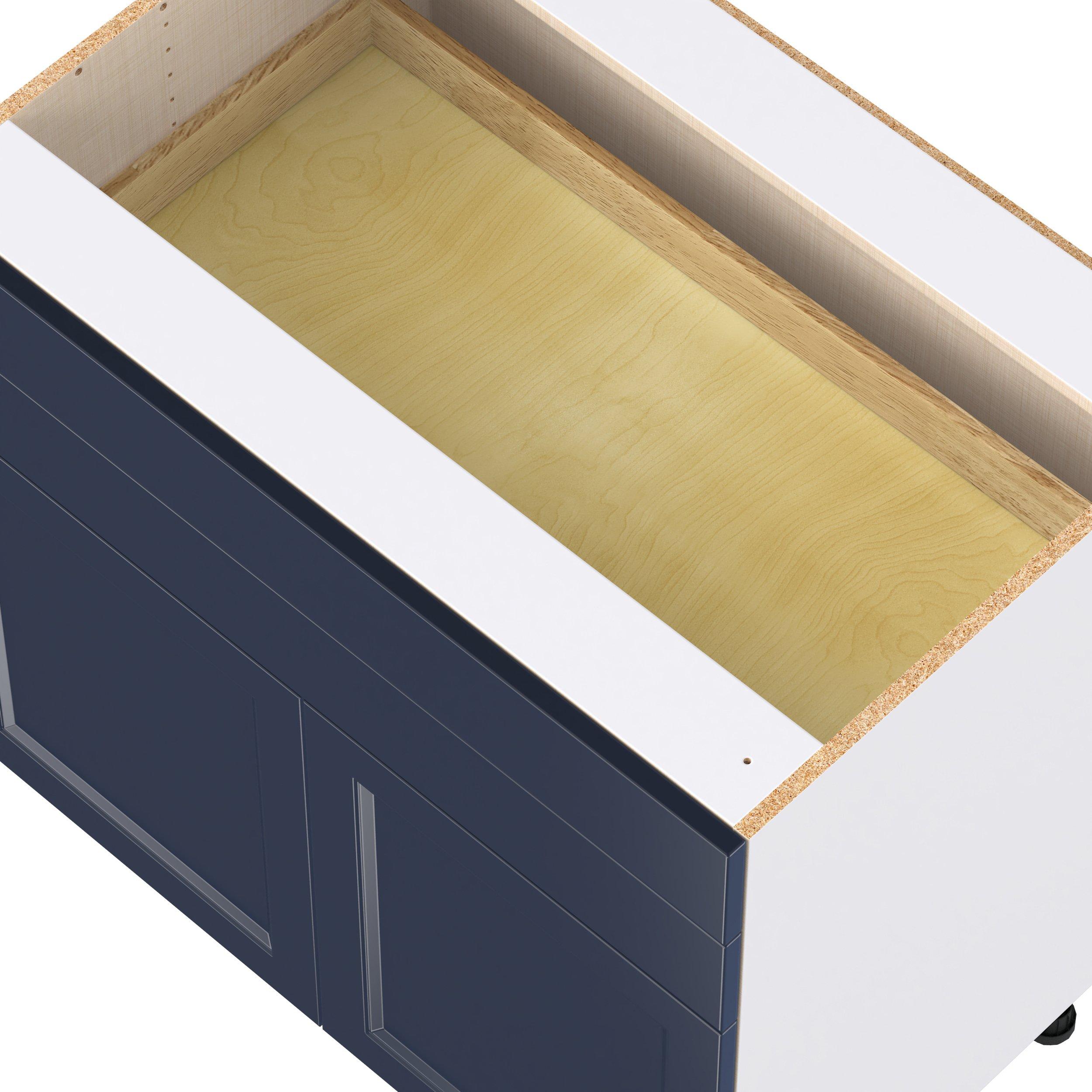 Make a statement with Peachtree premium painted shaker-inspired cabinets, offering both style and durability for years to come. Available in classic bright white and rich midnight blue, this collection is designed to fit seamlessly into both modern and transitional interiors. Crafted from one-piece MDF Studio Design Collection Peachtree 36 in. Painted Midnight Blue Cooktop Base Cabinet is designed to resist hairline cracks while the easy-to-clean finish stands up to stains and moisture. Featuring 5-piece doors and dovetail drawer joints, these cabinets offer durability and elegance. This collection combines style with everyday storage solutions.