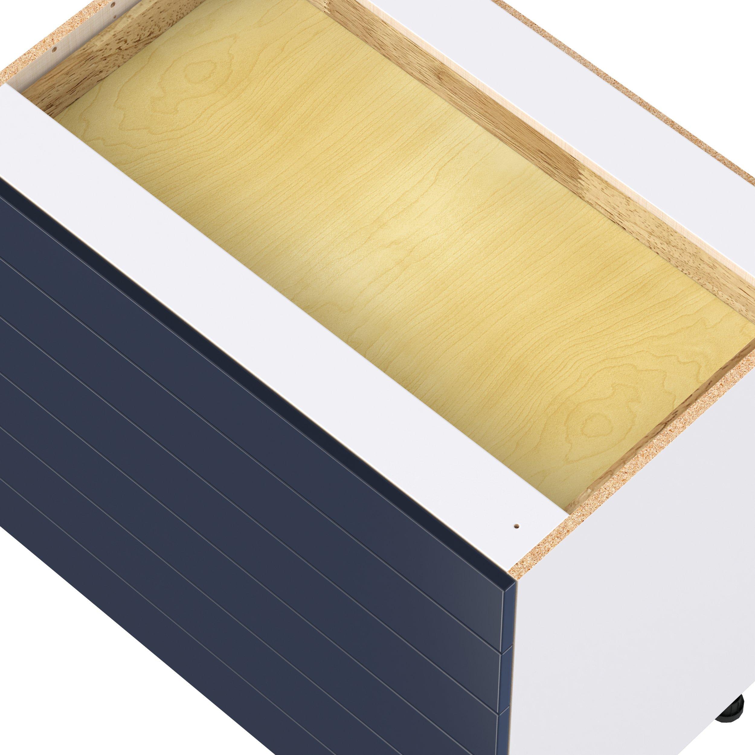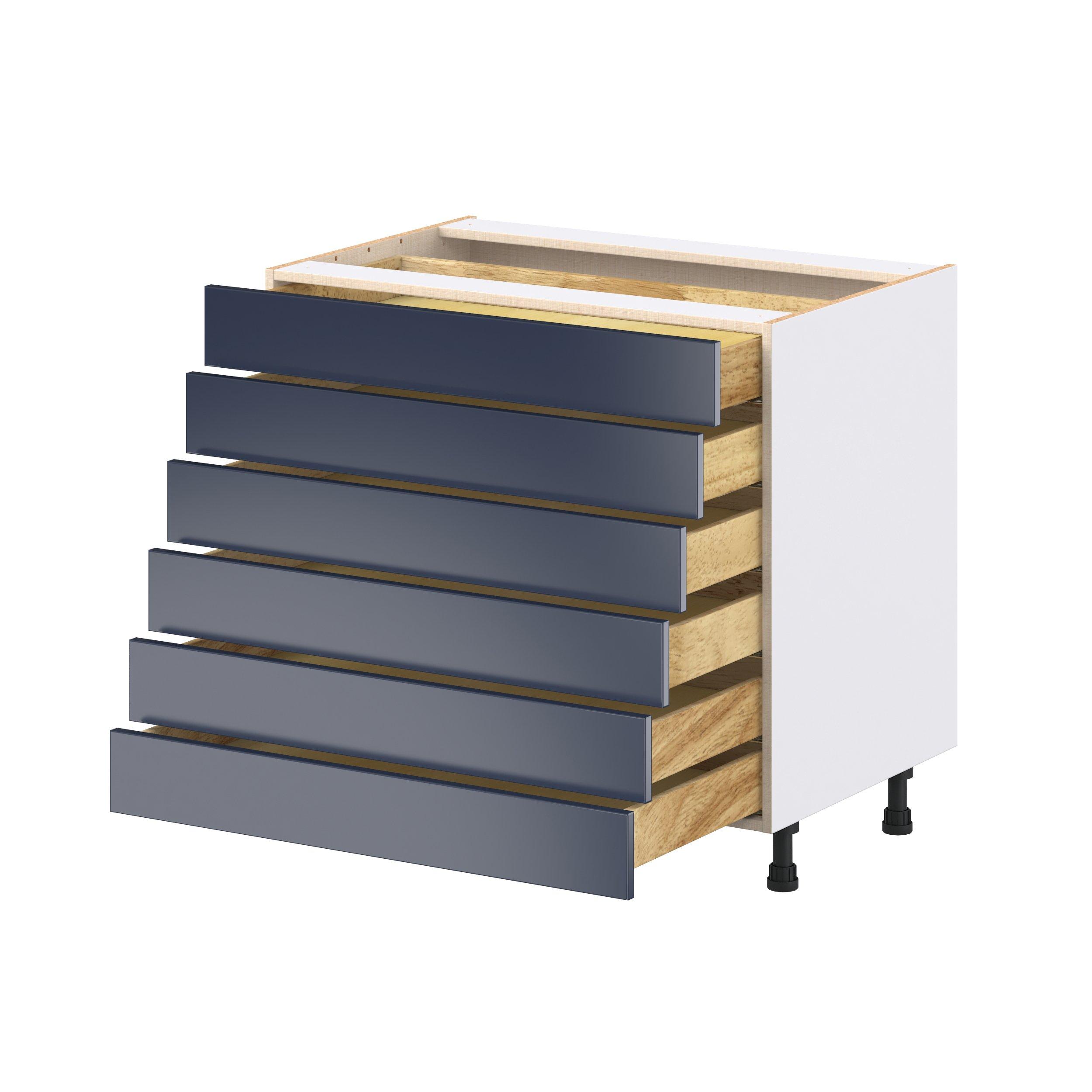 Make a statement with Peachtree premium painted shaker-inspired cabinets, offering both style and durability for years to come. Available in classic bright white and rich midnight blue, this collection is designed to fit seamlessly into both modern and transitional interiors. Crafted from one-piece MDF Studio Design Collection Peachtree 36 in. Painted Midnight Blue Drawer Base Cabinet is designed to resist hairline cracks while the easy-to-clean finish stands up to stains and moisture. Featuring 5-piece doors and dovetail drawer joints, these cabinets offer durability and elegance. This collection combines style with everyday storage solutions.