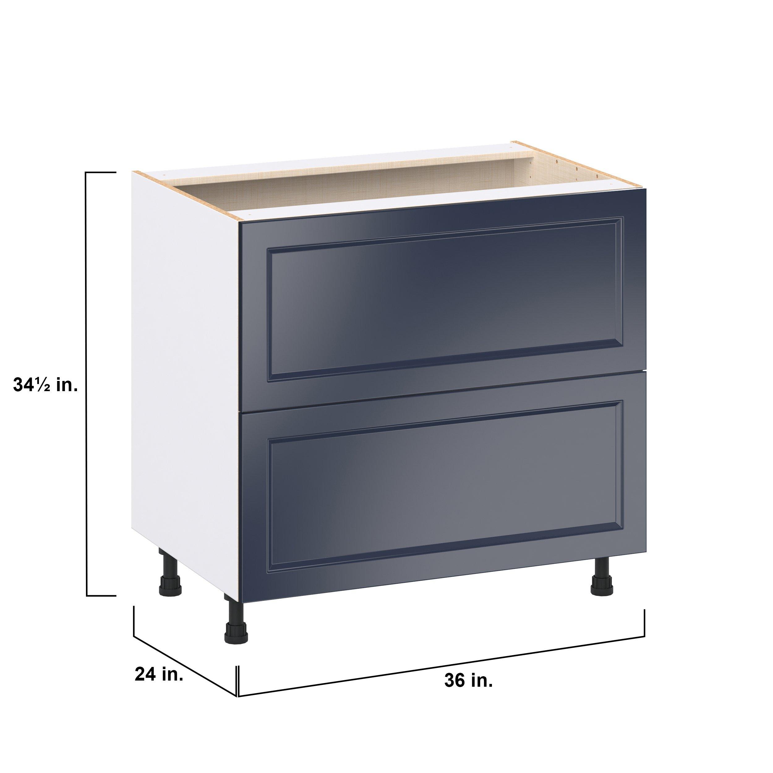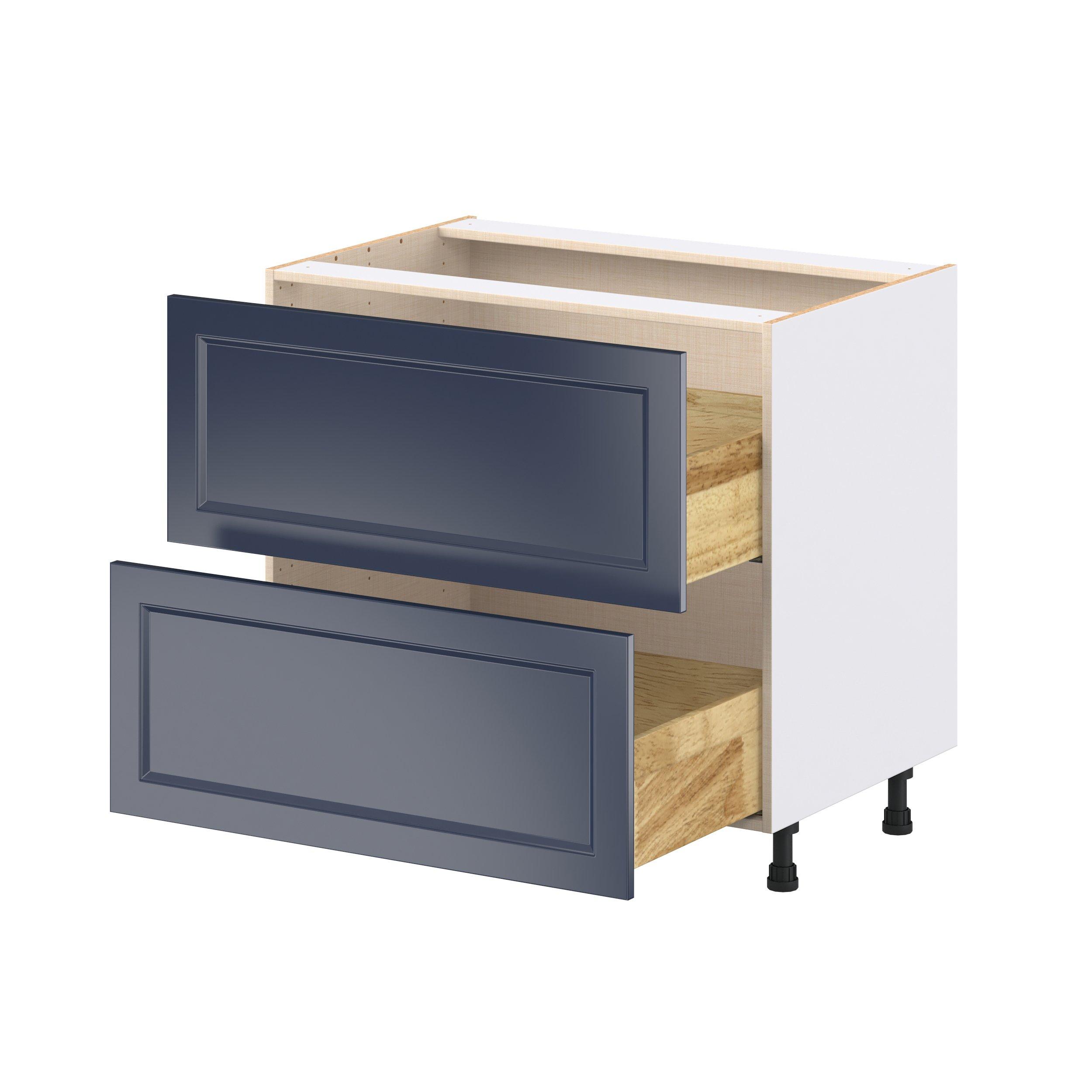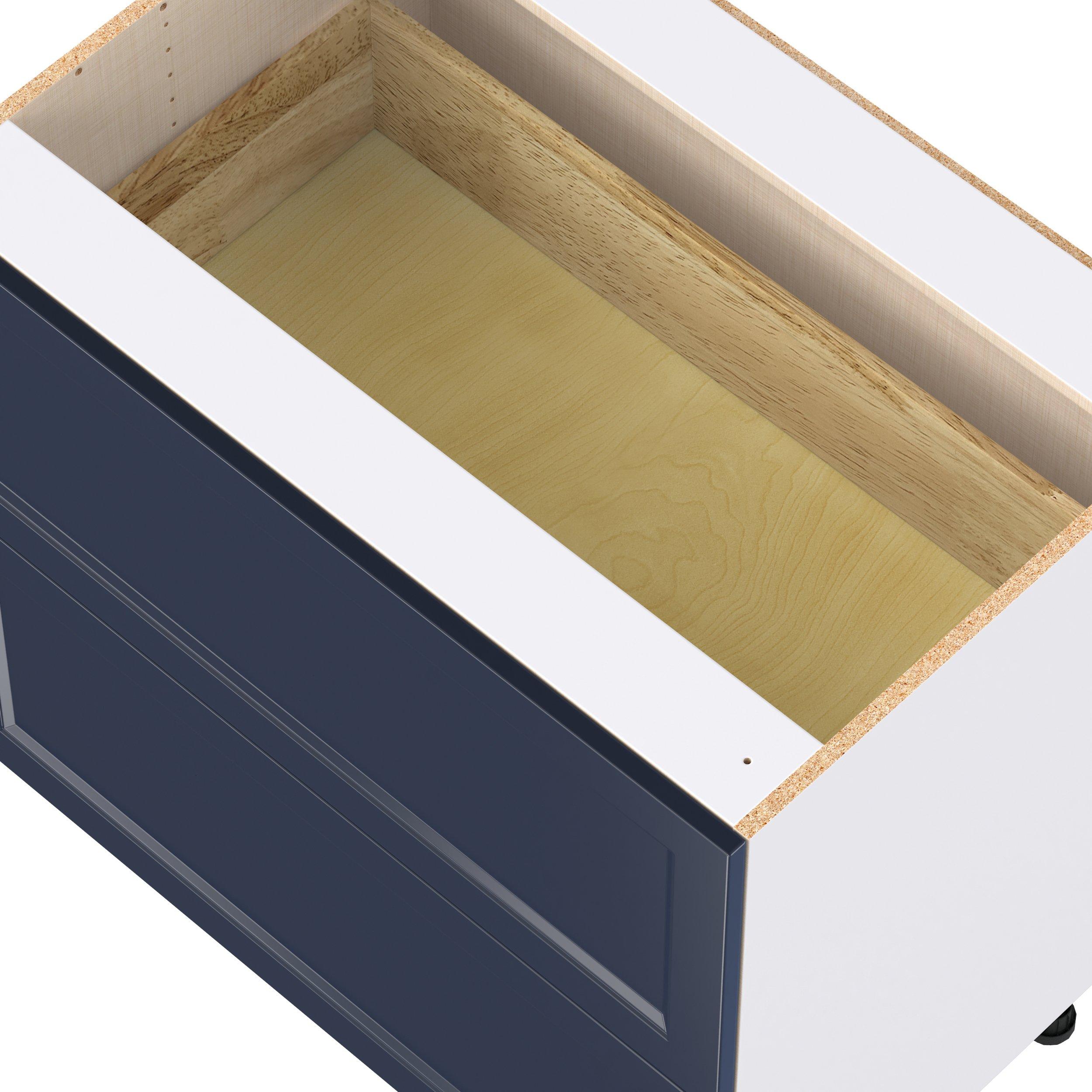 Make a statement with Peachtree premium painted shaker-inspired cabinets, offering both style and durability for years to come. Available in classic bright white and rich midnight blue, this collection is designed to fit seamlessly into both modern and transitional interiors. Crafted from one-piece MDF Studio Design Collection Peachtree 36 in. Painted Midnight Blue Drawer Base Cabinet is designed to resist hairline cracks while the easy-to-clean finish stands up to stains and moisture. Featuring 5-piece doors and dovetail drawer joints, these cabinets offer durability and elegance. This collection combines style with everyday storage solutions.