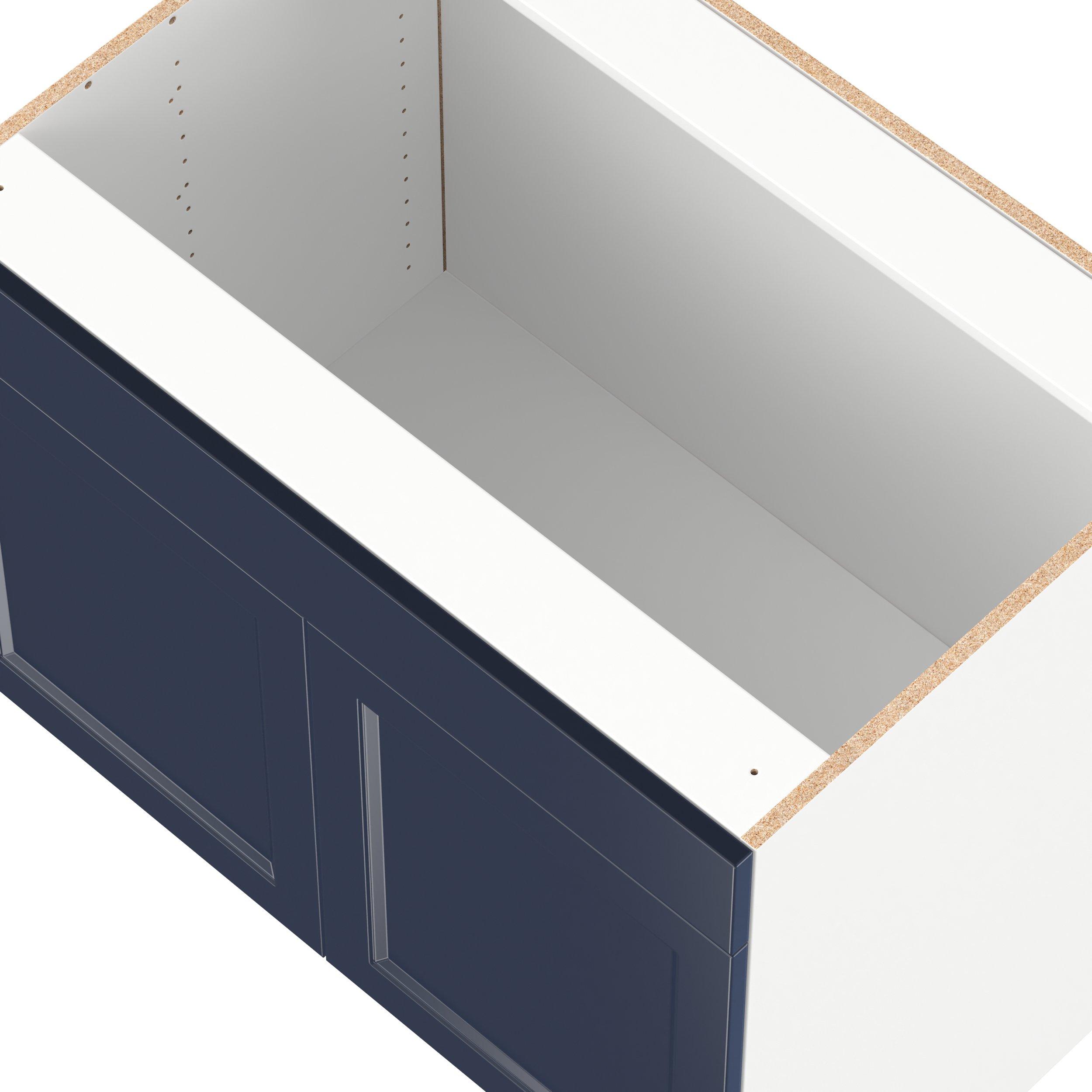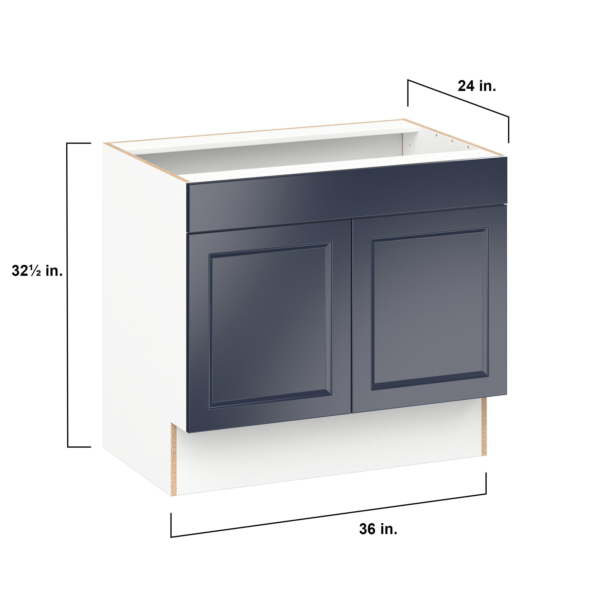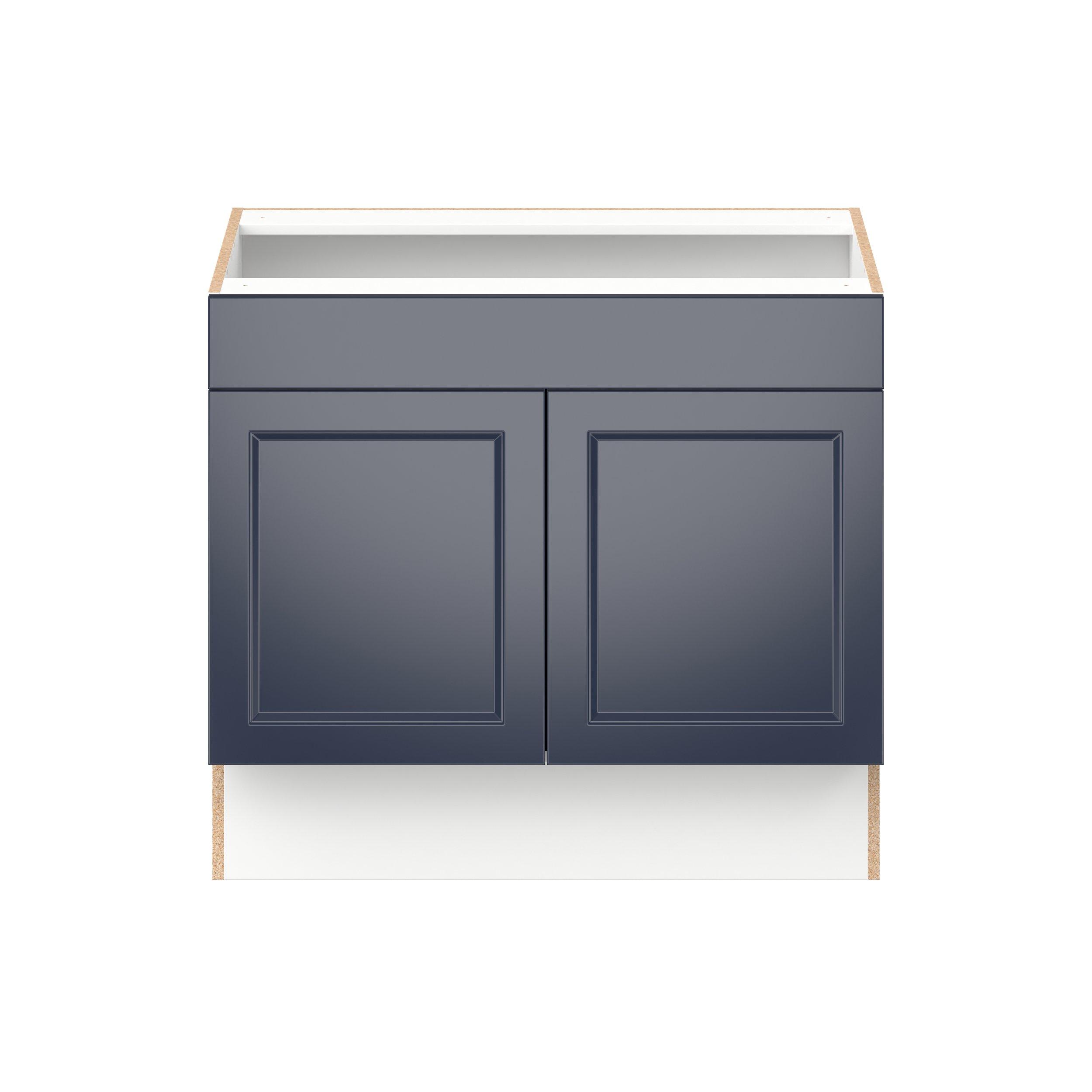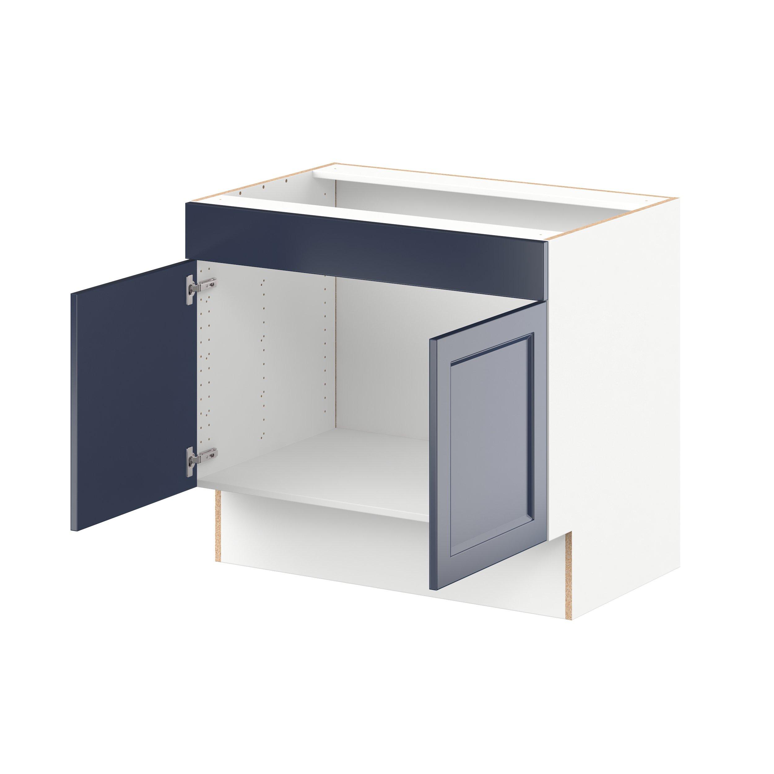 Make a statement with Peachtree premium painted shaker-inspired cabinets, offering both style and durability for years to come. Available in classic bright white and rich midnight blue, this collection is designed to fit seamlessly into both modern and transitional interiors. Crafted from one-piece MDF Studio Design Collection Peachtree 36 in. Painted Midnight Blue Sink Base Cabinet with False Front is designed to resist hairline cracks while the easy-to-clean finish stands up to stains and moisture. Featuring 5-piece doors and dovetail drawer joints, these cabinets offer durability and elegance. This collection combines style with everyday storage solutions.