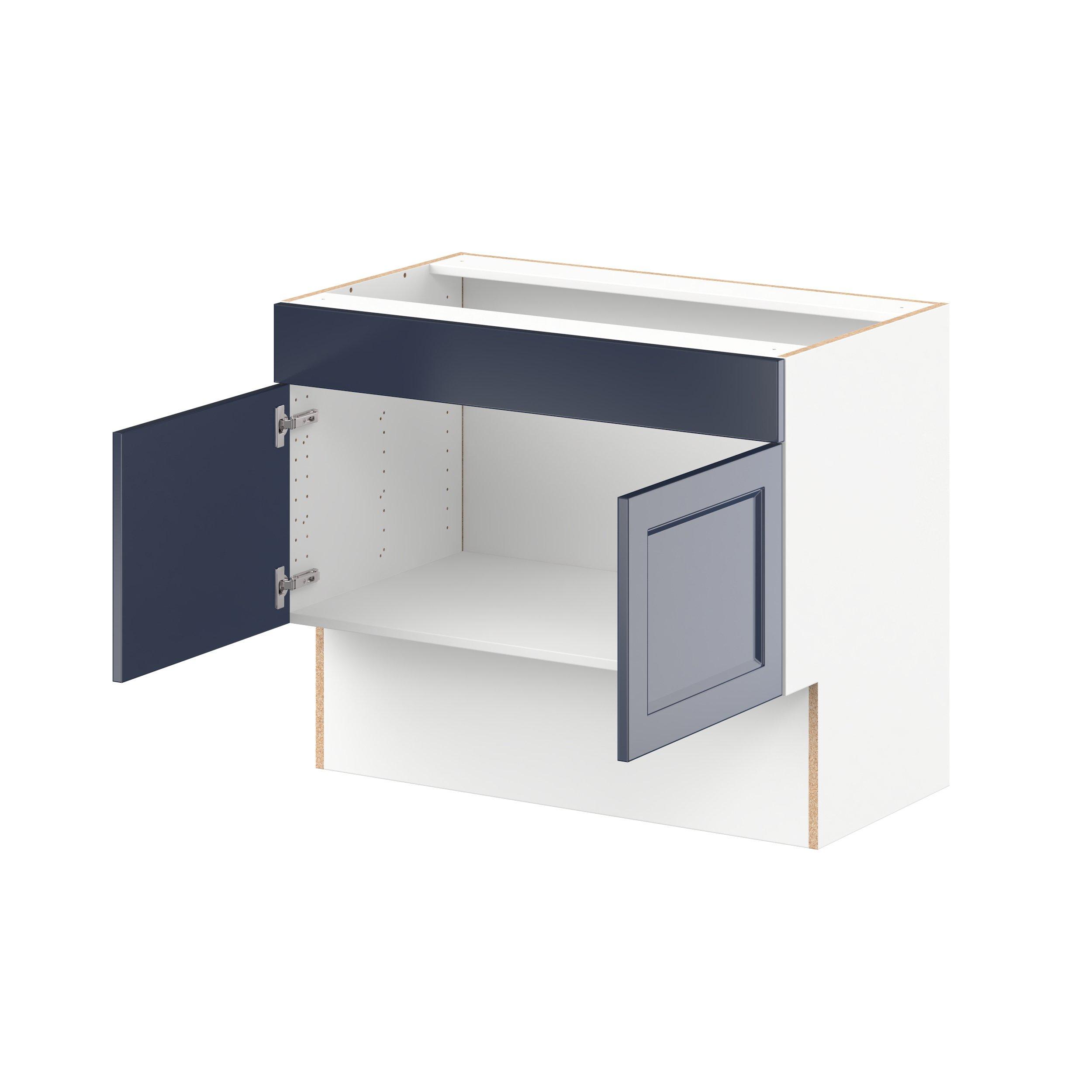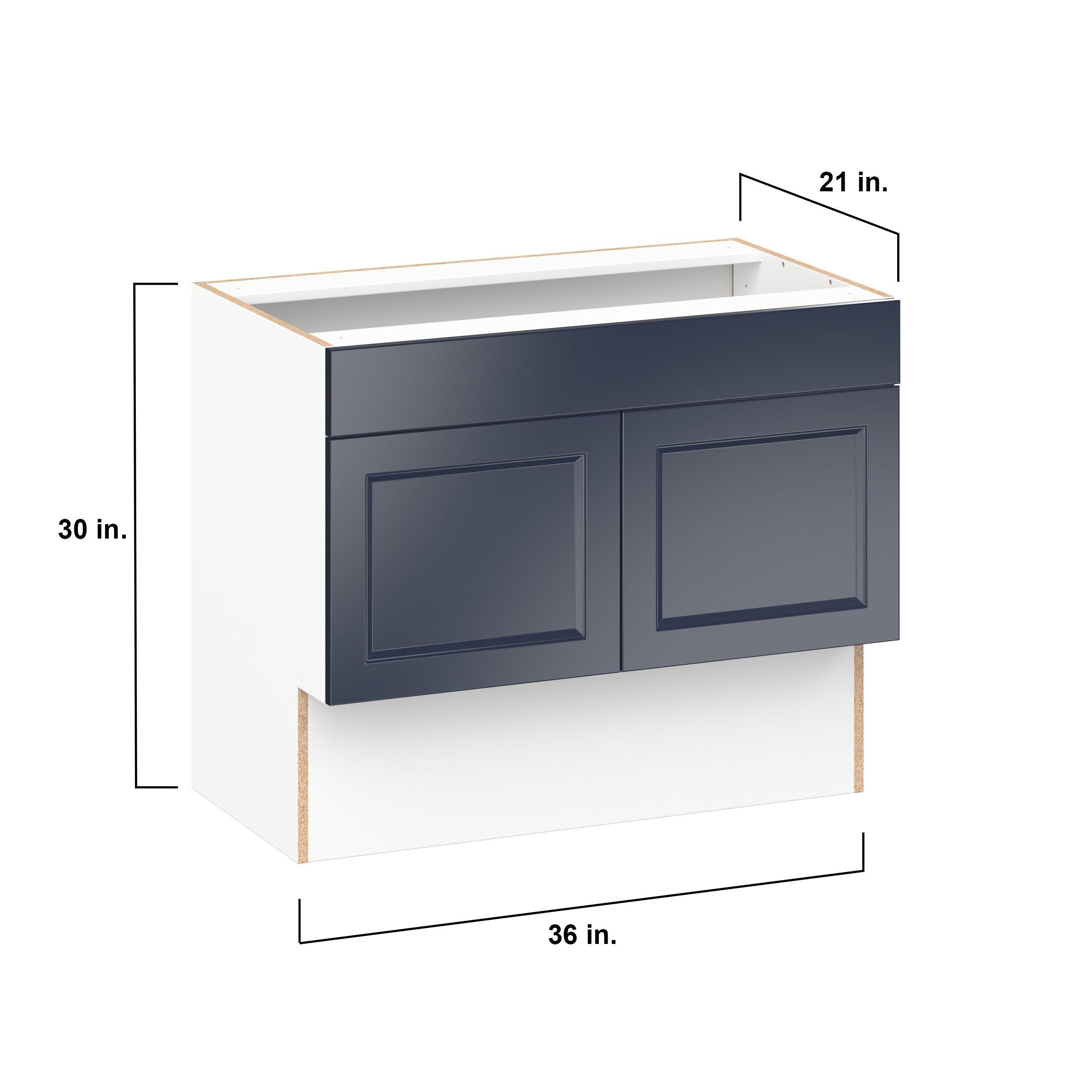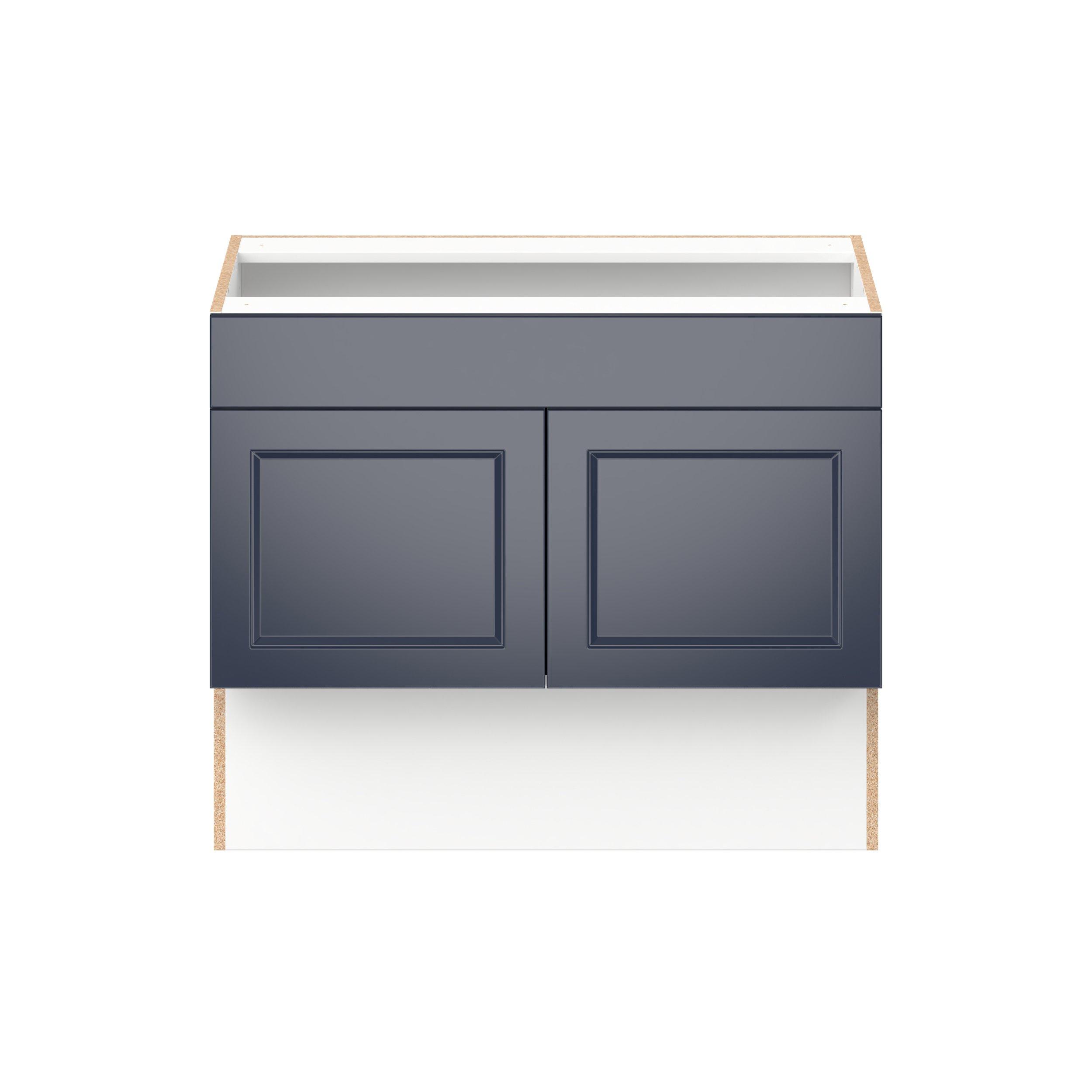 Make a statement with Peachtree premium painted shaker-inspired cabinets, offering both style and durability for years to come. Available in classic bright white and rich midnight blue, this collection is designed to fit seamlessly into both modern and transitional interiors. Crafted from one-piece MDF Studio Design Collection Peachtree 36 in. Painted Midnight Blue Vanity Sink Base Cabinet with Removable Front is designed to resist hairline cracks while the easy-to-clean finish stands up to stains and moisture. Featuring 5-piece doors and dovetail drawer joints, these cabinets offer durability and elegance. This collection combines style with everyday storage solutions.