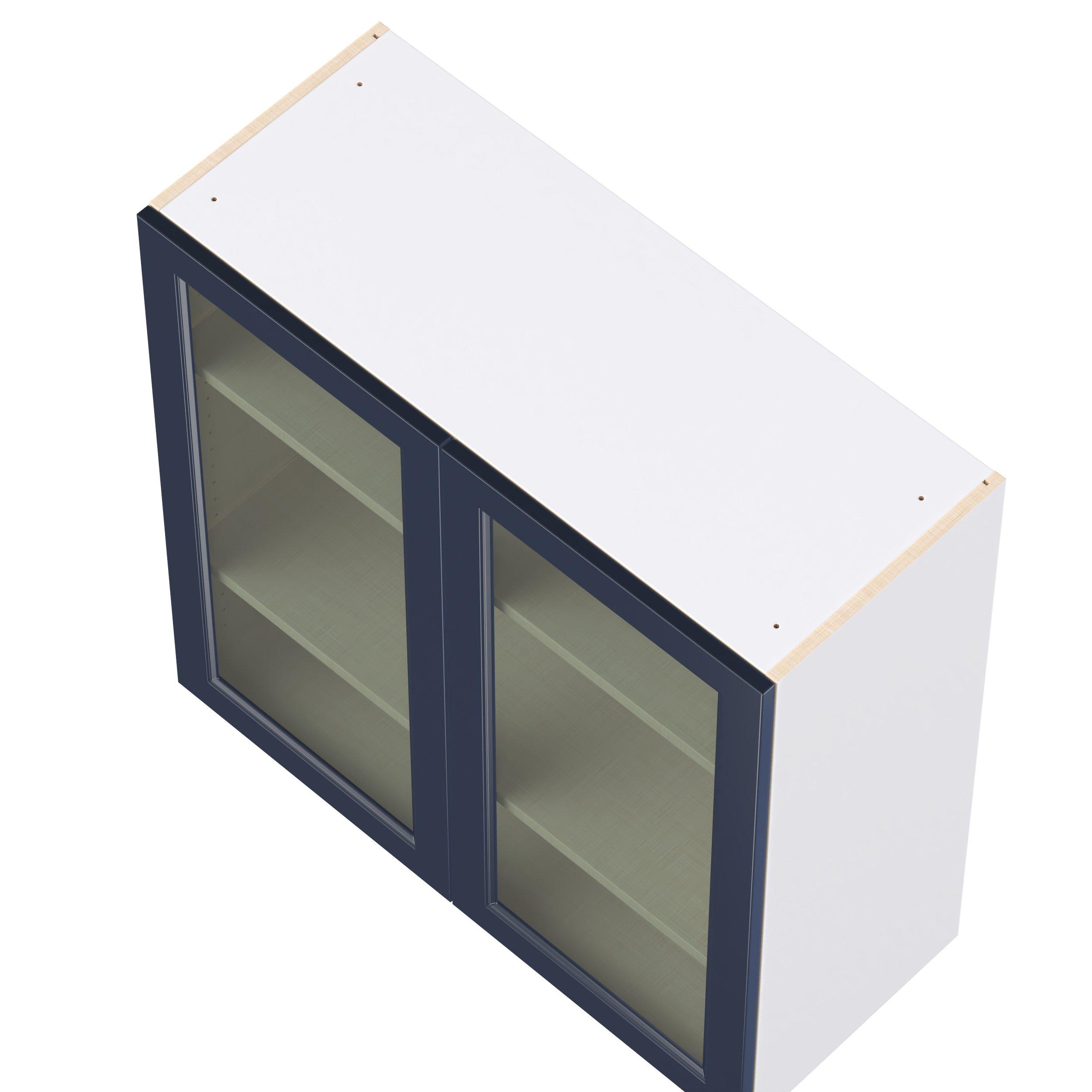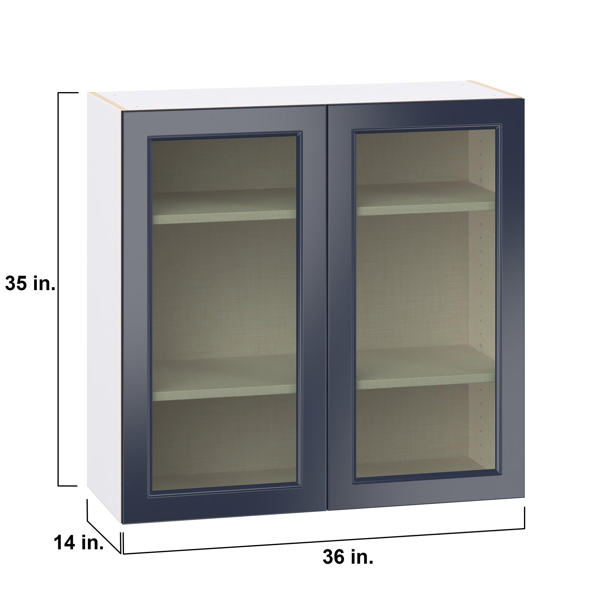 Double DoorMake a statement with Peachtree premium painted shaker-inspired cabinets, offering both style and durability for years to come. Available in classic bright white and rich midnight blue, this collection is designed to fit seamlessly into both modern and transitional interiors. Crafted from one-piece MDF Studio Design Collection Peachtree 36 in. Painted Midnight Blue Wall Cabinet with Glass Door is designed to resist hairline cracks while the easy-to-clean finish stands up to stains and moisture. Featuring 5-piece doors and dovetail drawer joints, these cabinets offer durability and elegance. This collection combines style with everyday storage solutions.