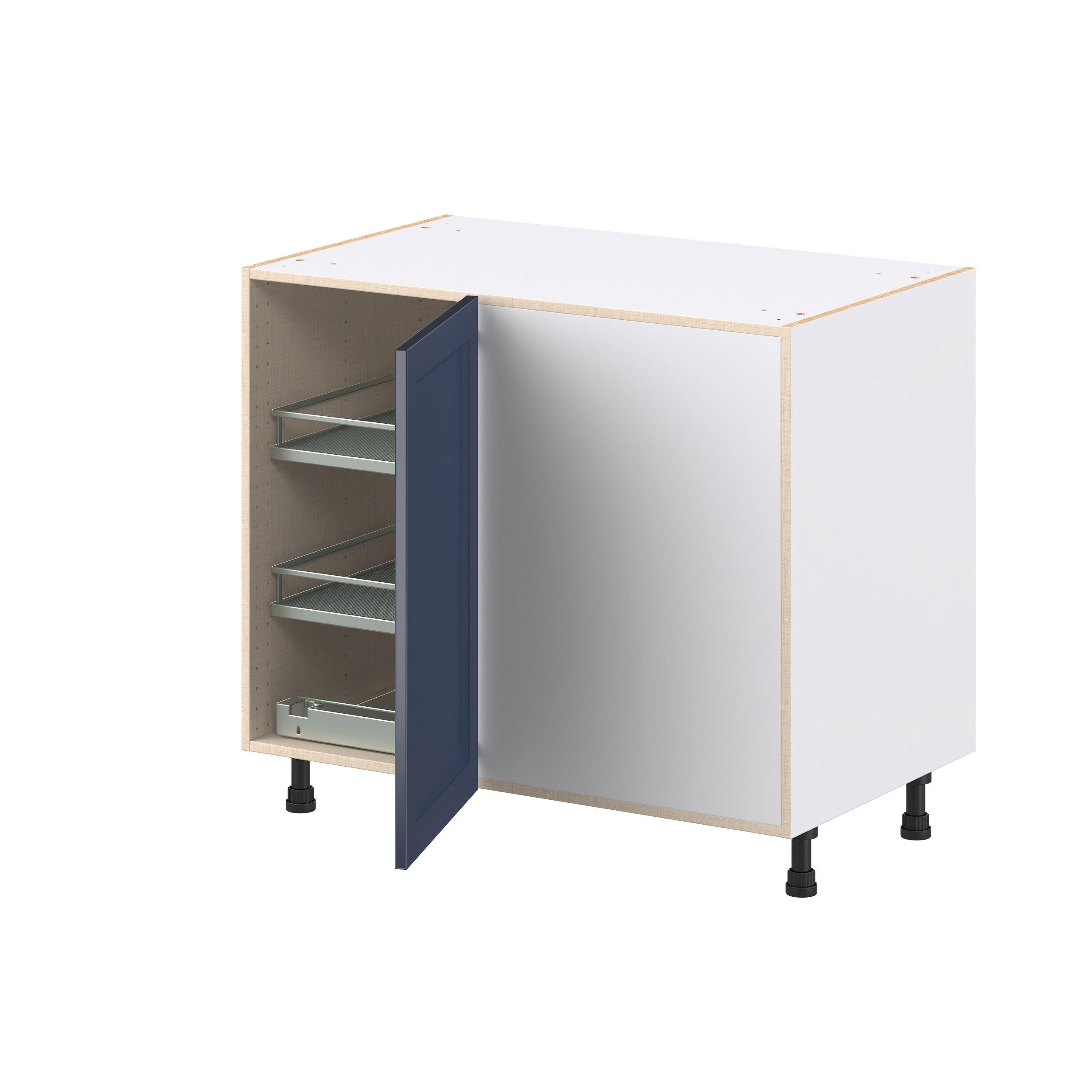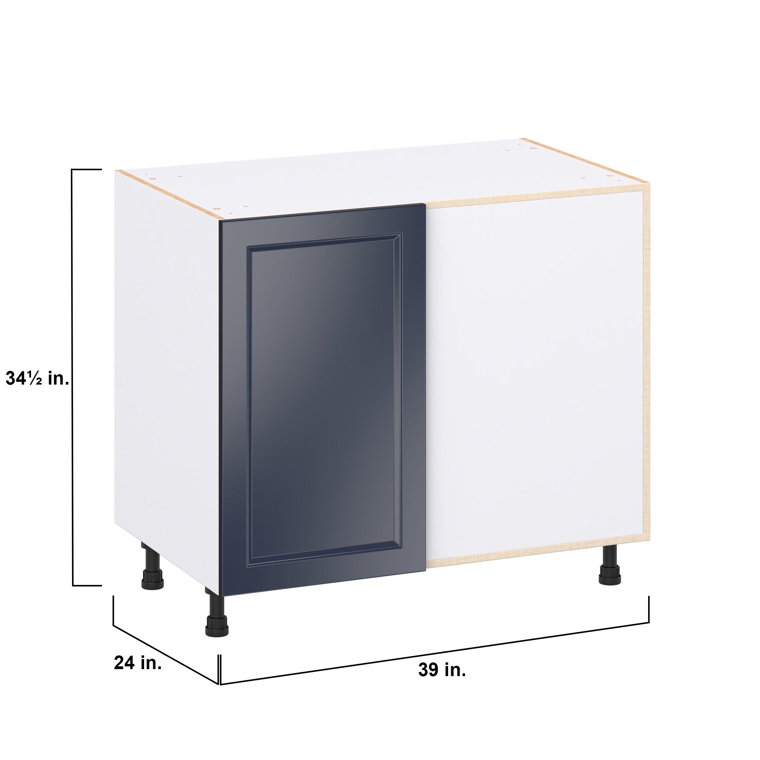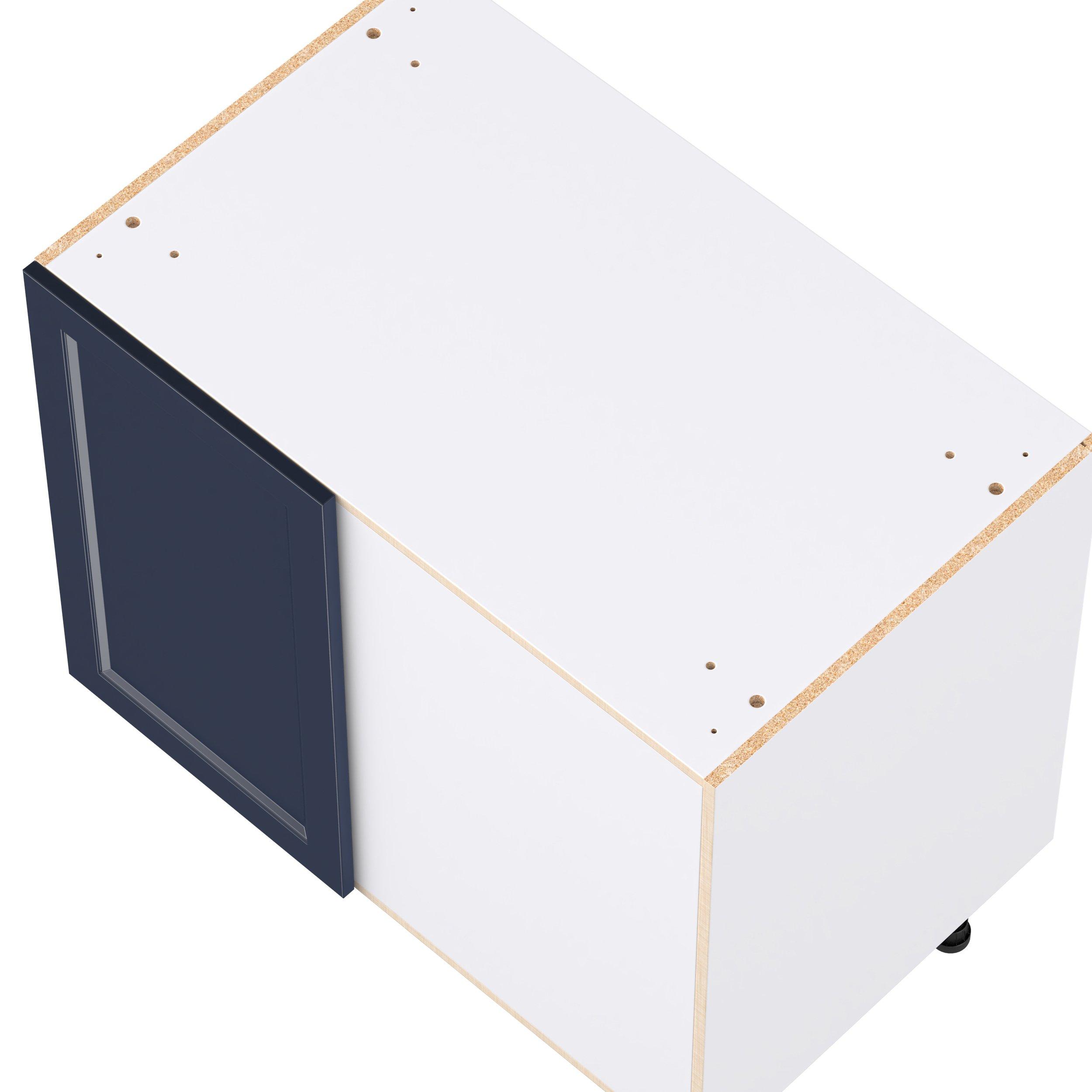 Make a statement with Peachtree premium painted shaker-inspired cabinets, offering both style and durability for years to come. Available in classic bright white and rich midnight blue, this collection is designed to fit seamlessly into both modern and transitional interiors. Crafted from one-piece MDF Studio Design Collection Peachtree 39 in. Painted Midnight Blue Swing Out Blind Corner Base Cabinet is designed to resist hairline cracks while the easy-to-clean finish stands up to stains and moisture. Featuring 5-piece doors and dovetail drawer joints, these cabinets offer durability and elegance. This collection combines style with everyday storage solutions.