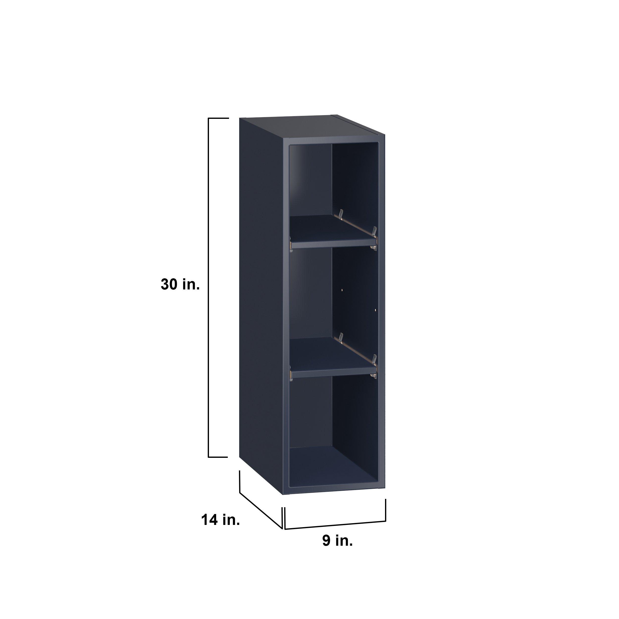 Make a statement with Peachtree premium painted shaker-inspired cabinets, offering both style and durability for years to come. Available in classic bright white and rich midnight blue, this collection is designed to fit seamlessly into both modern and transitional interiors. Crafted from one-piece MDF Studio Design Collection Peachtree 9 in. Painted Midnight Blue Open Shelf Wall Cabinet is designed to resist hairline cracks while the easy-to-clean finish stands up to stains and moisture. Featuring 5-piece doors and dovetail drawer joints, these cabinets offer durability and elegance. This collection combines style with everyday storage solutions.
