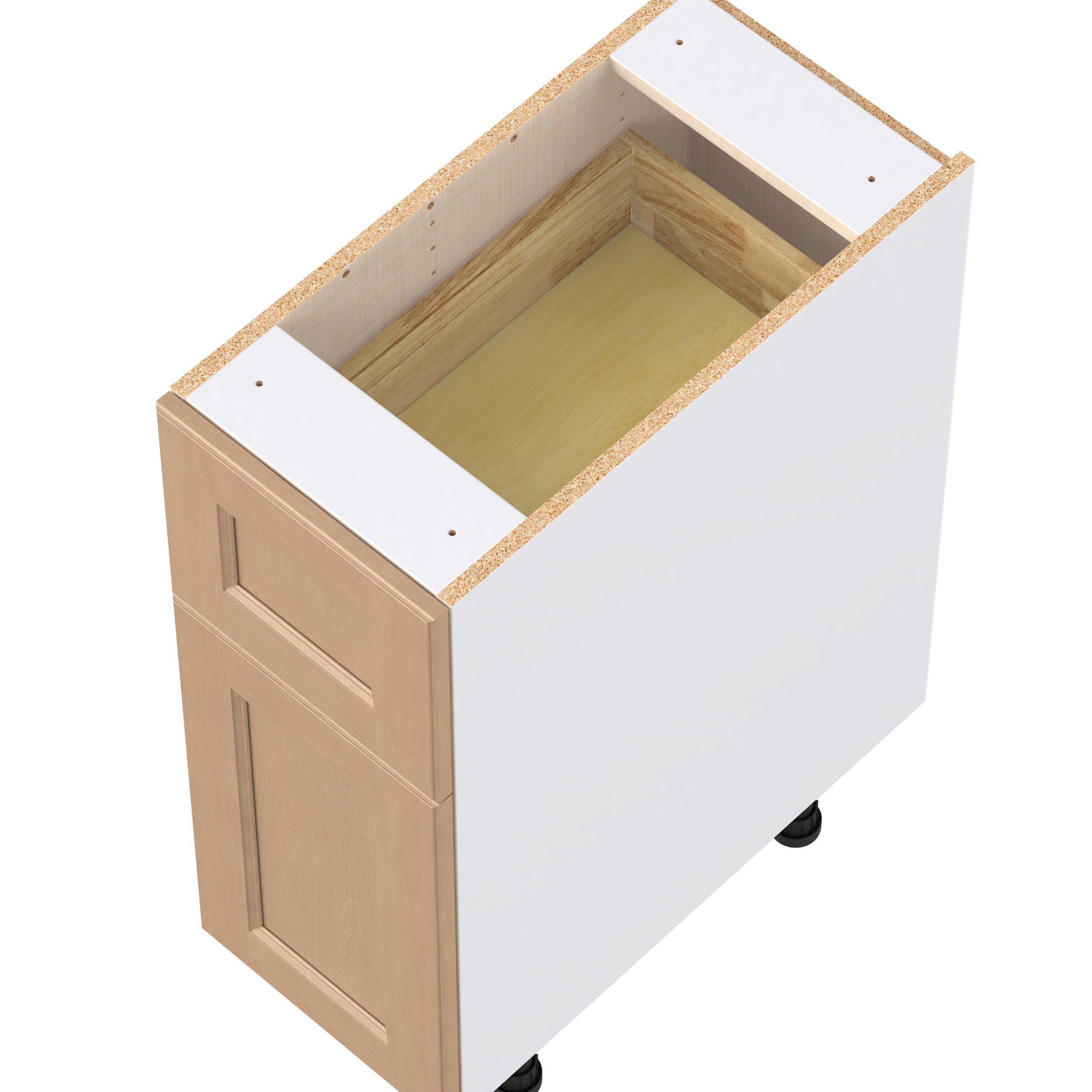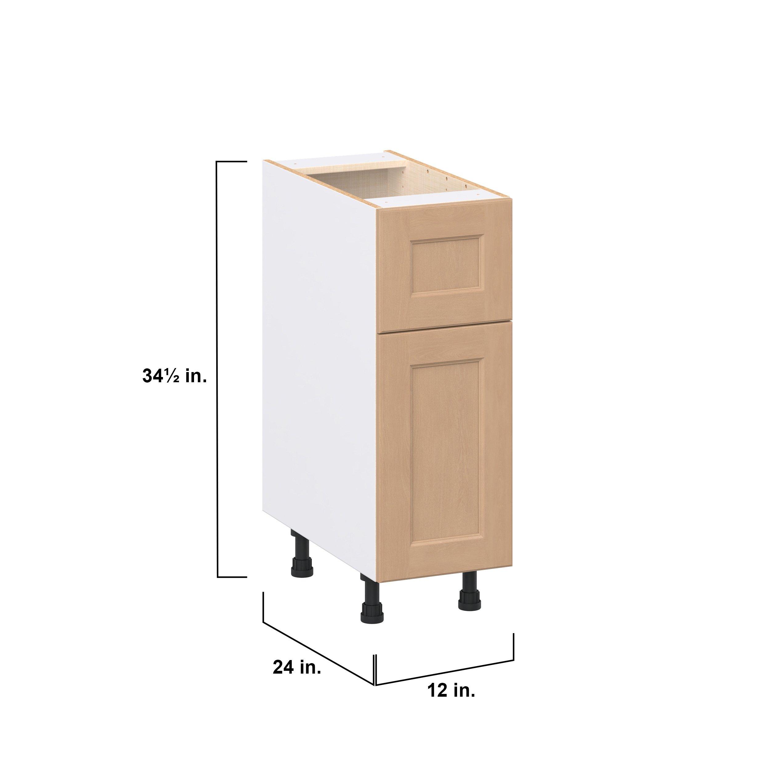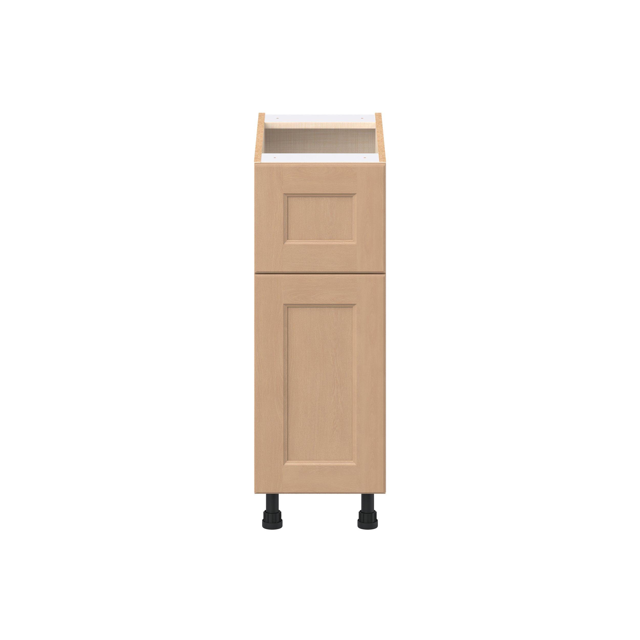Experience the striking beauty of Sugarhill wide-rail shaker-inspired cabinets. Available in a warm and light sugar cookie finish, this collection will add warmth and lasting elegance to any space. Crafted from one-piece MDF Studio Design Collection Sugarhill 12 in. Stained Sugar Cookie Door and Drawer Base Cabinet is designed to resist hairline cracks while the easy-to-clean finish stands up to stains and moisture. Featuring 5-piece doors and dovetail drawer joints, these cabinets offer durability and elegance. This collection combines style with everyday storage solutions.