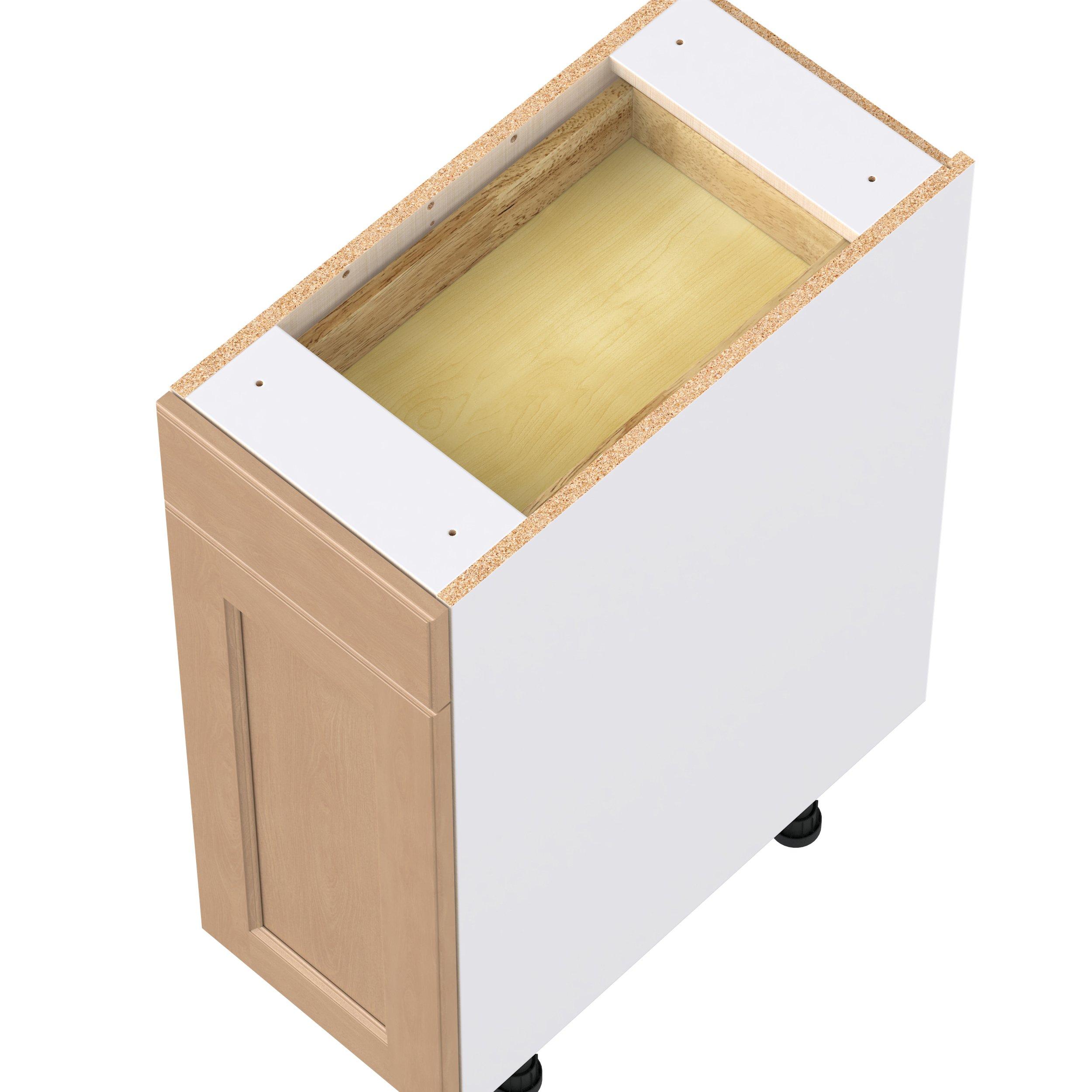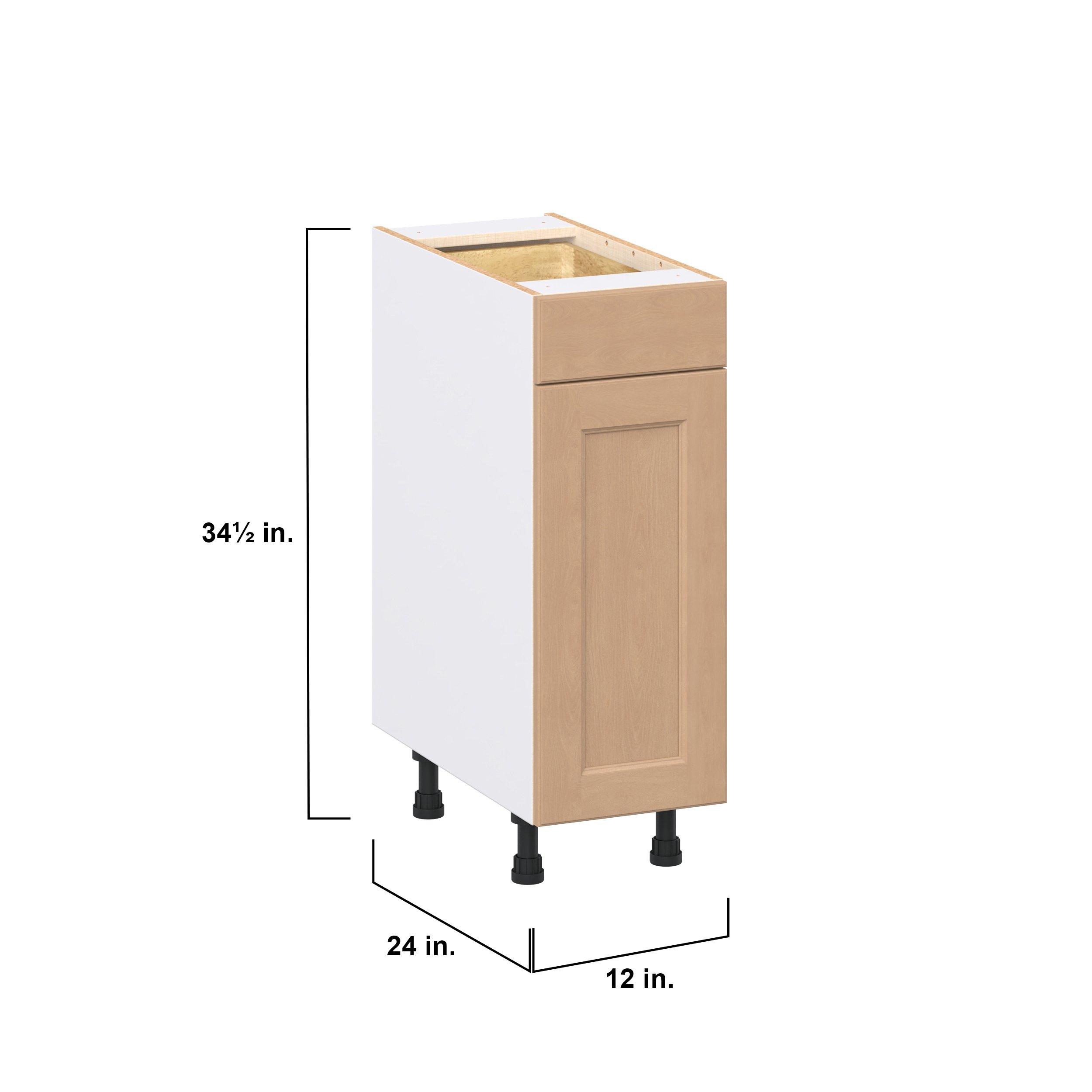 Experience the striking beauty of Sugarhill wide-rail shaker-inspired cabinets. Available in a warm and light sugar cookie finish, this collection will add warmth and lasting elegance to any space. Crafted from one-piece MDF Studio Design Collection Sugarhill 12 in. Stained Sugar Cookie Door and Drawer Base Cabinet is designed to resist hairline cracks while the easy-to-clean finish stands up to stains and moisture. Featuring 5-piece doors and dovetail drawer joints, these cabinets offer durability and elegance. This collection combines style with everyday storage solutions.